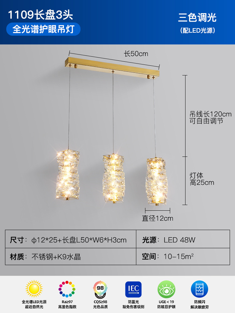 새로운 스타일 라이트 럭셔리 다이닝 룸 램프 북유럽 현대 미니멀리스트 크리스탈 다이닝 룸 3 헤드 샹들리에 인터넷 연예인 크리에이티브 디자인 아트 램프스토어 가기