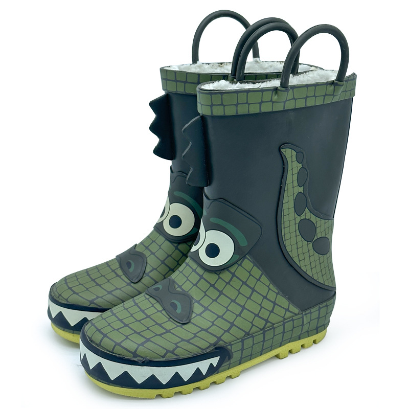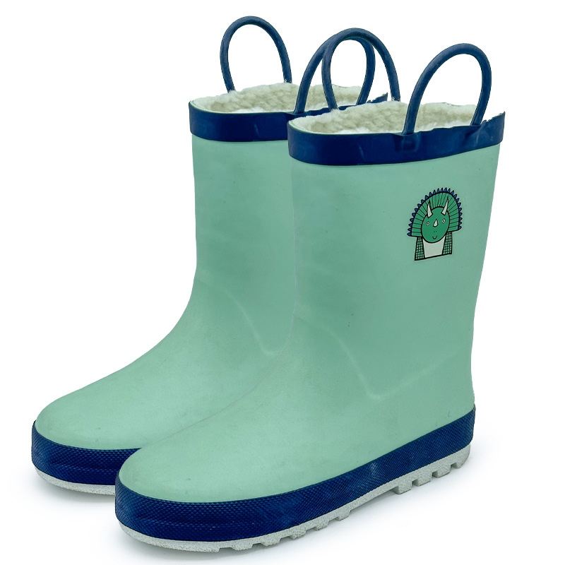 만화 공룡 어린이 비 부츠 맞춤 소년 및 소녀 중간 튜브 물 신발 아기 장화 방수 미끄럼 방지 고무 신발