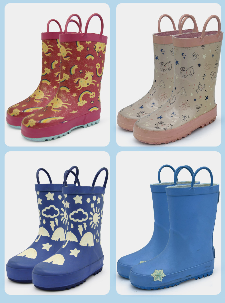 만화 공룡 어린이 비 부츠 맞춤 소년 및 소녀 중간 튜브 물 신발 아기 장화 방수 미끄럼 방지 고무 신발스토어 가기