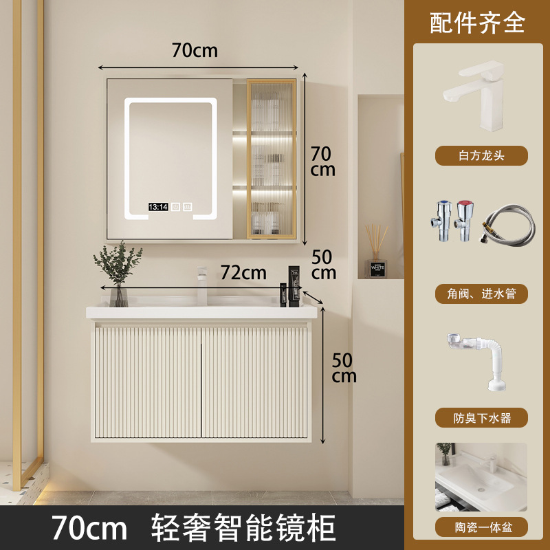 • 70cm 라이트 럭셔리 그레이 직각 벽 캐비닛 + 스마트 유리 거울 캐비닛 [무료 액세서리 풀 세트 + 설치]