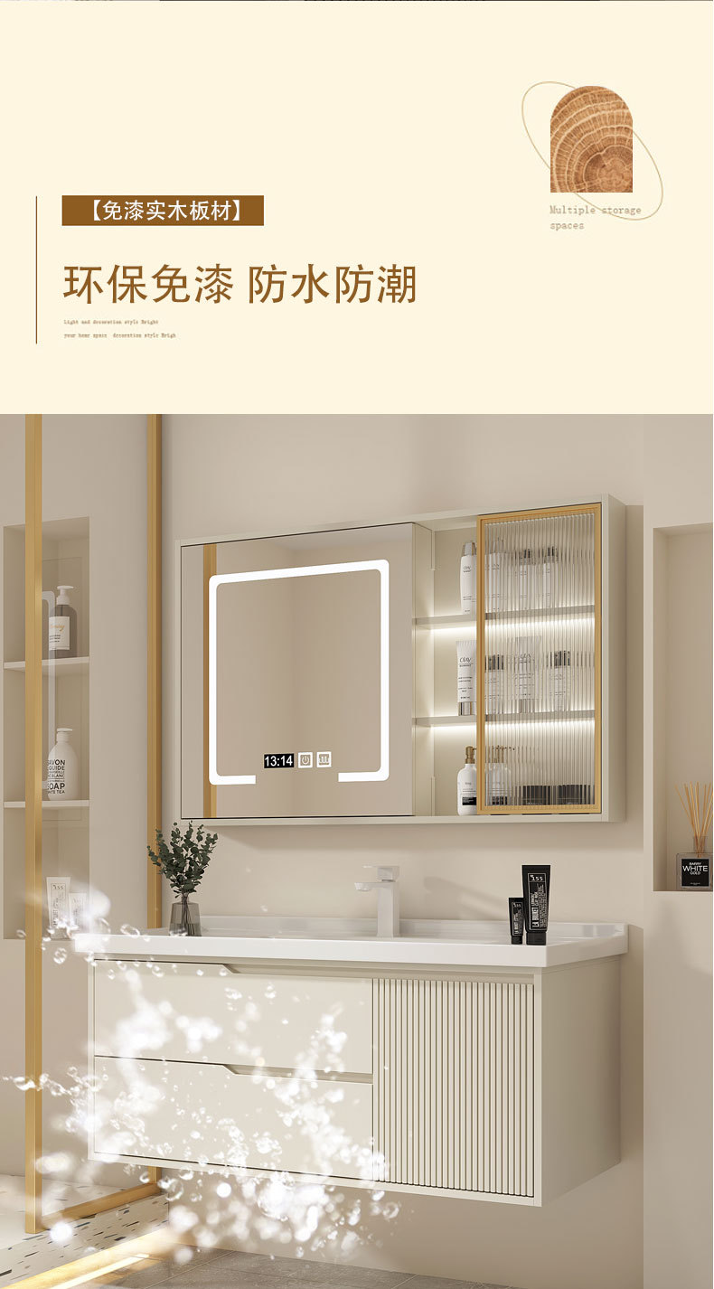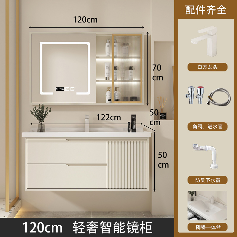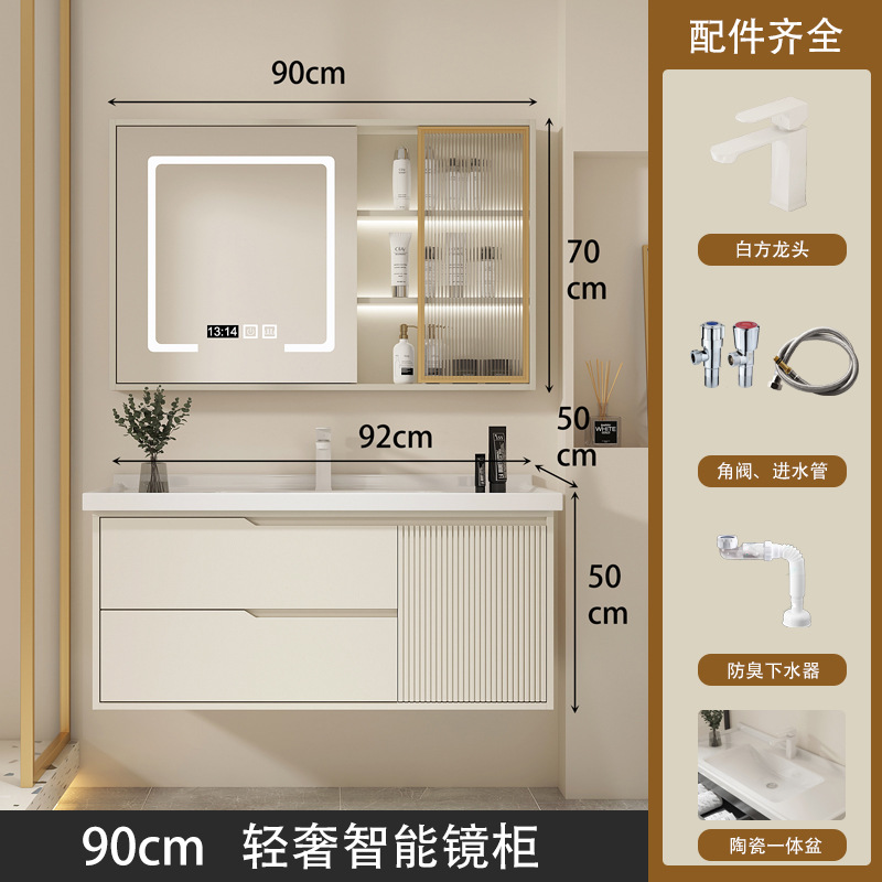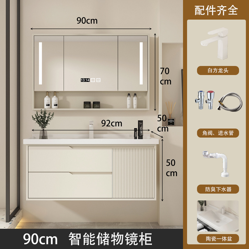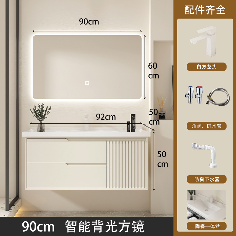 MUSH Mu Shang 욕실 크림 욕실 캐비닛 마스터 침실 화장실 세라믹 통합 워시 분지 캐비닛 조합