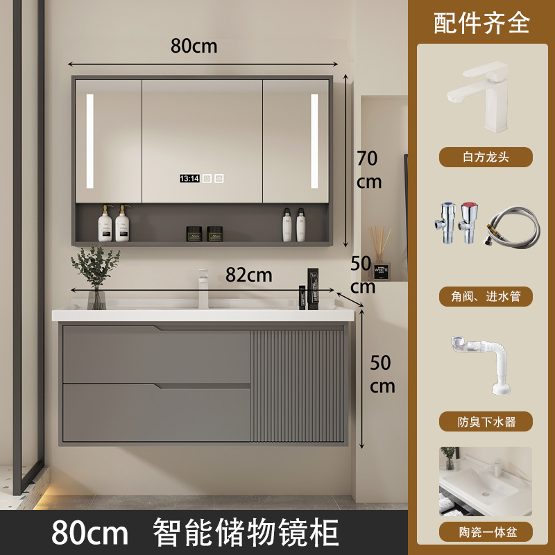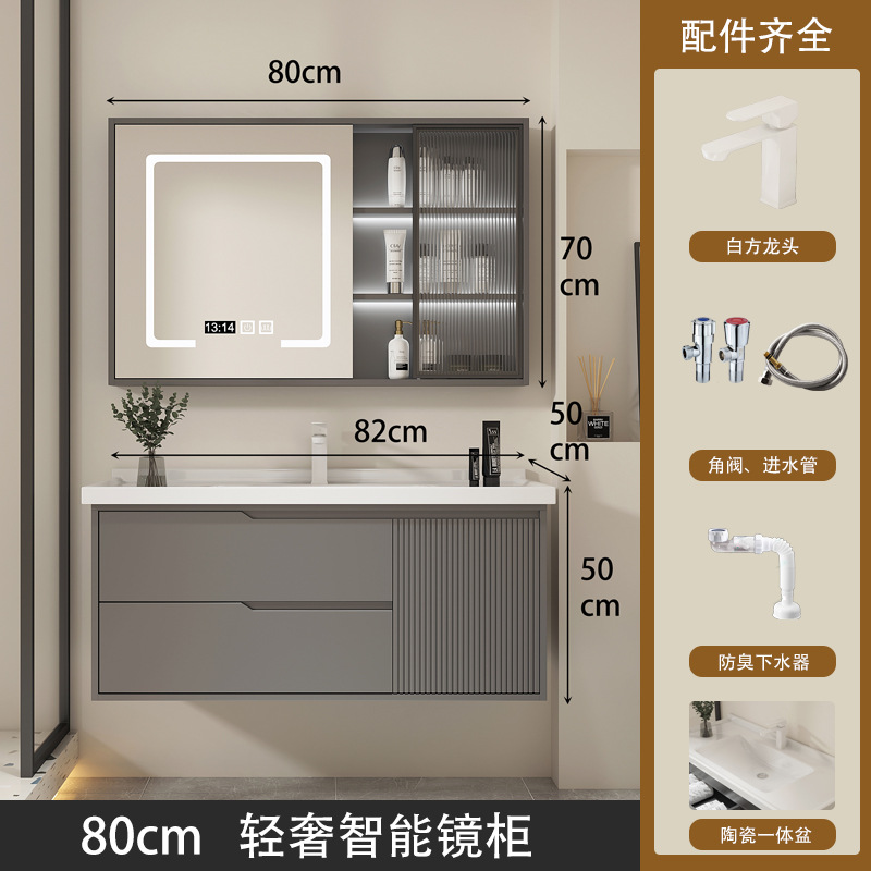 • 80cm 라이트 럭셔리 그레이 직각 벽 캐비닛 + 스마트 유리 거울 캐비닛 [무료 액세서리 풀 세트 + 설치]