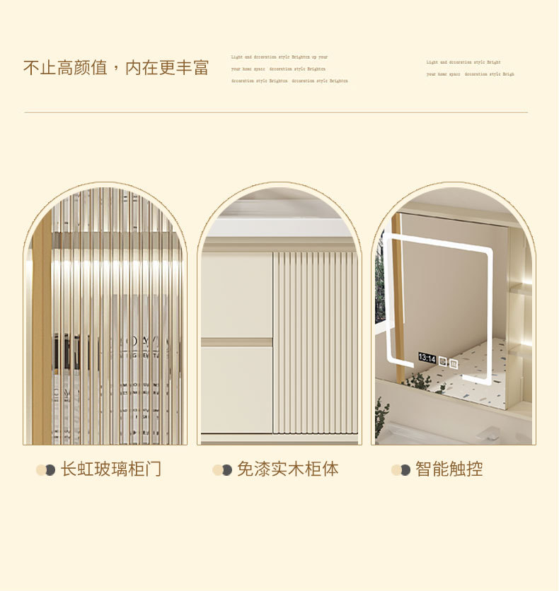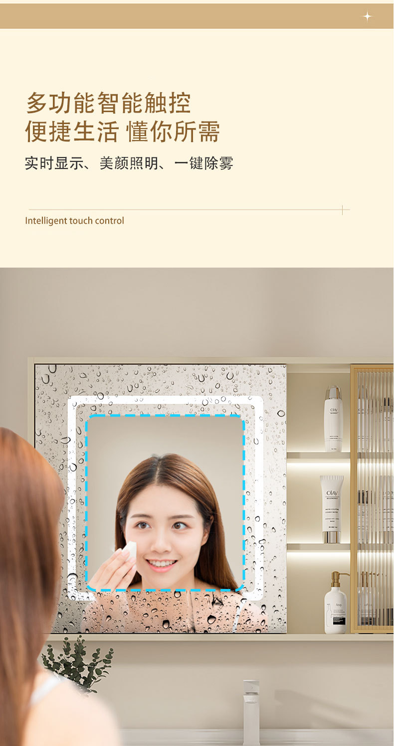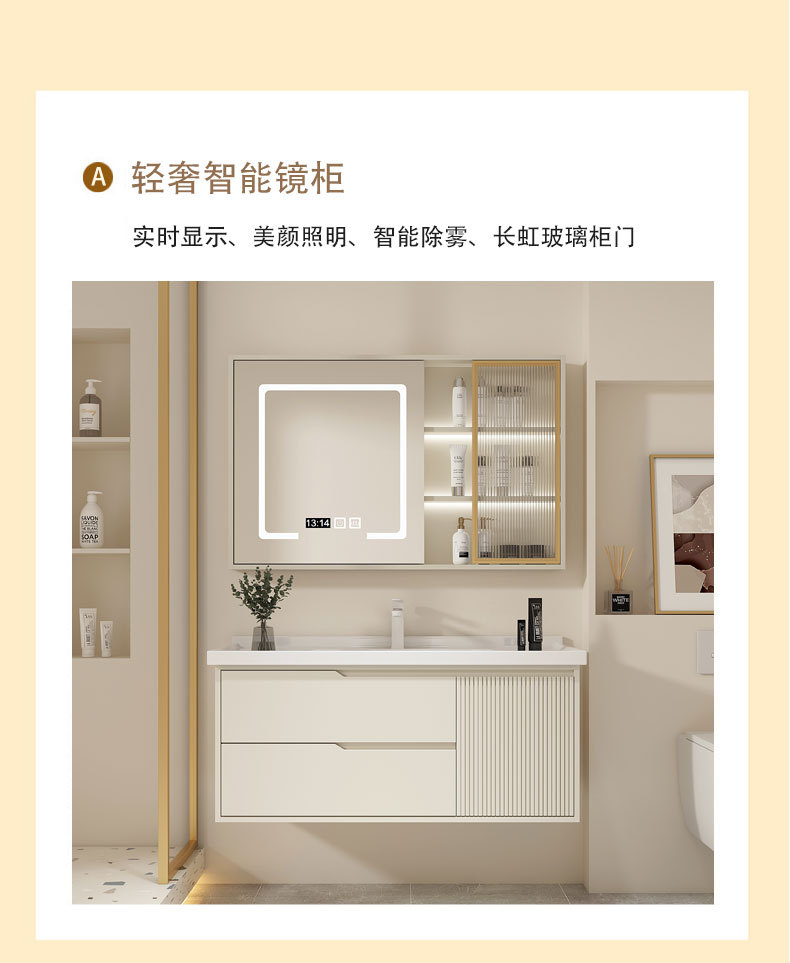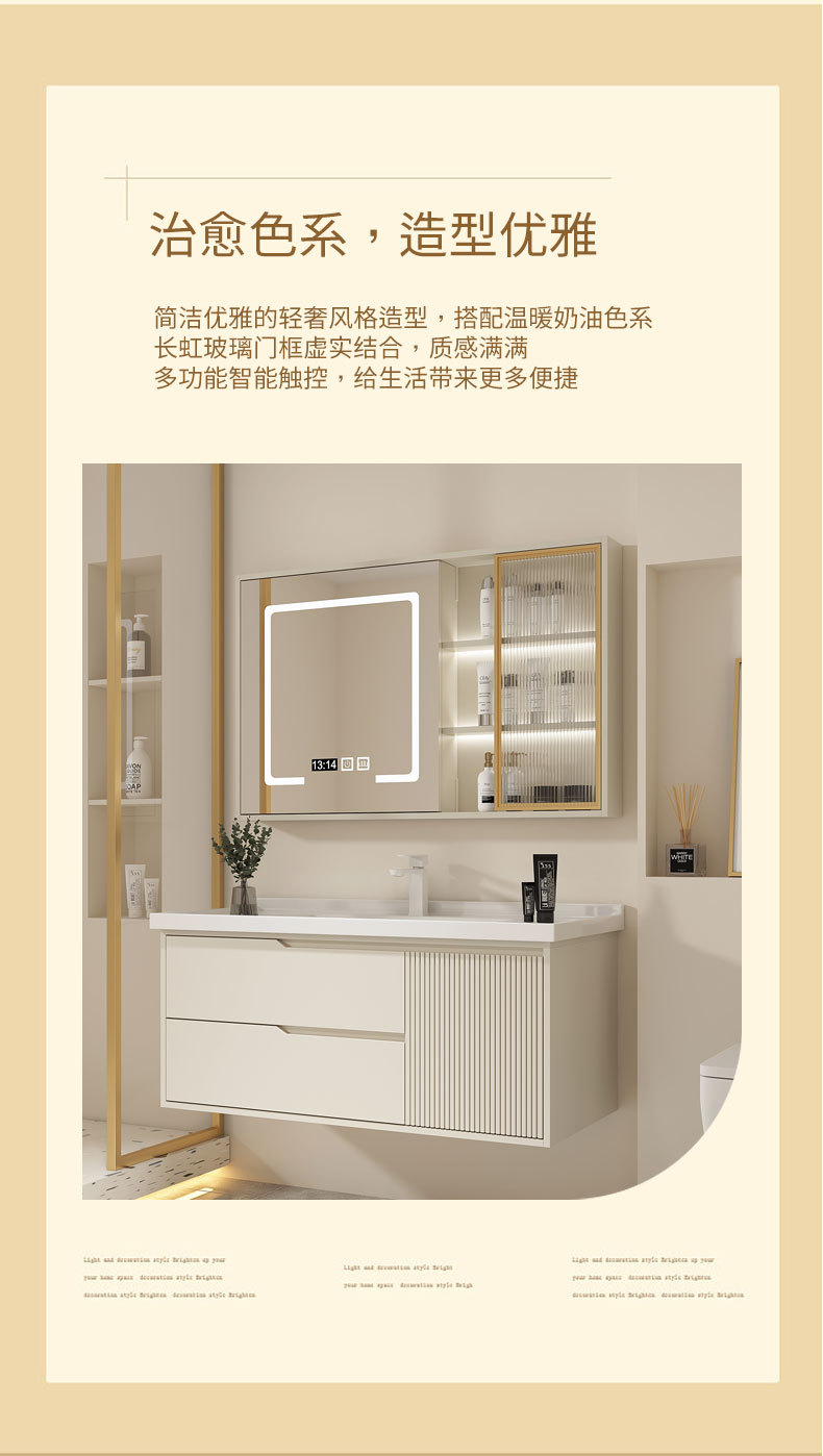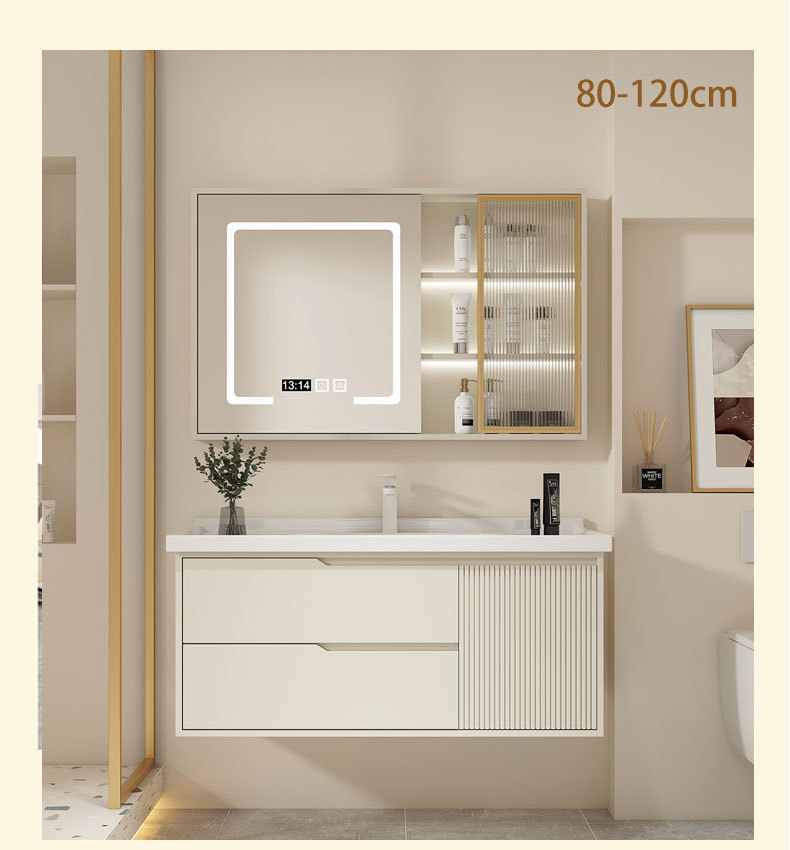 • 80cm 밀크티 컬러 직각 벽 캐비닛 + 스마트 유리 도어 거울 캐비닛 [무료 액세서리 풀 세트 + 설치]
