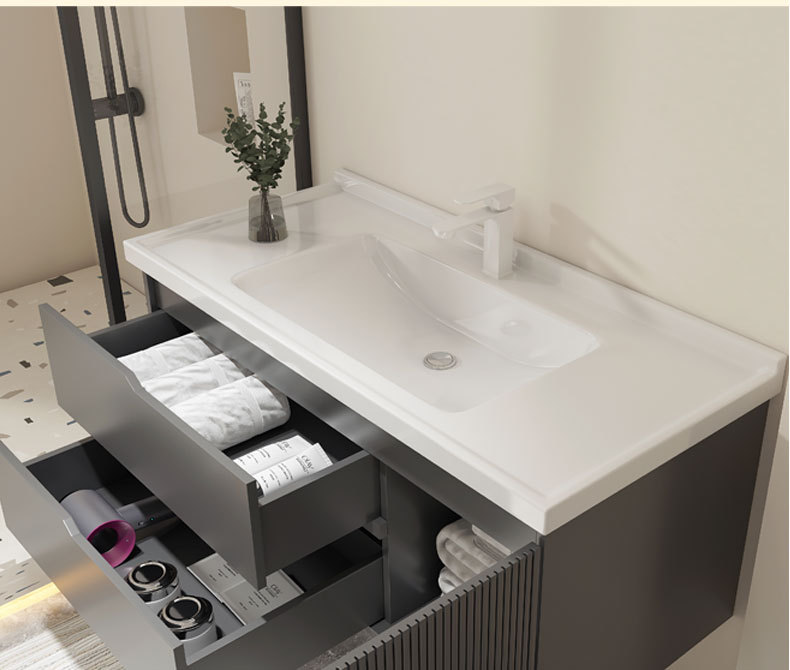 • 90cm 라이트 럭셔리 그레이 직각 벽 캐비닛 + 스마트 유리 거울 캐비닛 [무료 액세서리 풀 세트 + 설치]