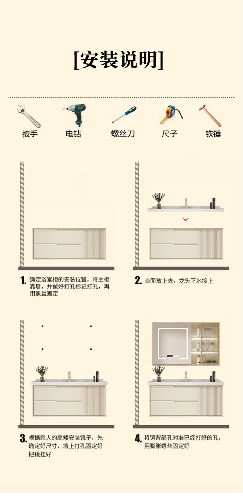 • 80cm 밀크티 컬러 직각 벽 캐비닛 + 일반 반 거울 캐비닛 [무료 액세서리 풀 세트 + 설치]