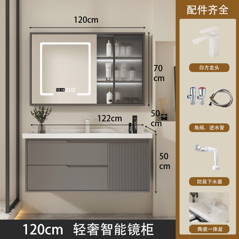 • 120cm 라이트 럭셔리 그레이 직각 벽 캐비닛 + 스마트 유리 거울 캐비닛 [무료 액세서리 풀 세트 + 설치]