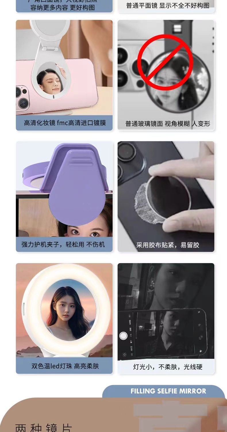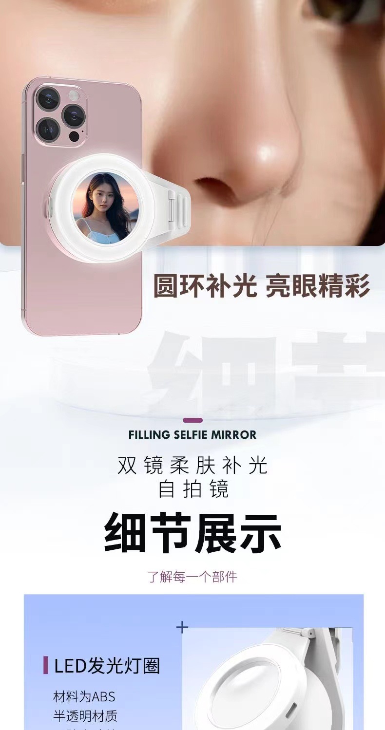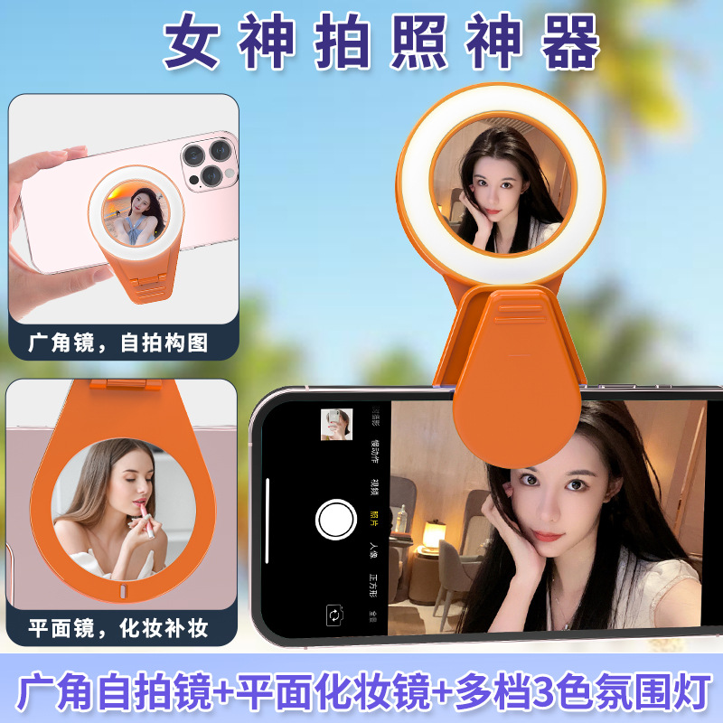 메이크업 미러 휴대 전화 채우기 라이트 셀카 거울 새로운 휴대용 뷰티 라이트 라이브 네트워크 빨간색 사진 유물