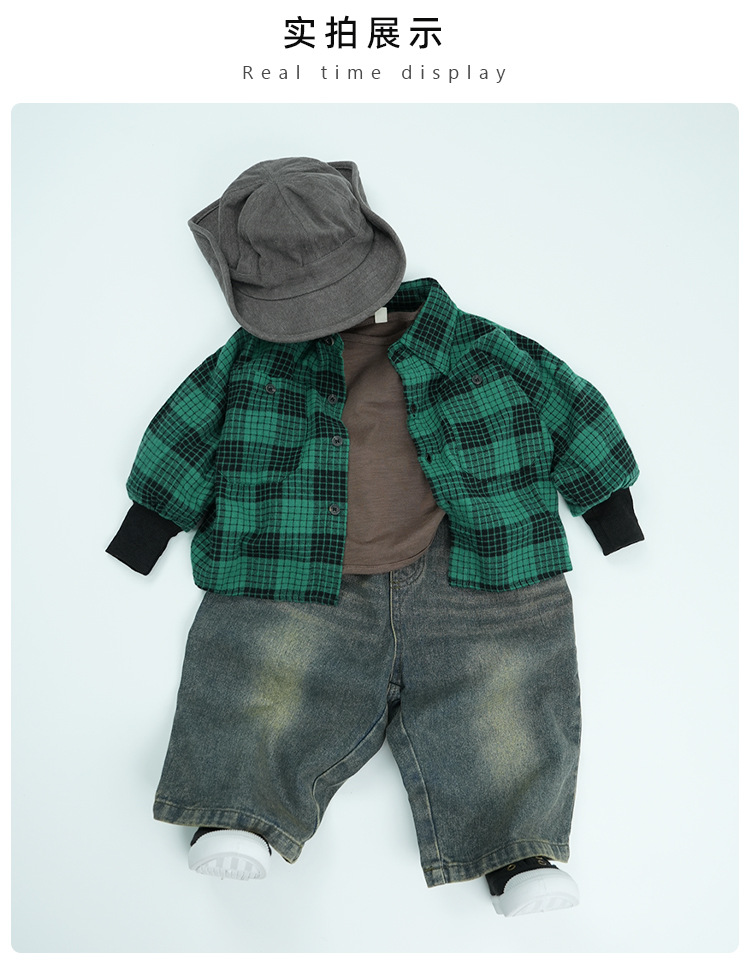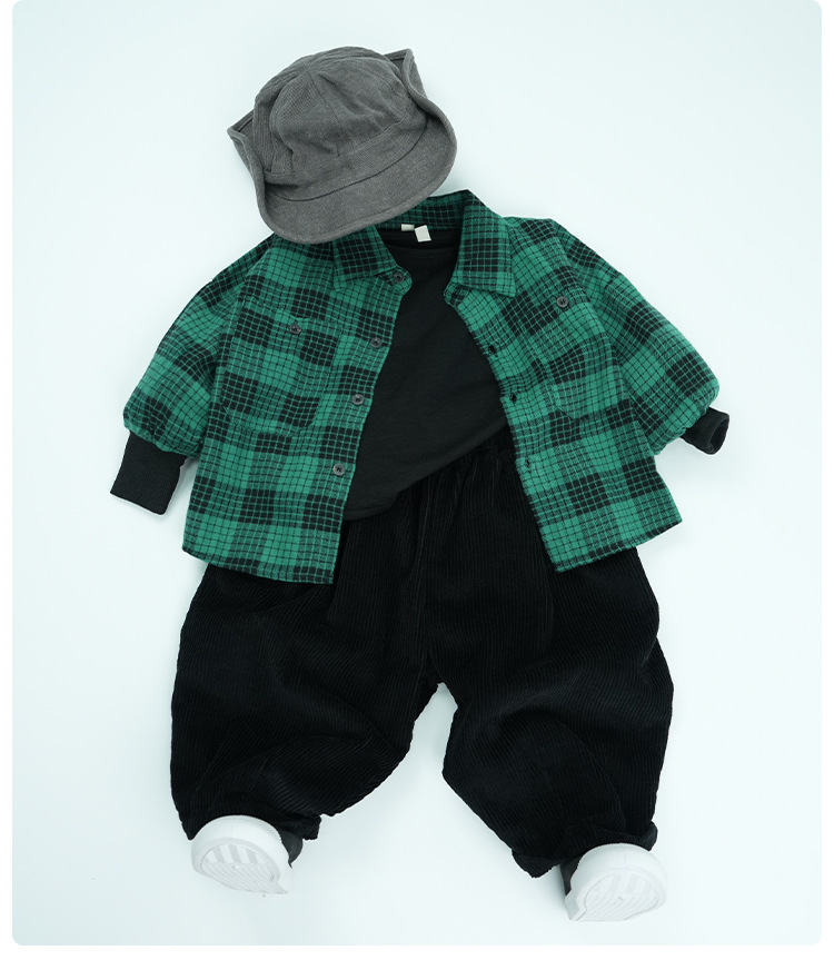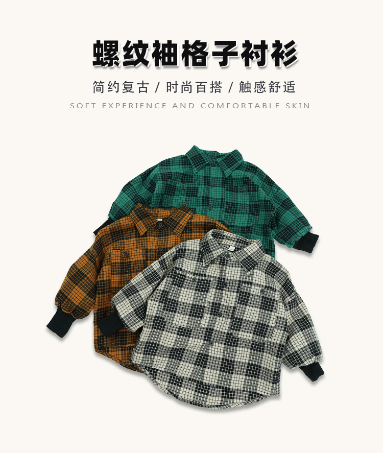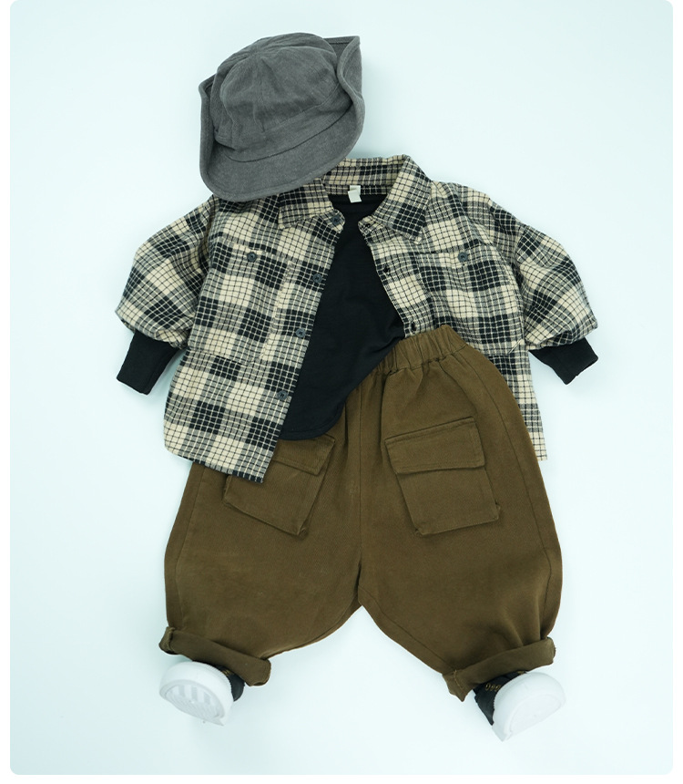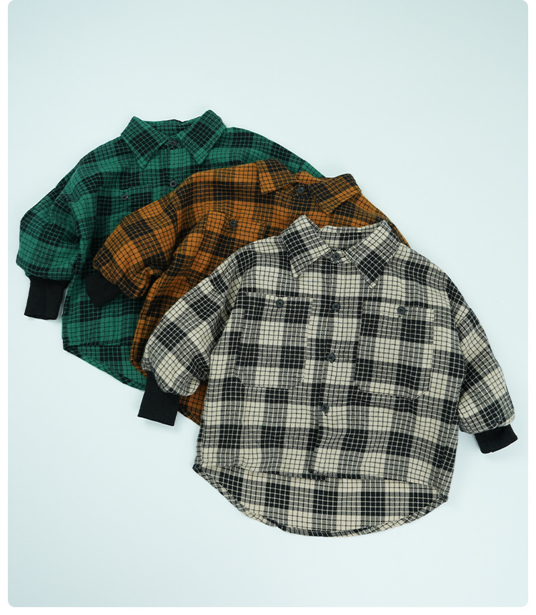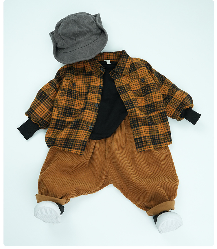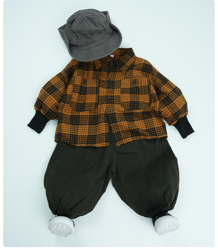 일본식 · 한국식 아동복 소년 손수건 무늬 셔츠 어린이 긴팔 셔츠… 아기의 봄 · 가을 옷 순면