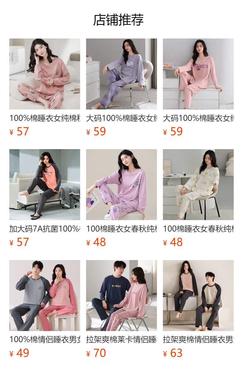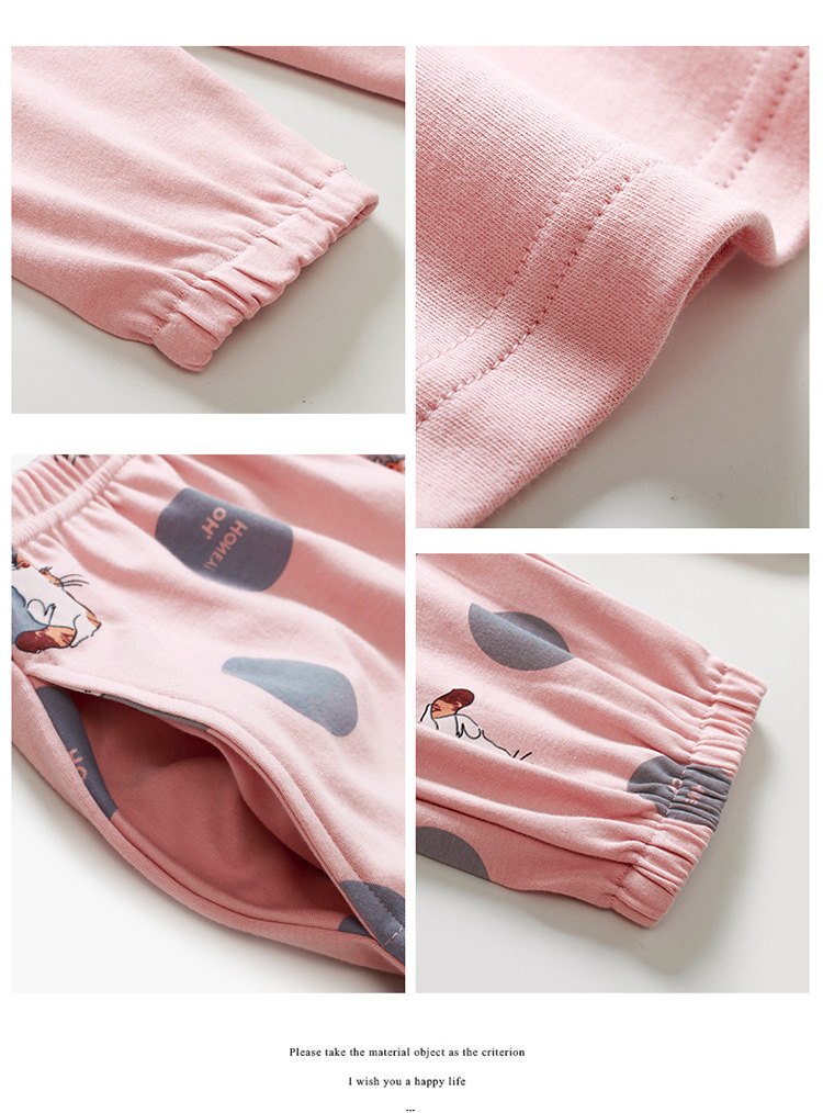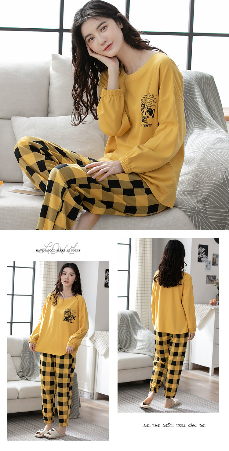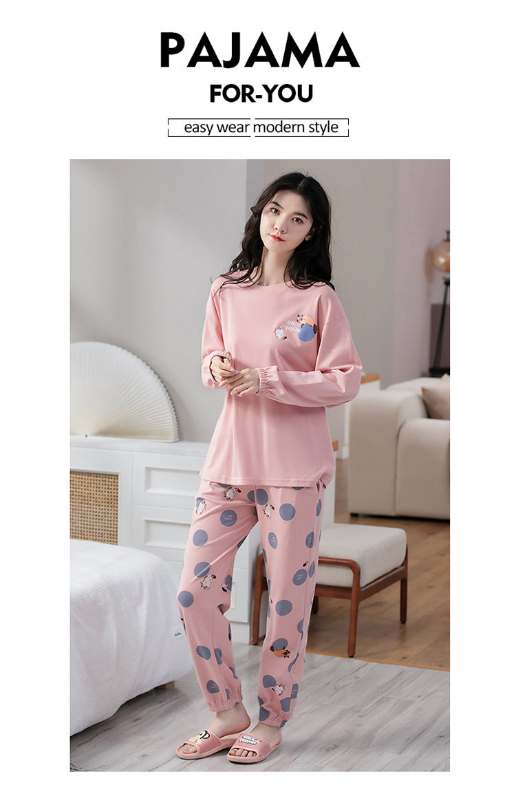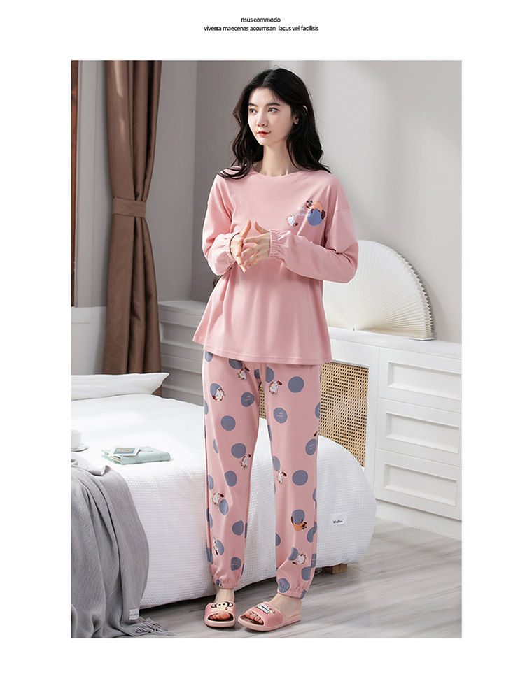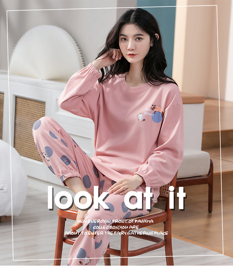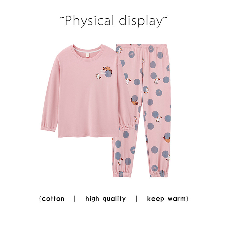 100% 면 잠옷 여성 봄과 가을 면화 긴 소매 라운드 넥 코튼 땀 흡수 통기성 복장 가을과 겨울 홈 의류 세트스토어 가기