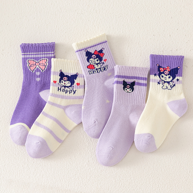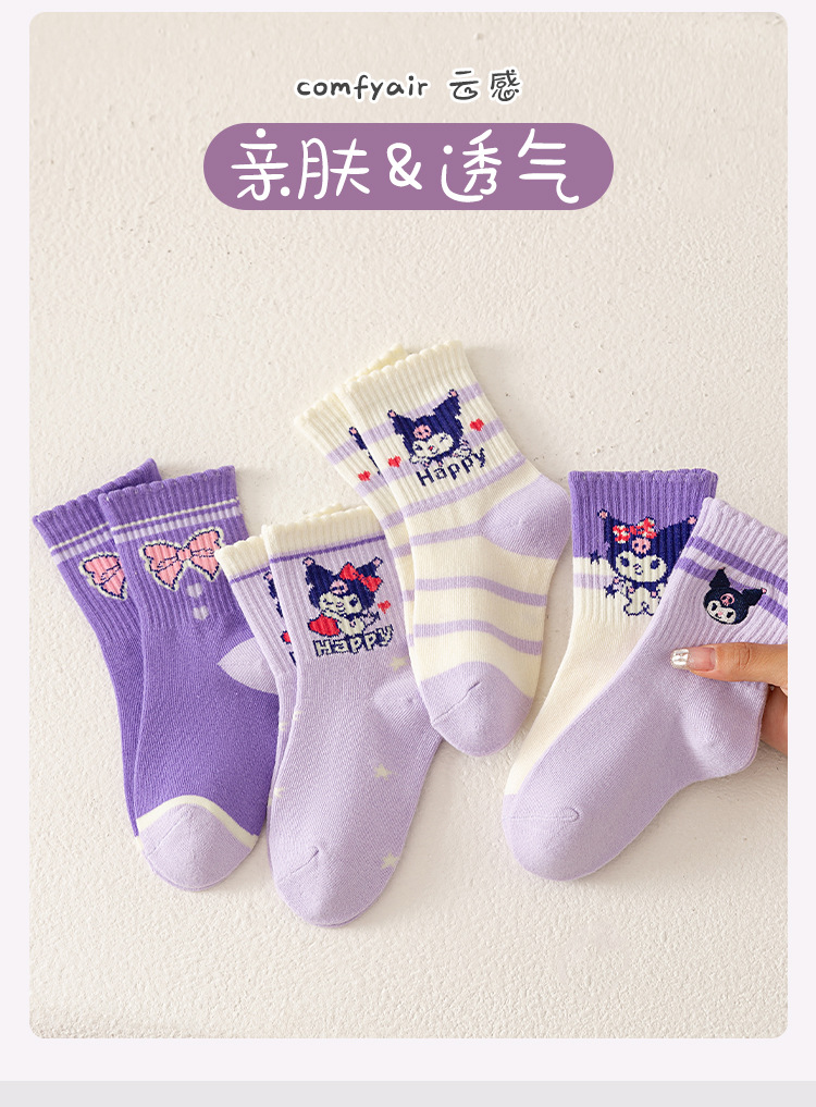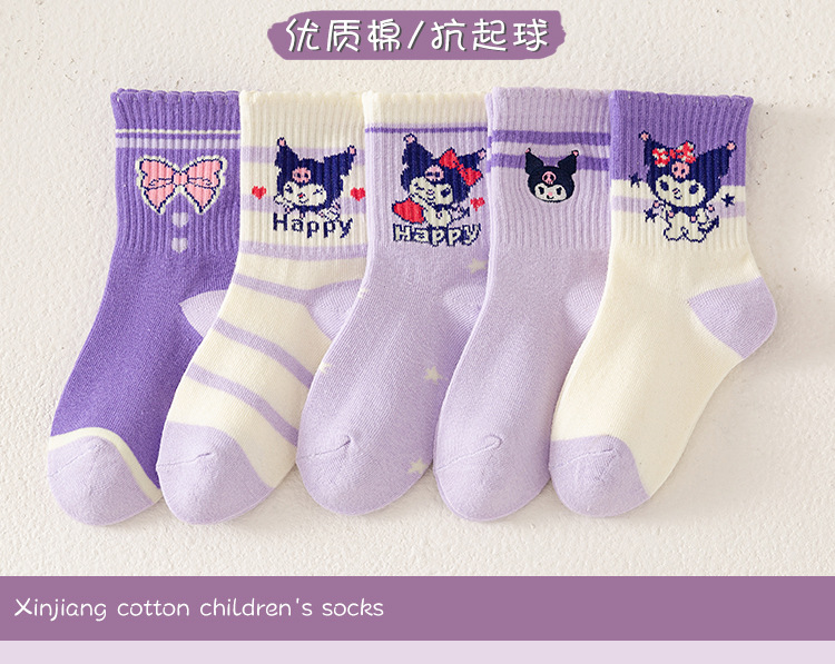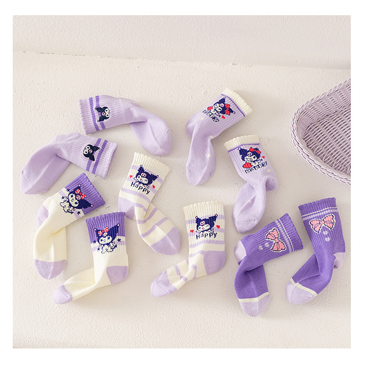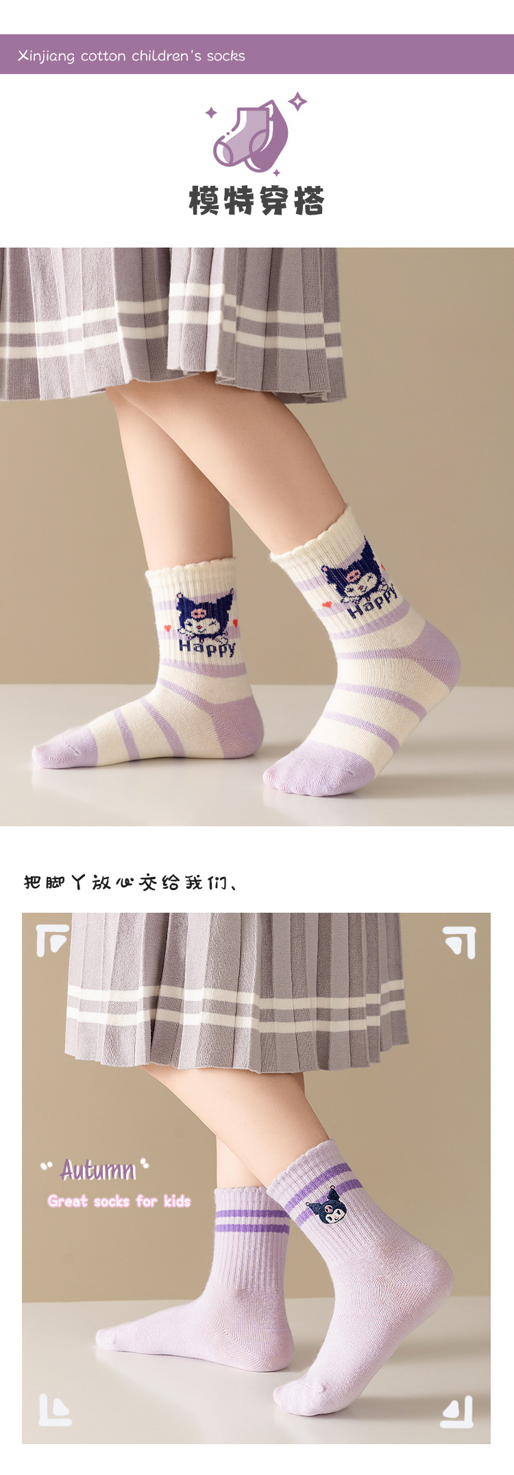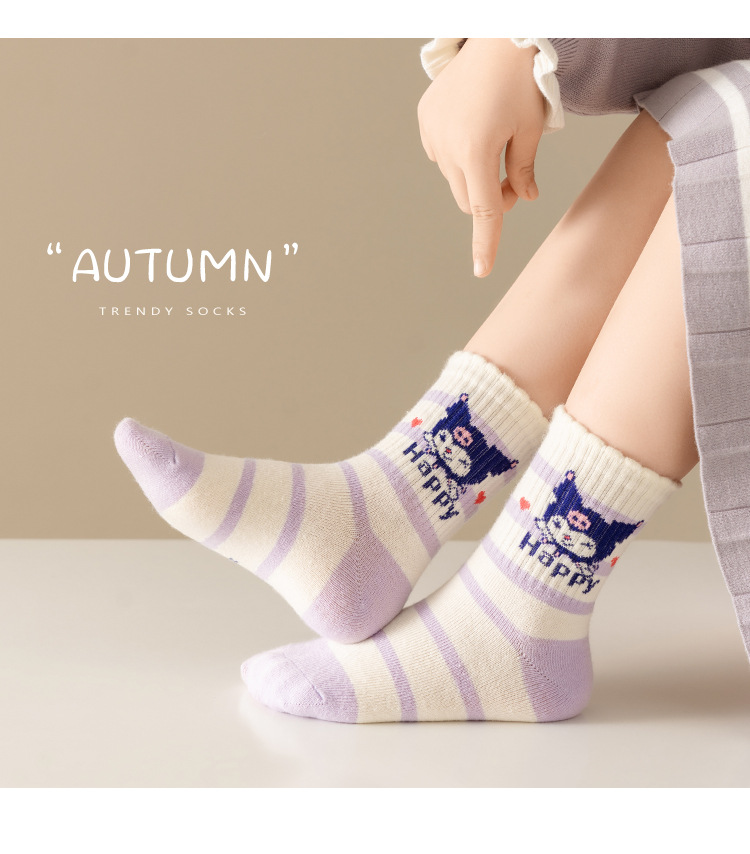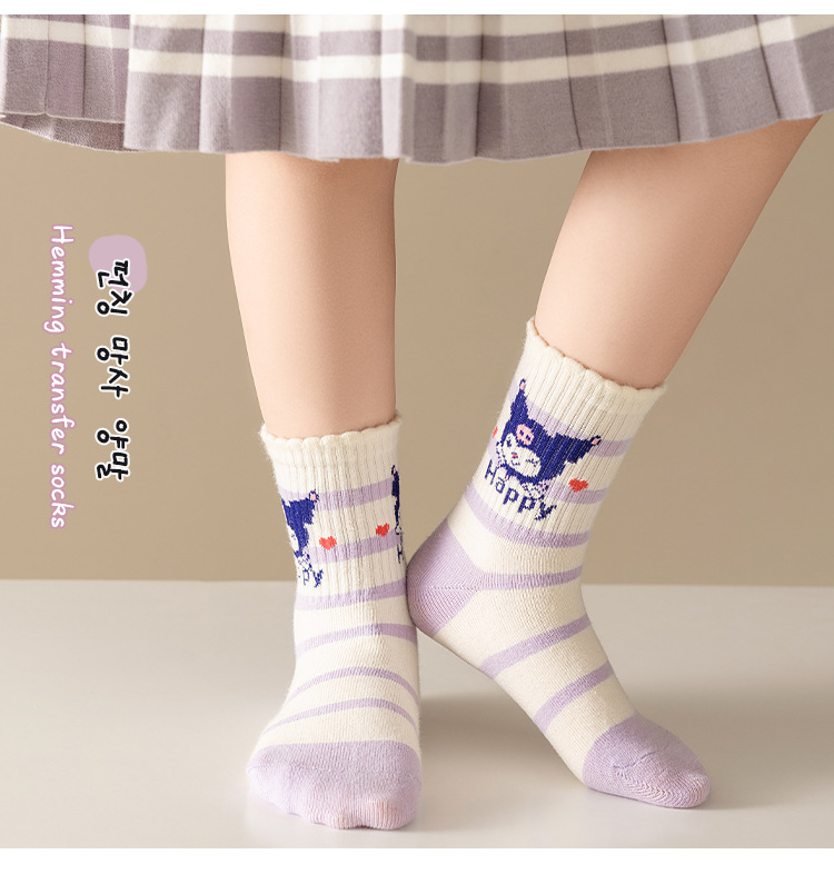 Kulomi 소녀 양말 가을과 겨울 새로운 어린이 양말 통기성 면 양말 소녀 만화 귀여운 봄과 가을 중간 튜브 도매