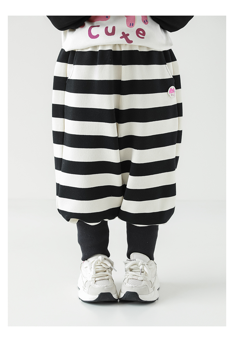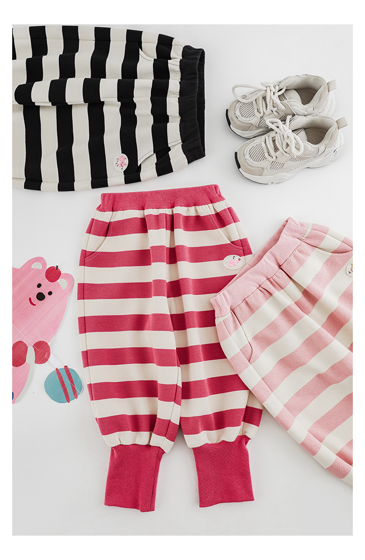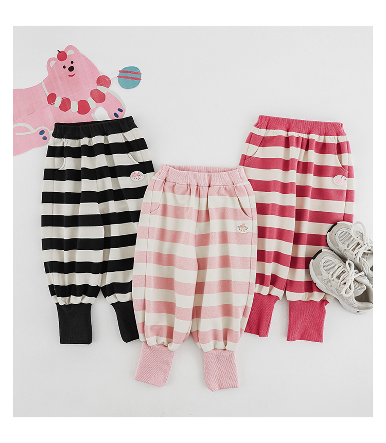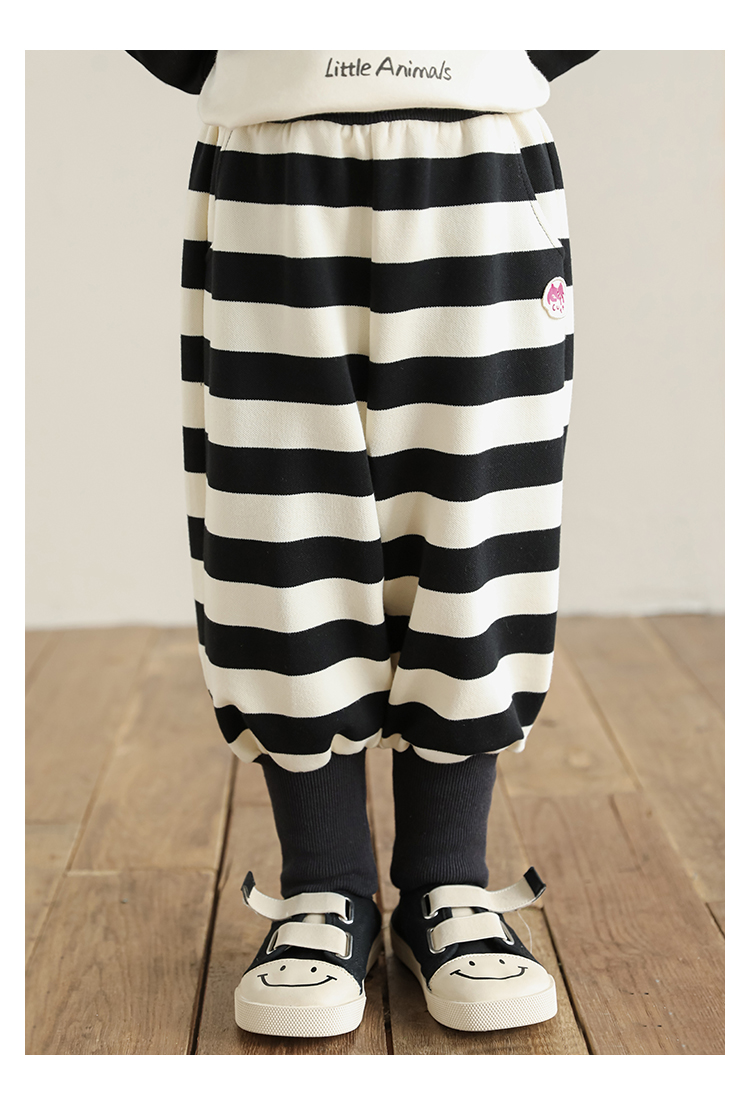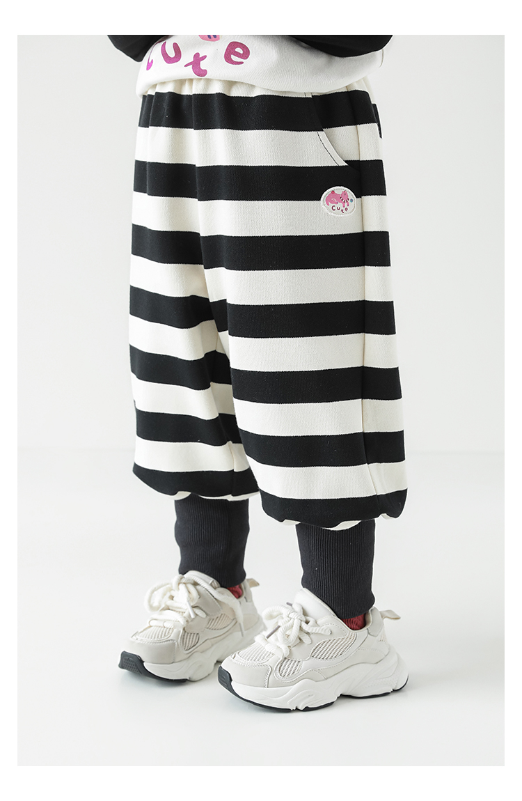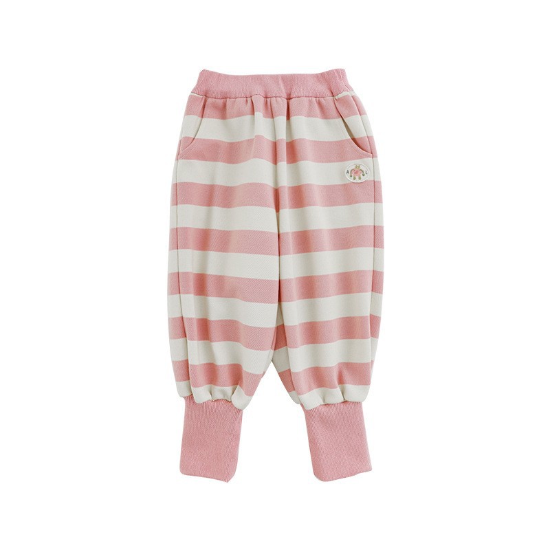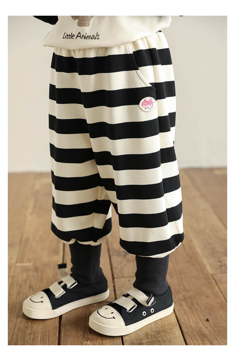 Wuri Boo 소녀의 패션 캐주얼 올 매치 니트 바지 2025 가을 새로운 어린이 줄무늬 발 바지 트렌디스토어 가기