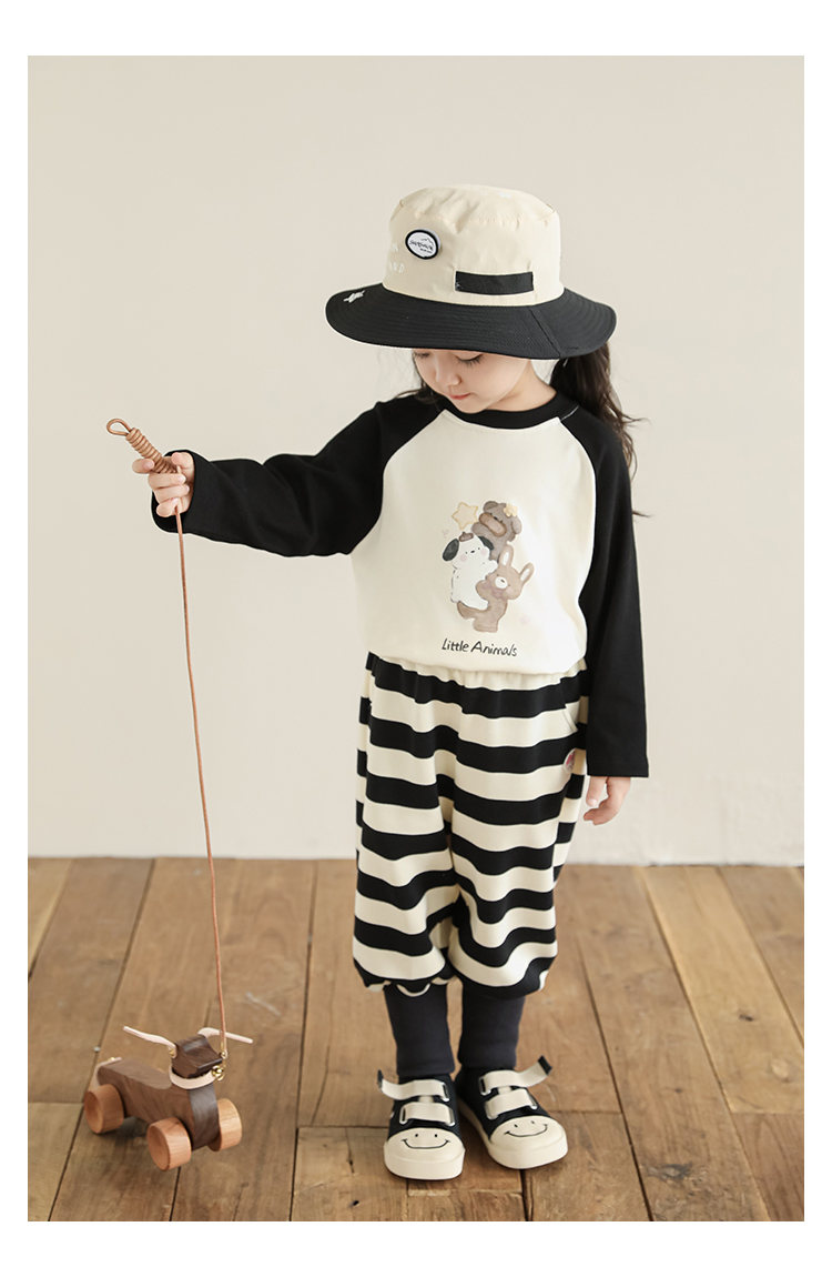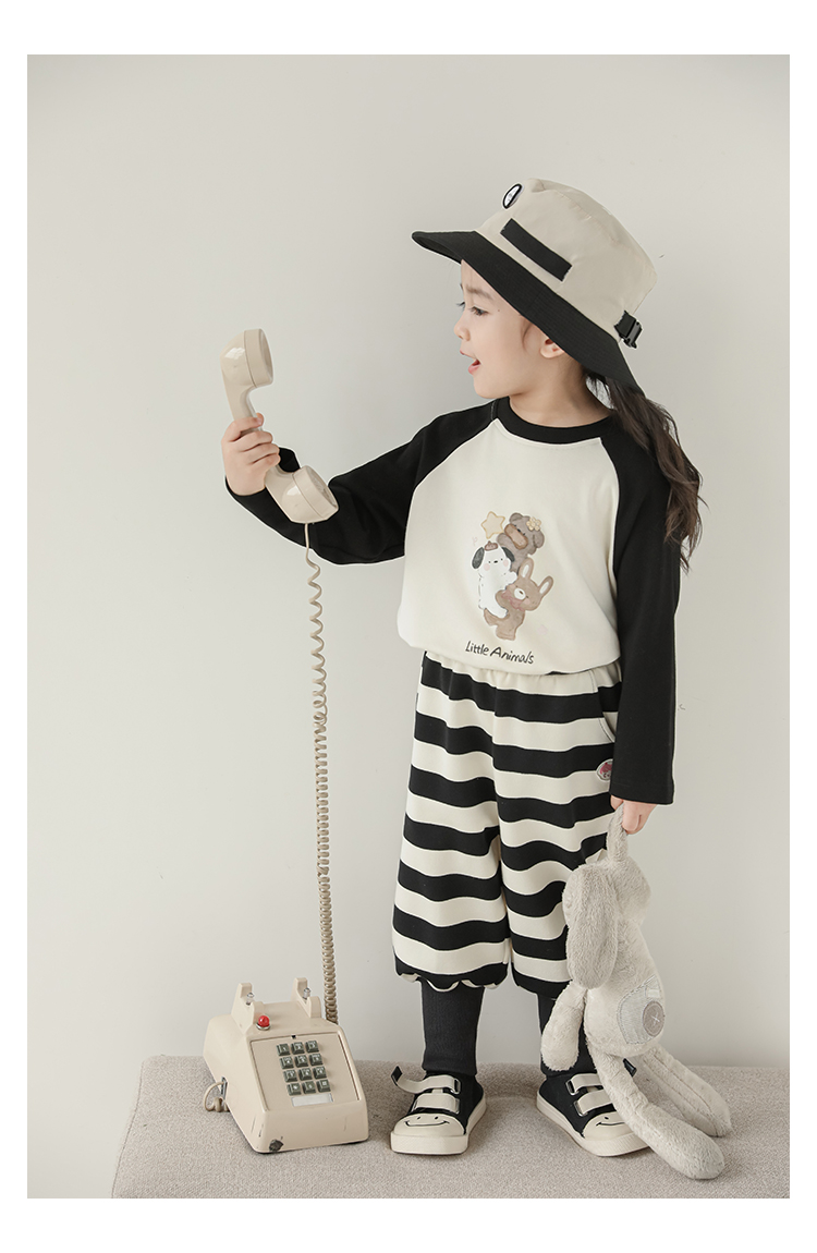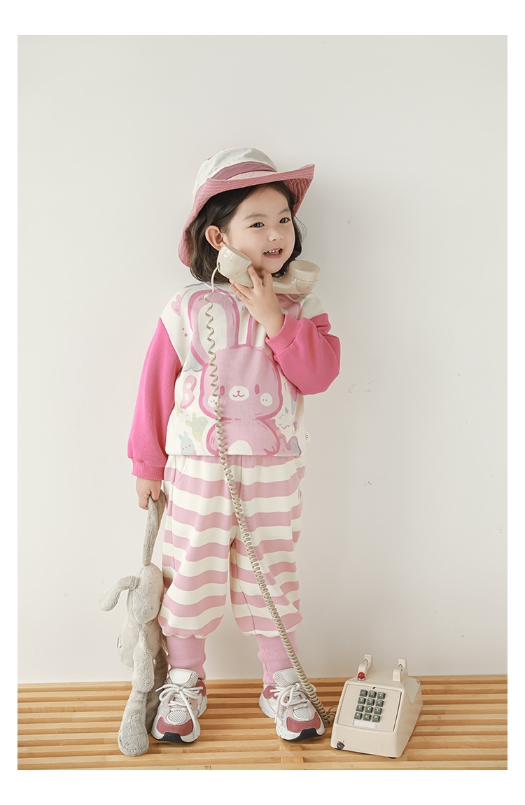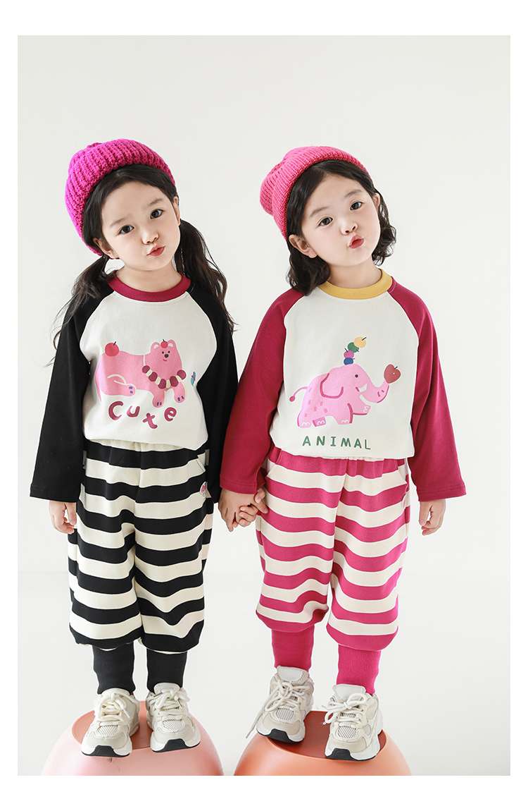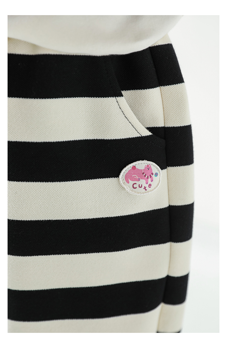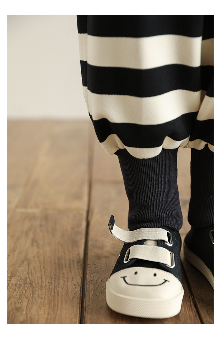 Wuri Boo 소녀의 패션 캐주얼 올 매치 니트 바지 2025 가을 새로운 어린이 줄무늬 발 바지 트렌디스토어 가기