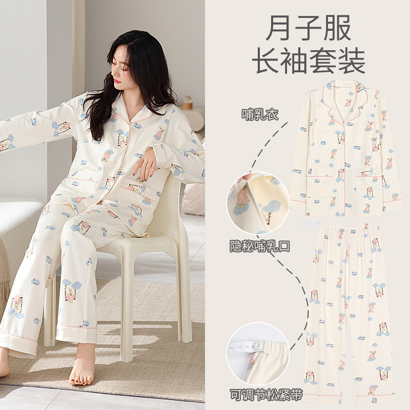새 가을 여성 순면 산후간호 임산부 잠옷 양면 순면 임산부 가을과 겨울 월간 의류스토어 가기