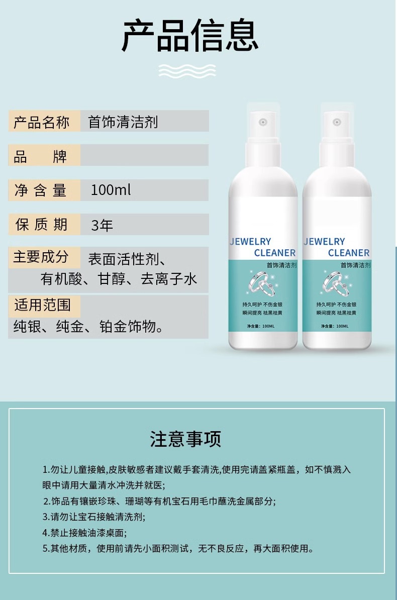 쥬얼리 클리너 전문 실버 워시 물 순금과 실버 팔찌는 실버 산화 방지 오염 제거 연마 밝은 세제를 해치지 않습니다.스토어 가기
