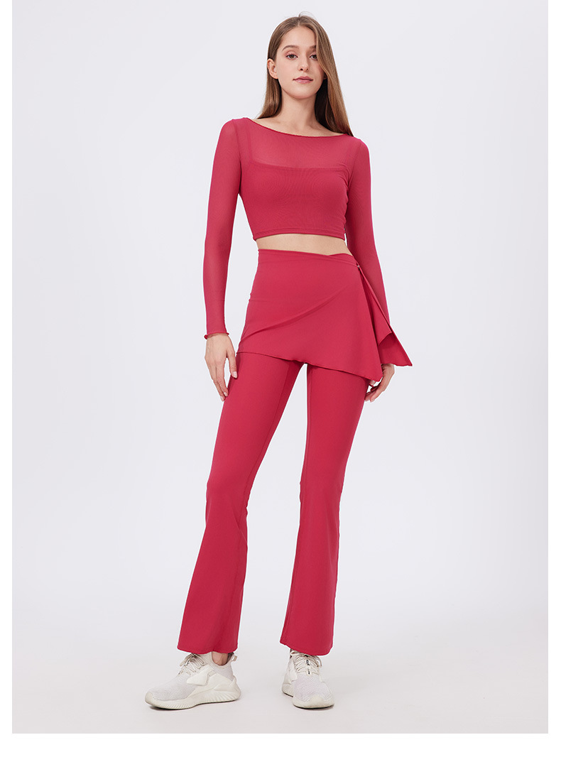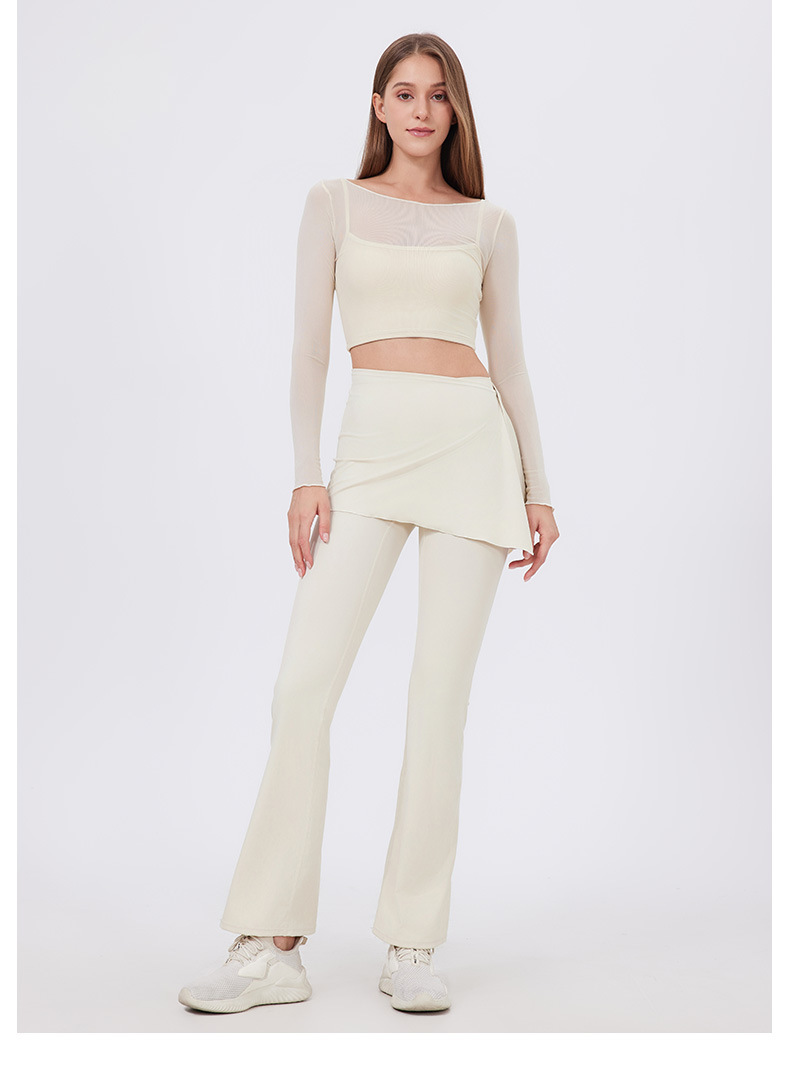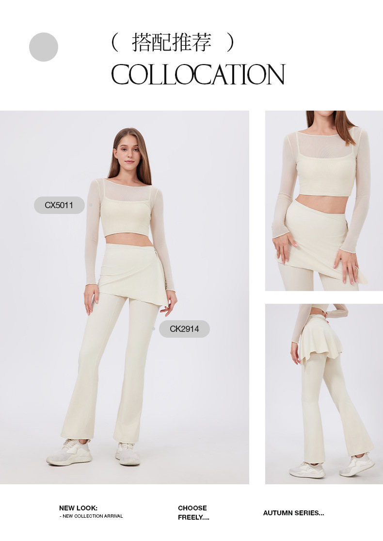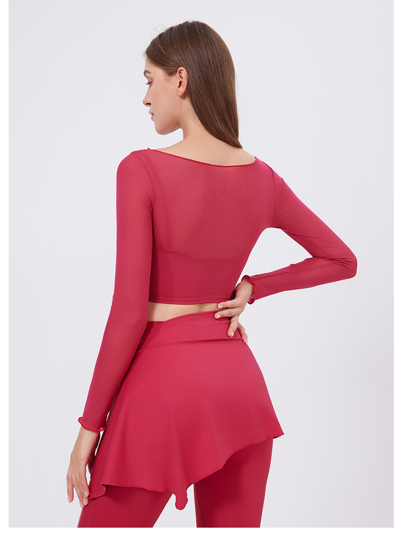 가짜 투피스 메쉬 스포츠 티셔츠 여성용 긴팔 요가 옷 가슴 매트 퀵 드라이 슬리밍 피트니스 옷