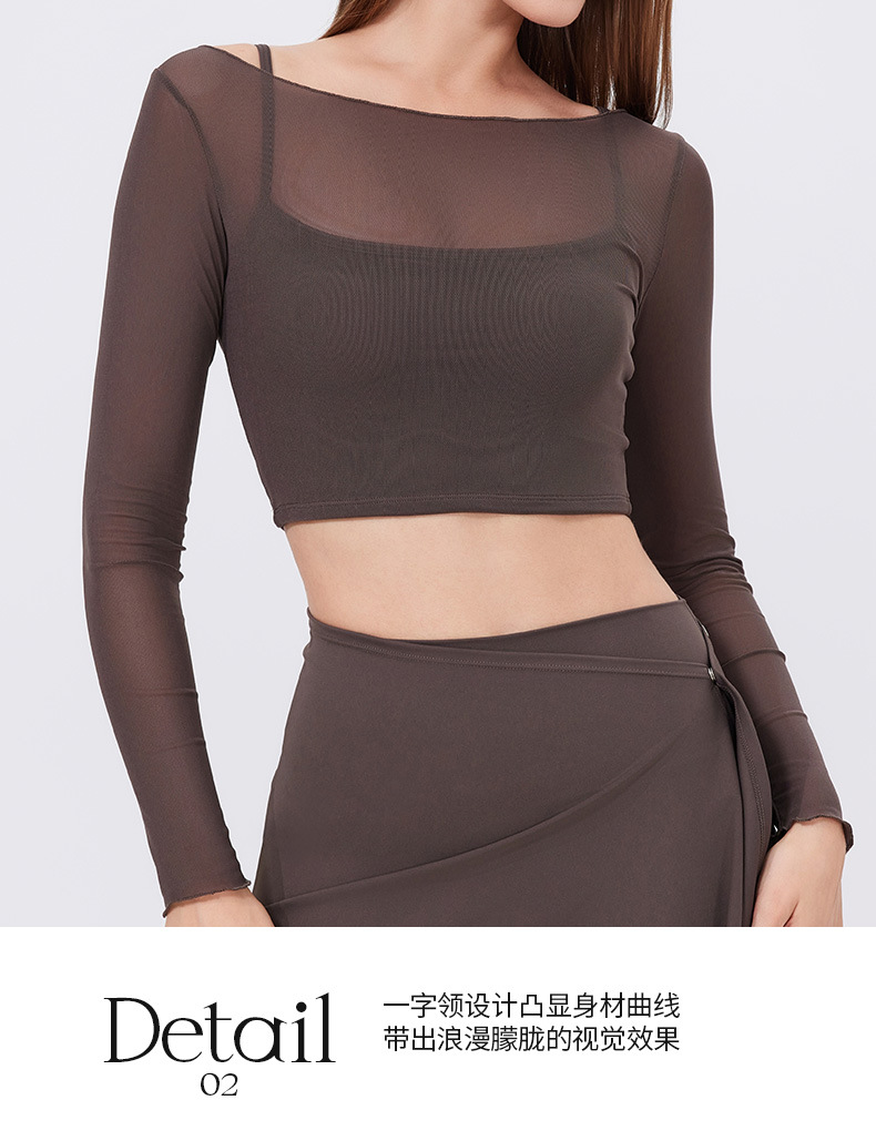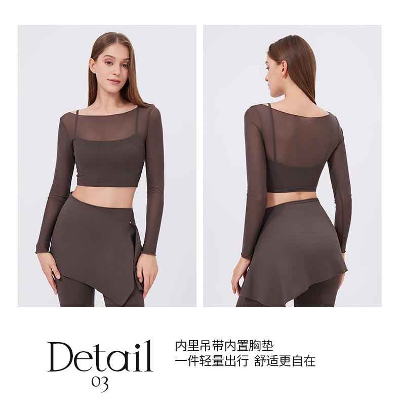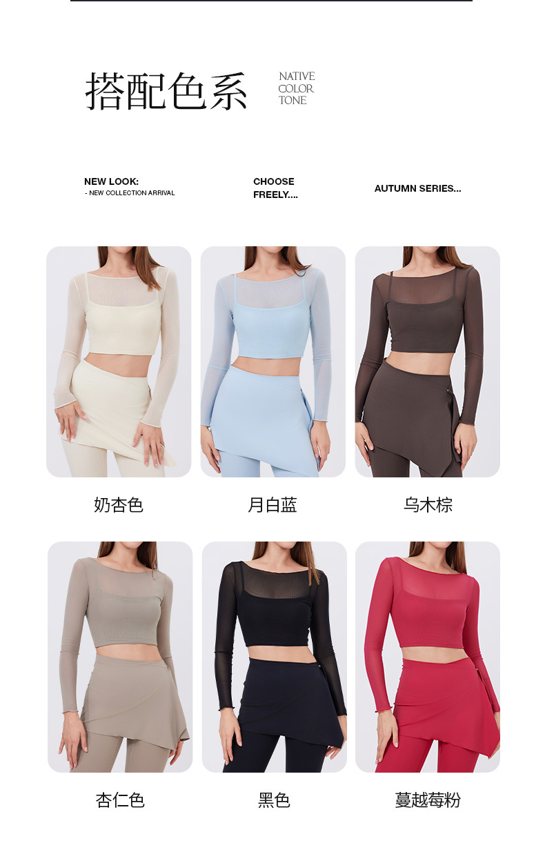가짜 투피스 메쉬 스포츠 티셔츠 여성용 긴팔 요가 옷 가슴 매트 퀵 드라이 슬리밍 피트니스 옷스토어 가기