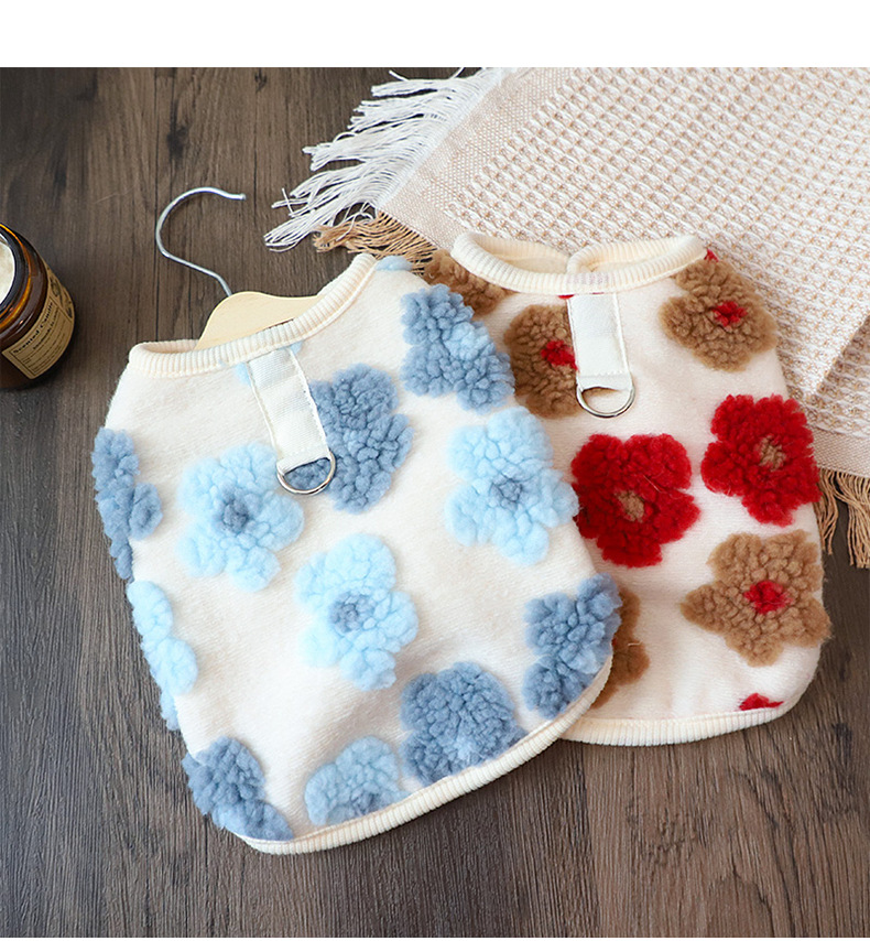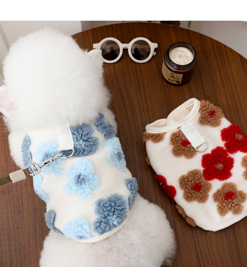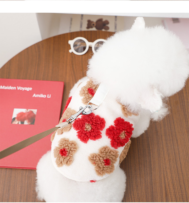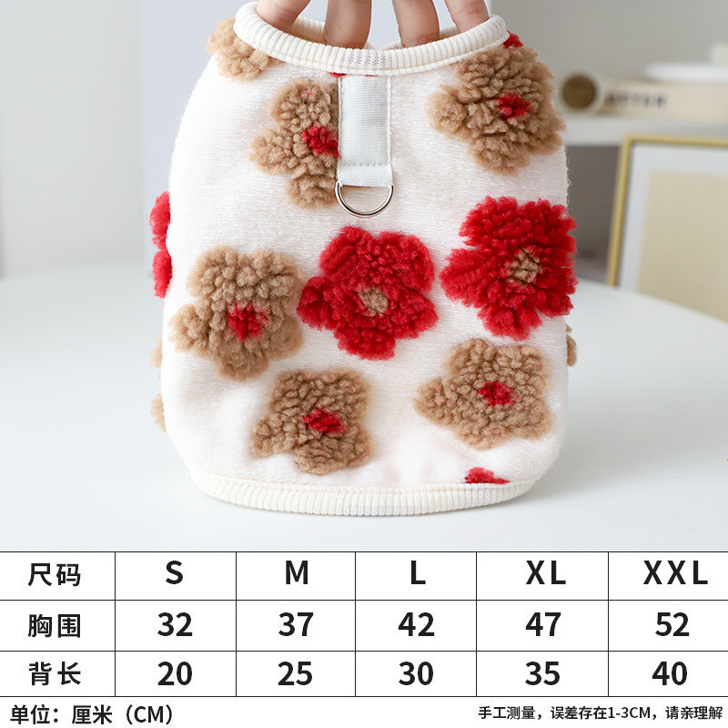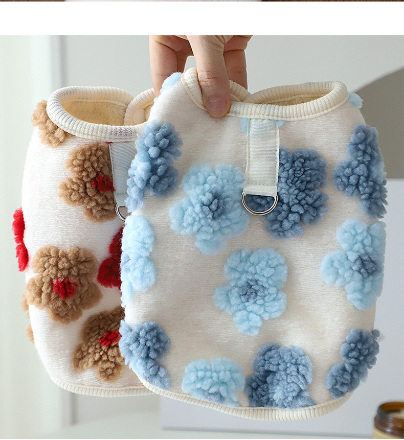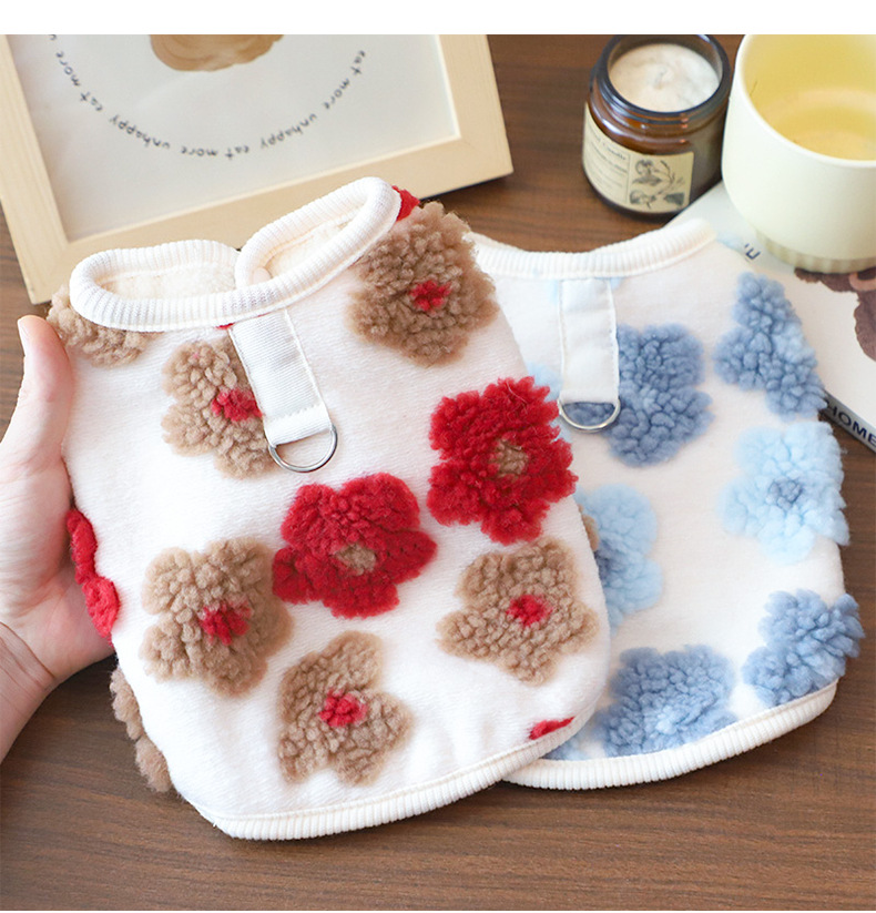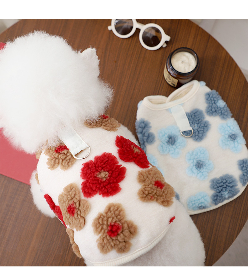 애완동물 조끼 테디 강아지 겨울용 따뜻한 면옷, 리드줄 고리 포함, 입체 꽃무늬 벨벳 조끼, 민소매 강아지 스웨터