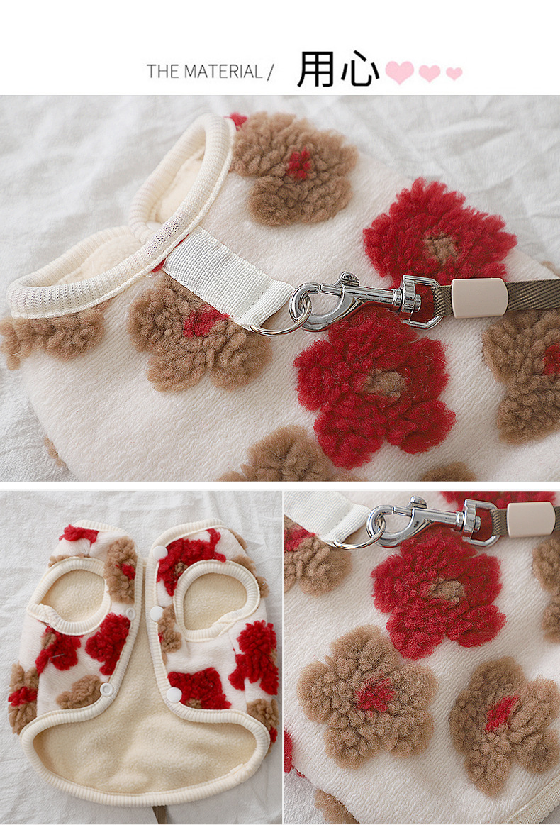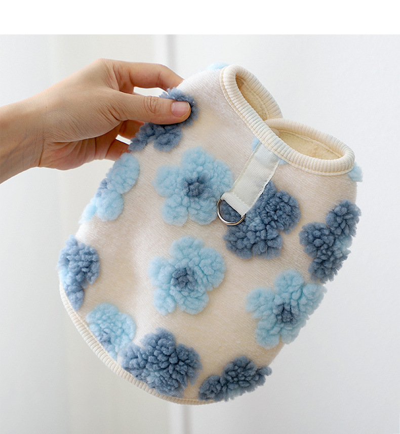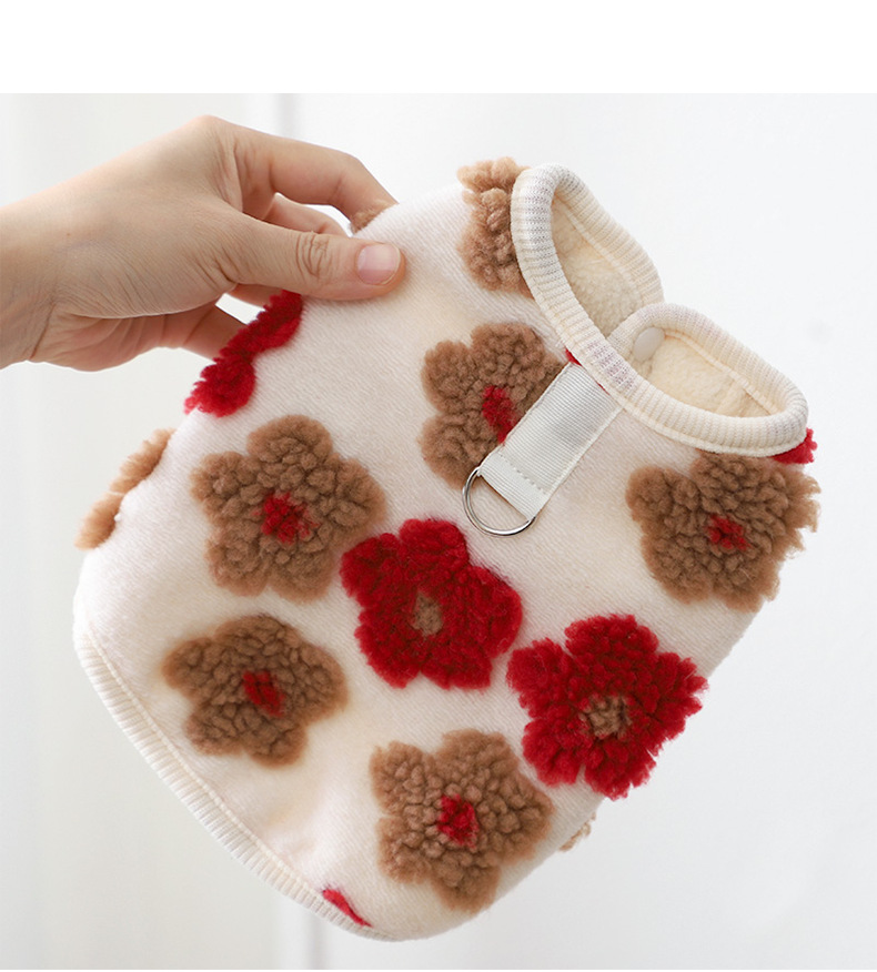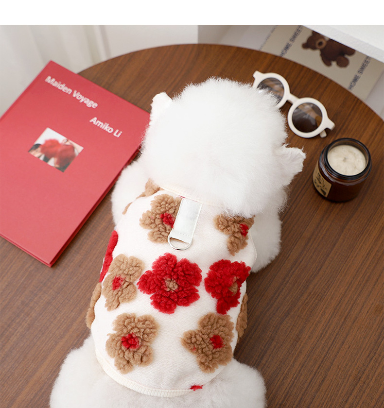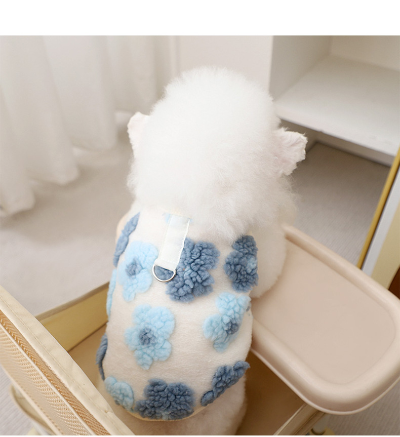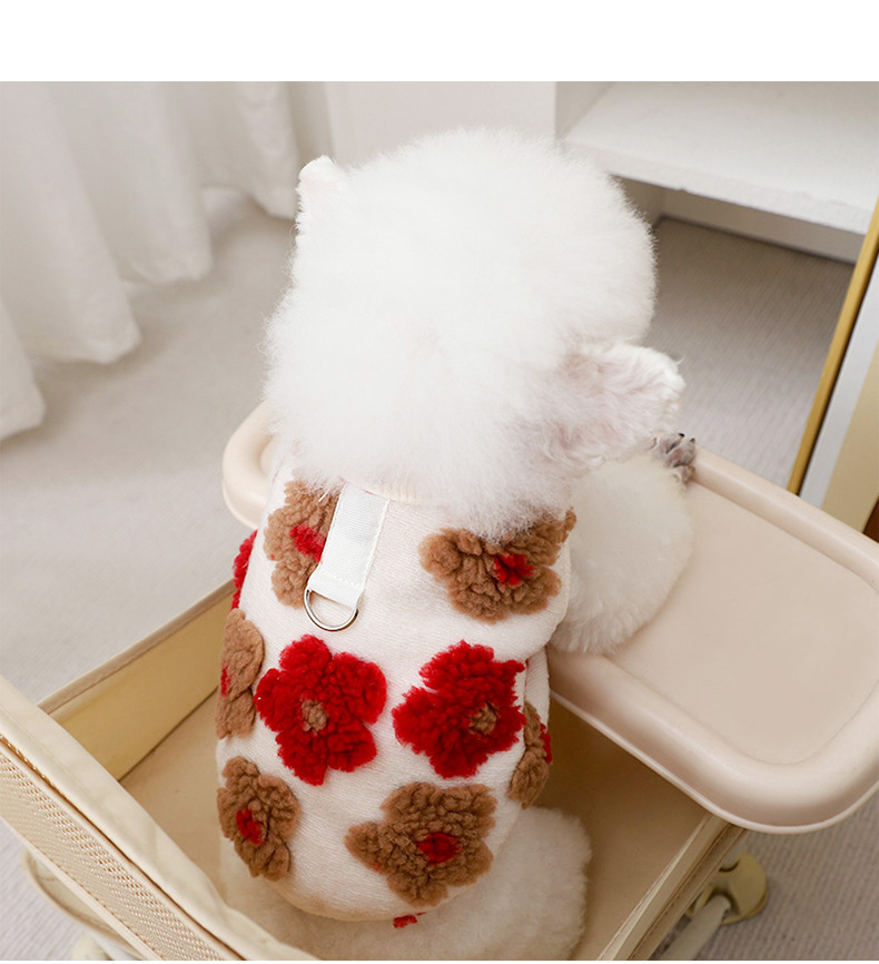 애완동물 조끼 테디 강아지 겨울용 따뜻한 면옷, 리드줄 고리 포함, 입체 꽃무늬 벨벳 조끼, 민소매 강아지 스웨터