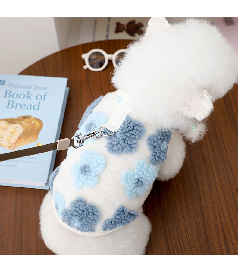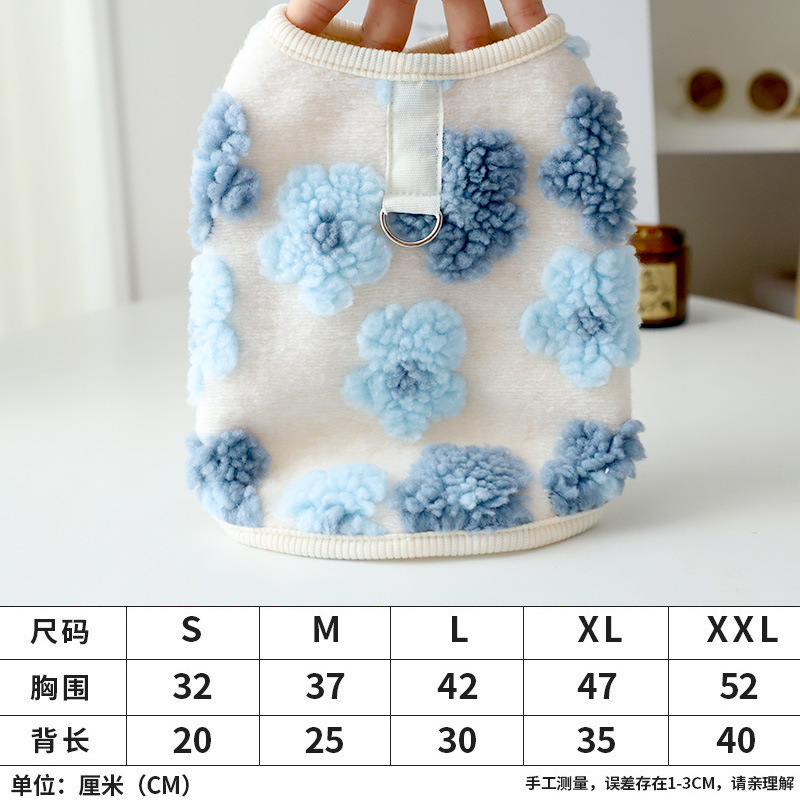 애완동물 조끼 테디 강아지 겨울용 따뜻한 면옷, 리드줄 고리 포함, 입체 꽃무늬 벨벳 조끼, 민소매 강아지 스웨터스토어 가기