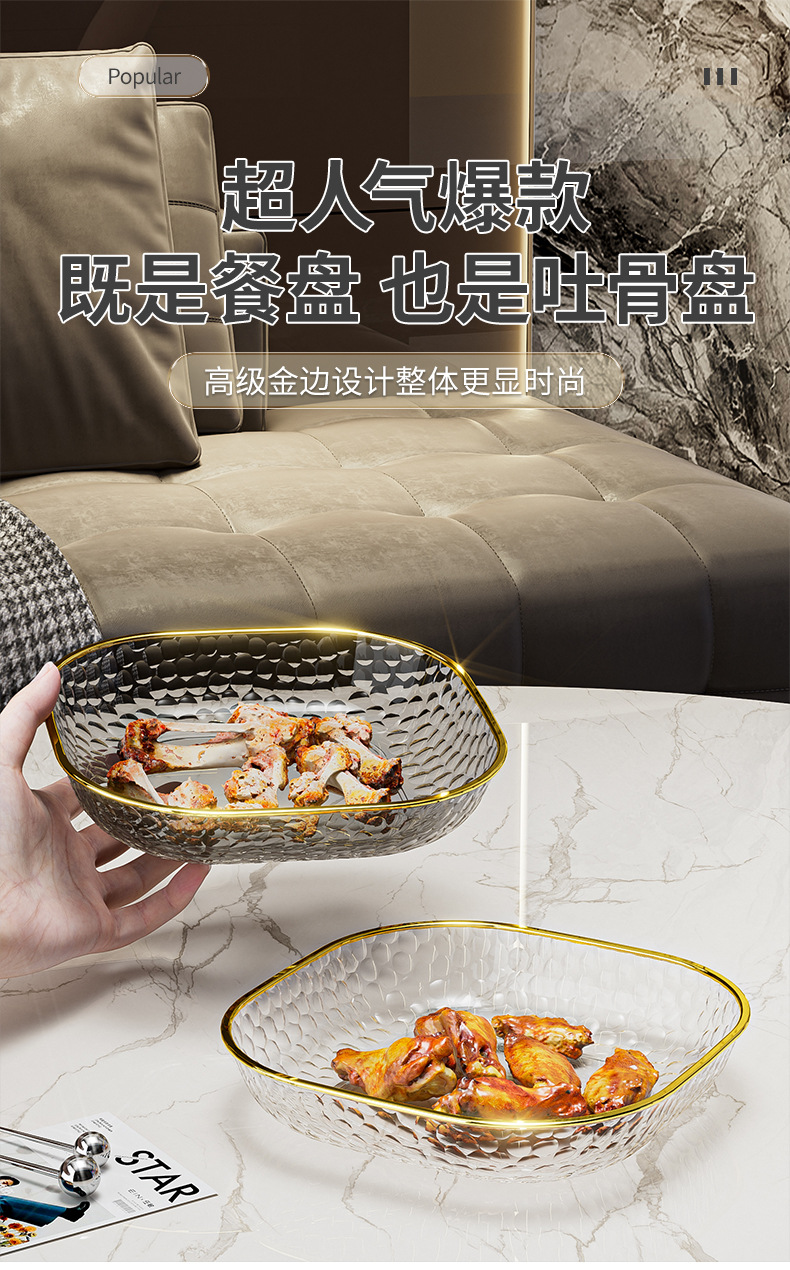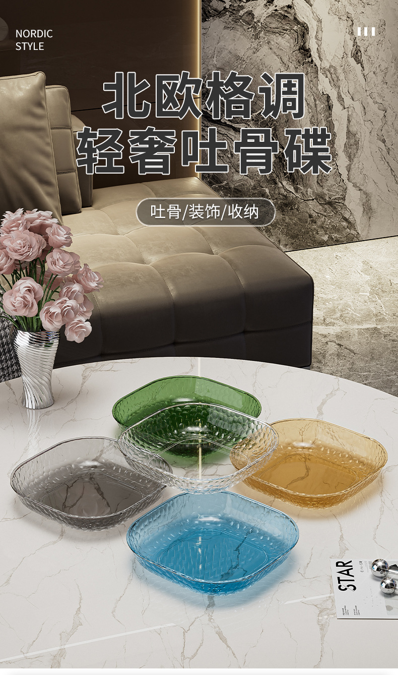 가벼운 고급 고급 투명 플레이트 뼈 간식 식탁 뼈 접시 식품 학년 플라스틱 접시 과일 접시 접시스토어 가기