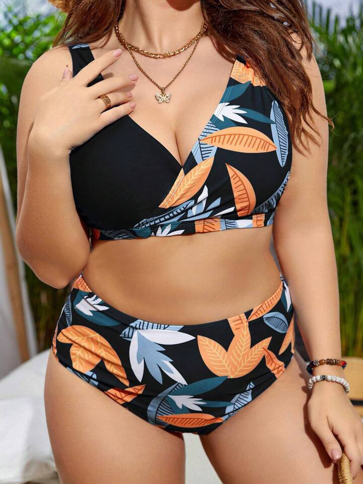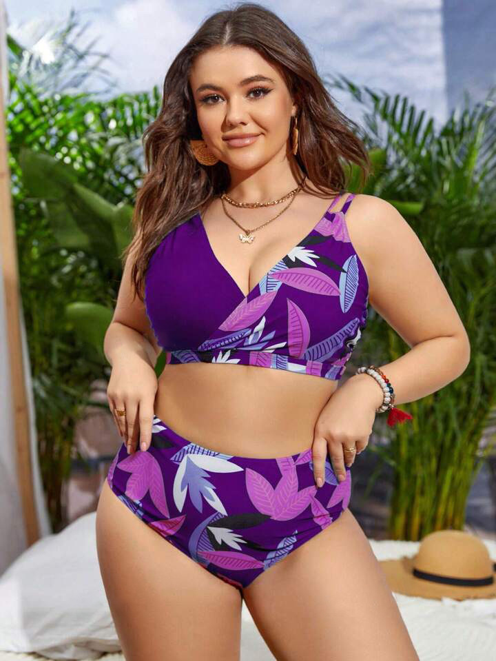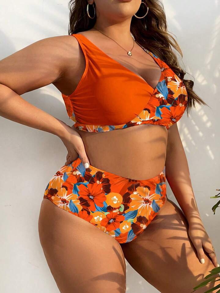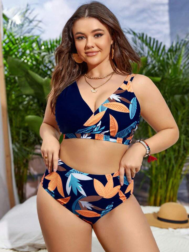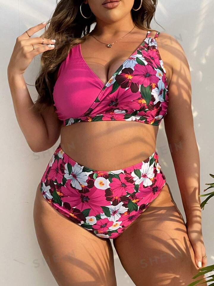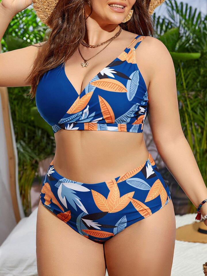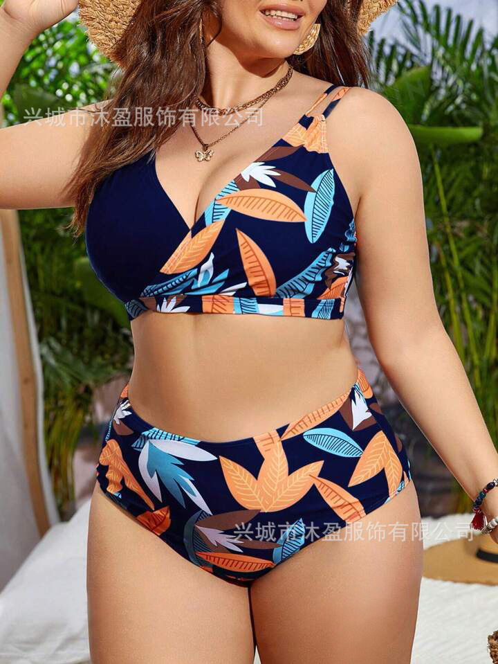 2024 유럽과 미국의 플러스 사이즈 새로운 국경 아마존 스파이스 소녀 꽃, 높은 허리 섹시한 분할 수영복 여성 세트