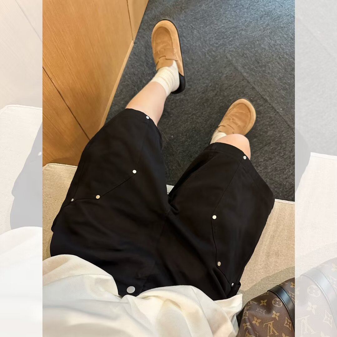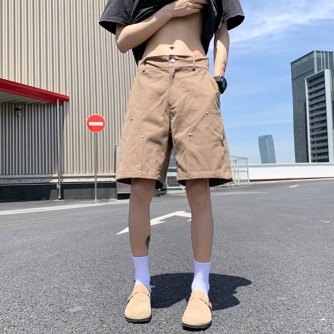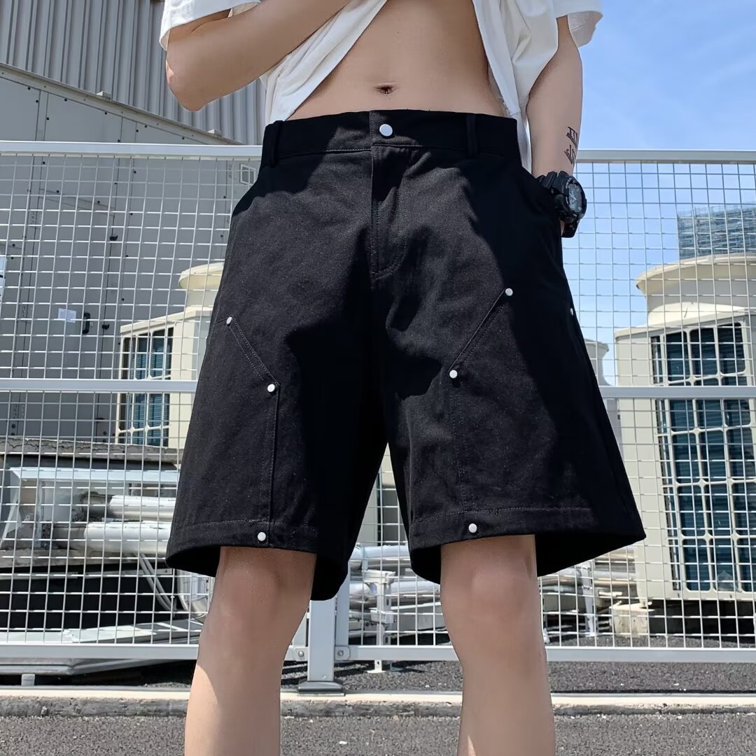 미국 스타일 복고풍 금속 스터드 장식 도구 반바지 소년 2024 유행 잘 생긴 캐주얼 바지 바지스토어 가기