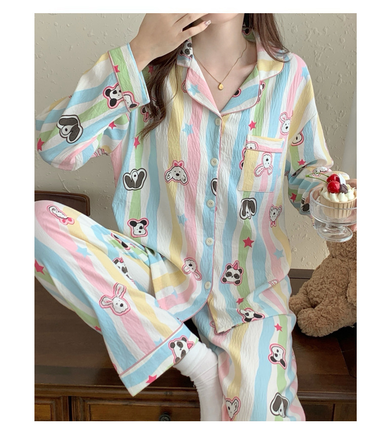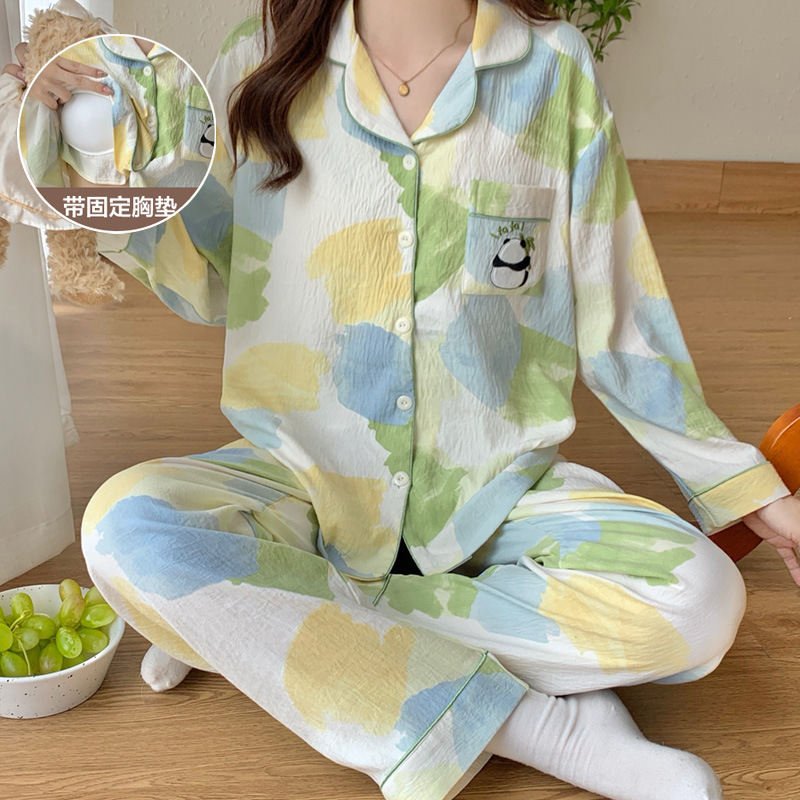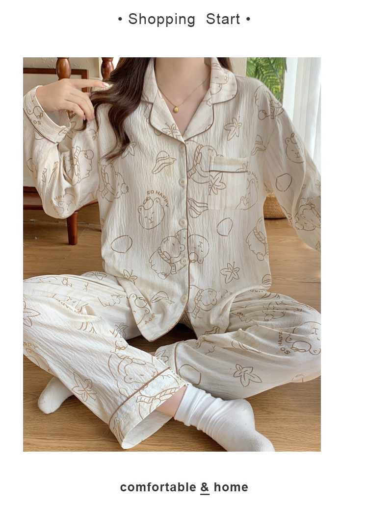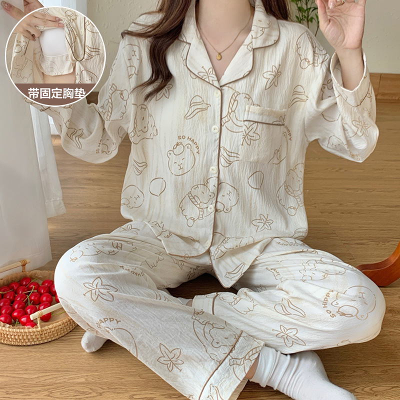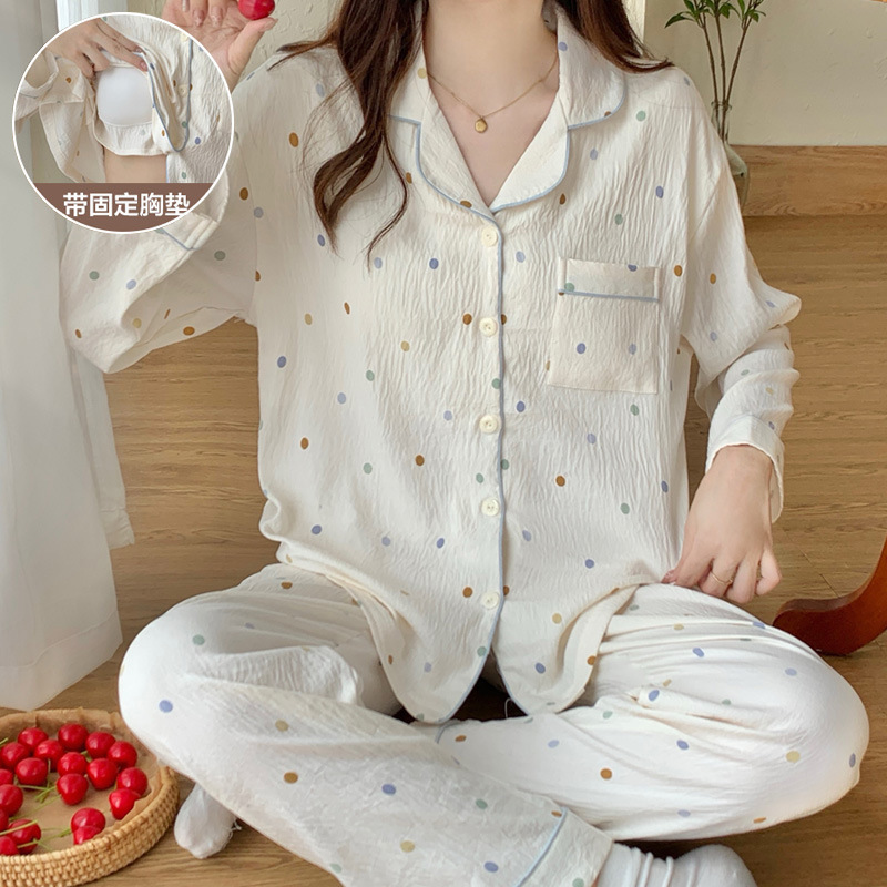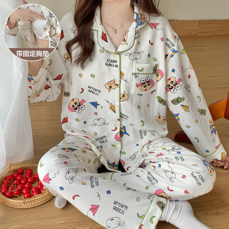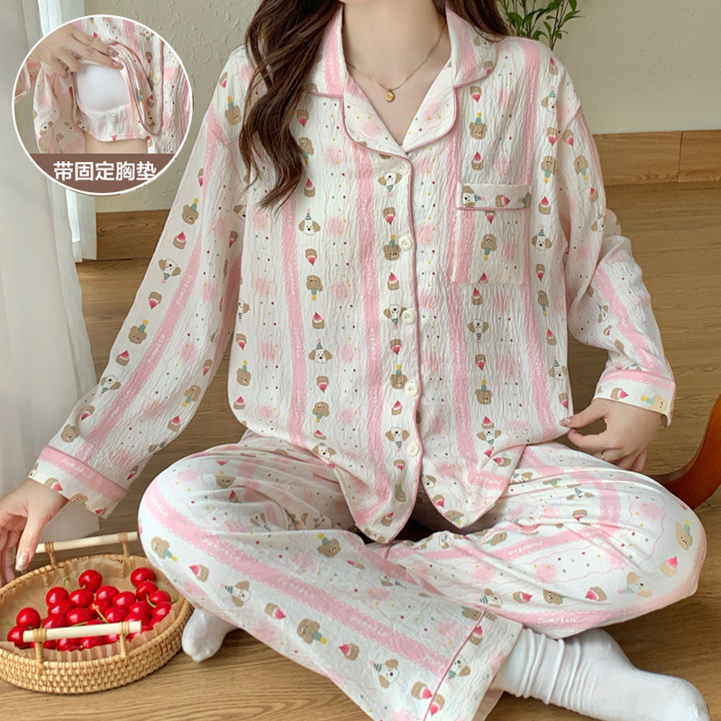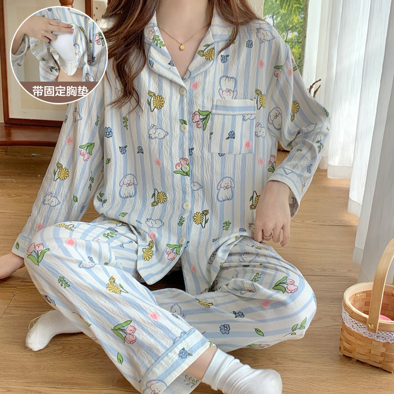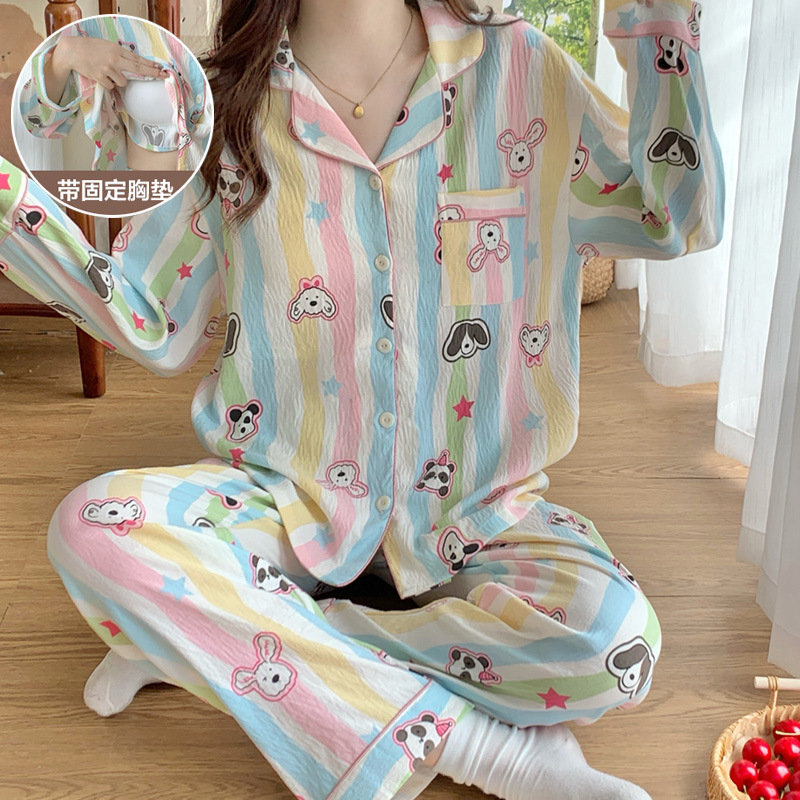 새로운 잠옷 봄과 가을 긴 소매 카디건 가슴 패드 구름 코튼 소녀 귀여운 홈 옷은 도매 크로스-테두리를 착용 할 수 있습니다스토어 가기