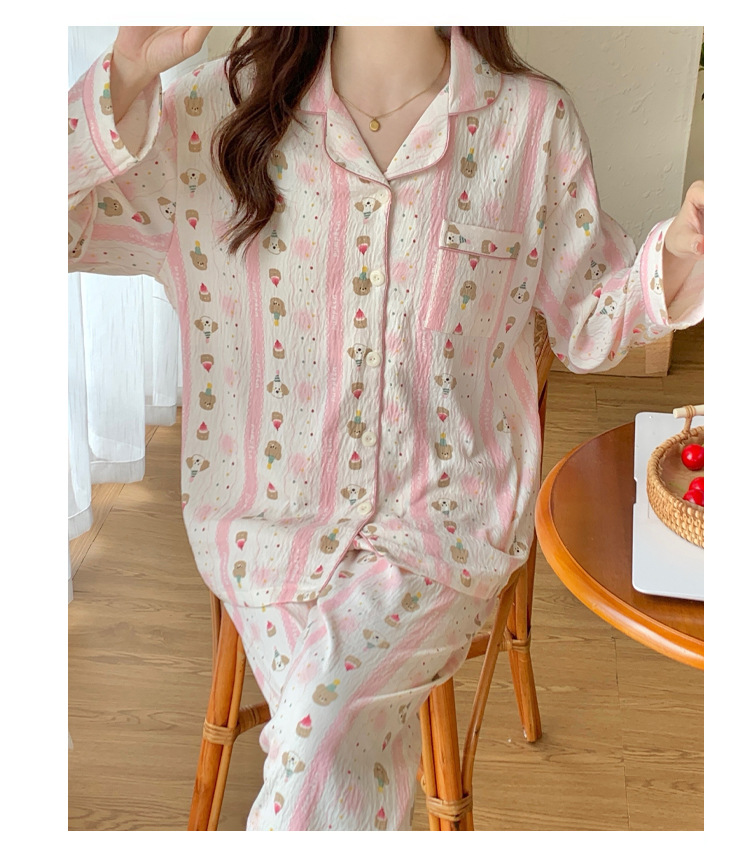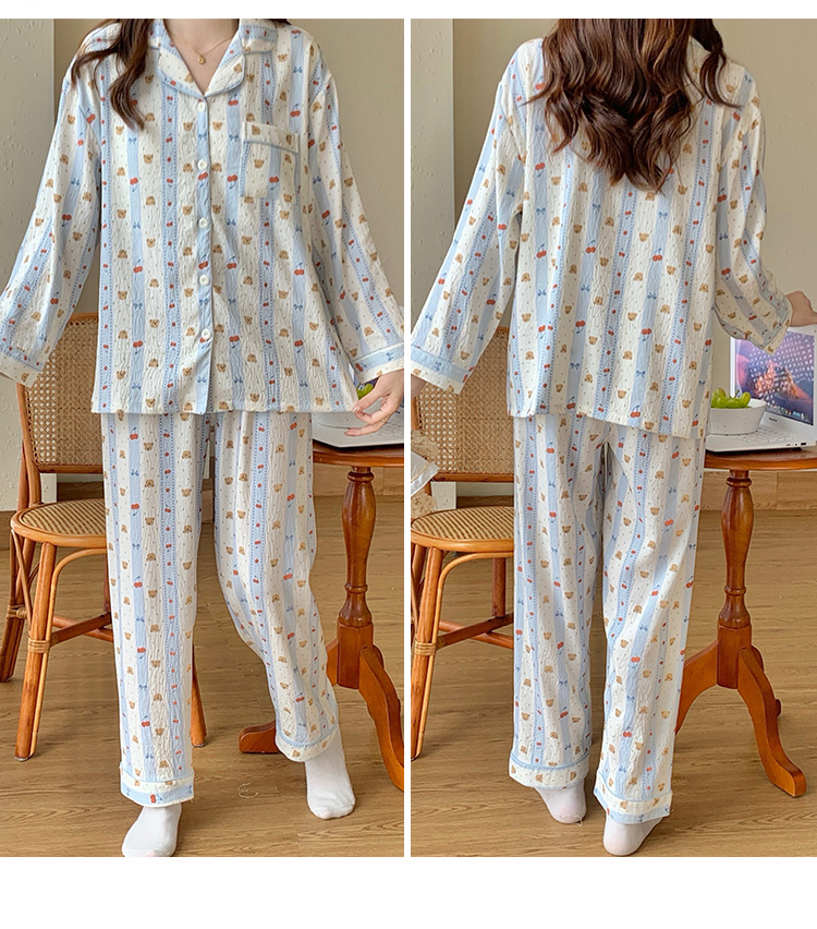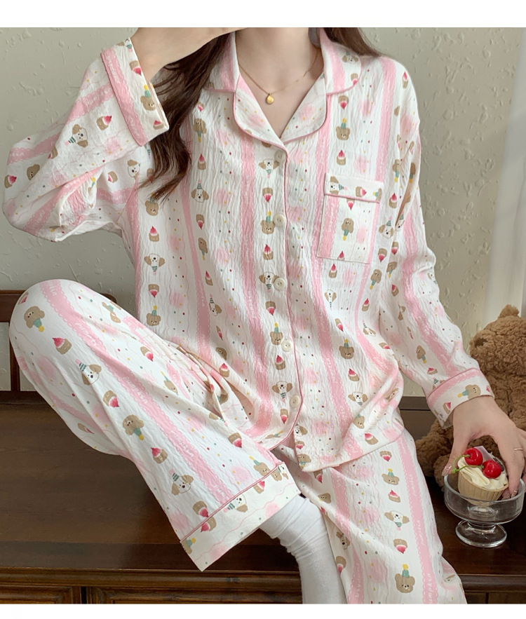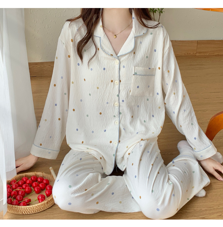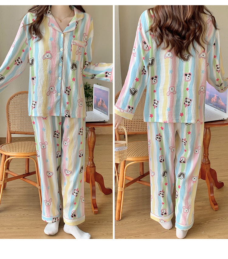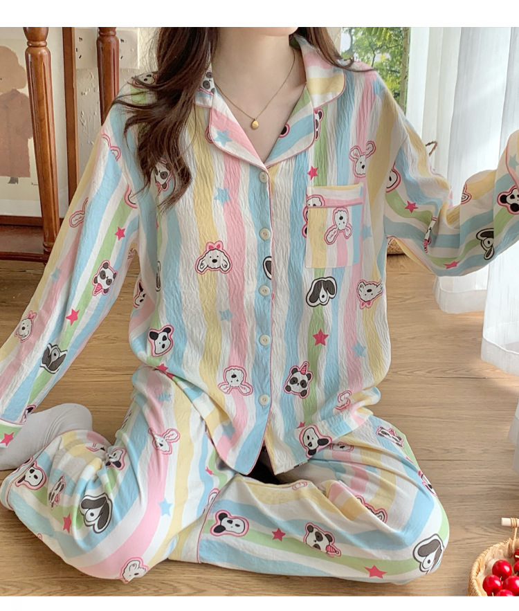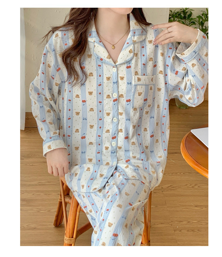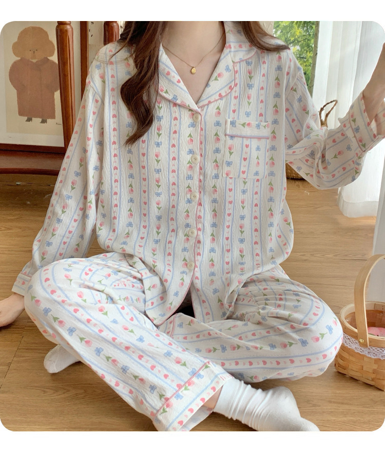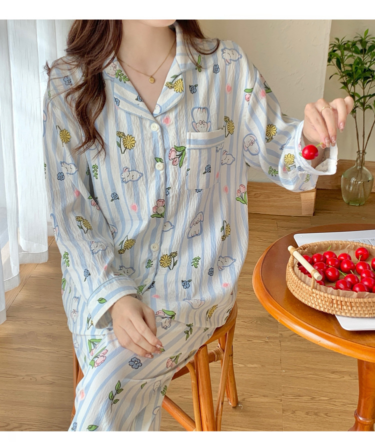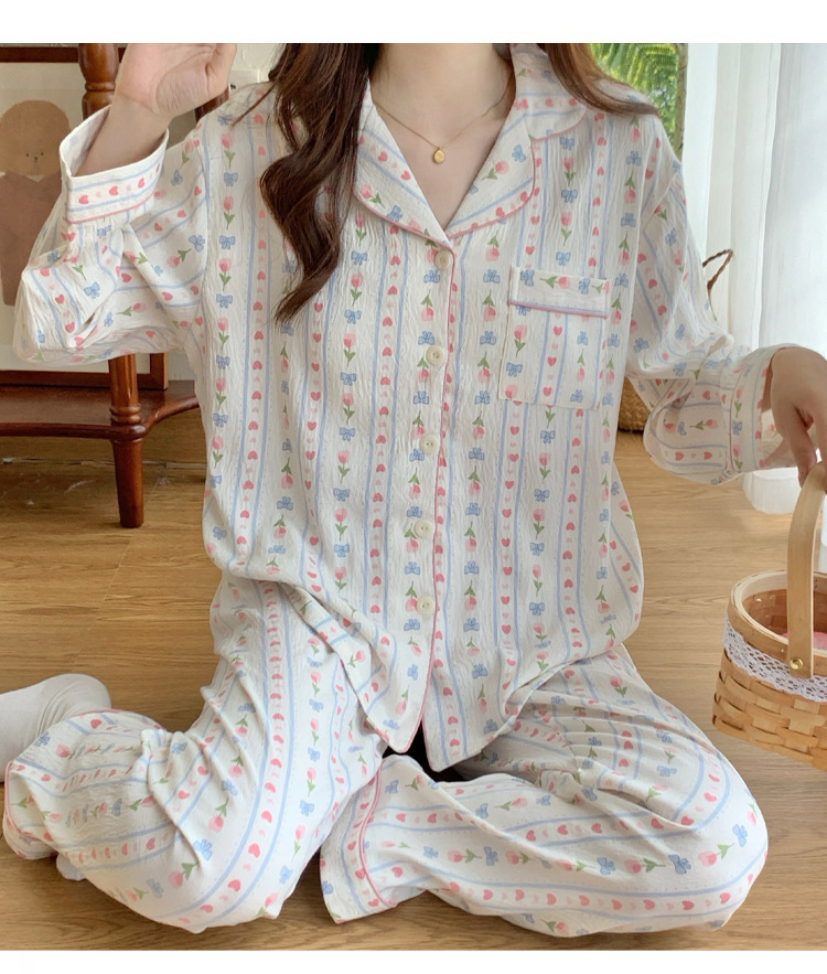 새로운 잠옷 봄과 가을 긴 소매 카디건 가슴 패드 구름 코튼 소녀 귀여운 홈 옷은 도매 크로스-테두리를 착용 할 수 있습니다스토어 가기