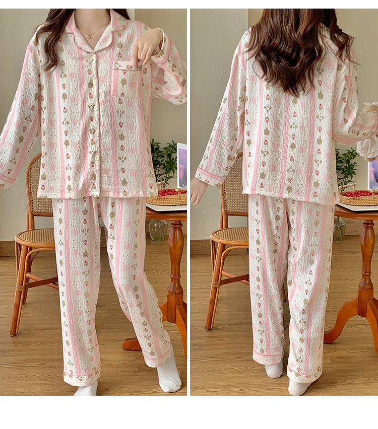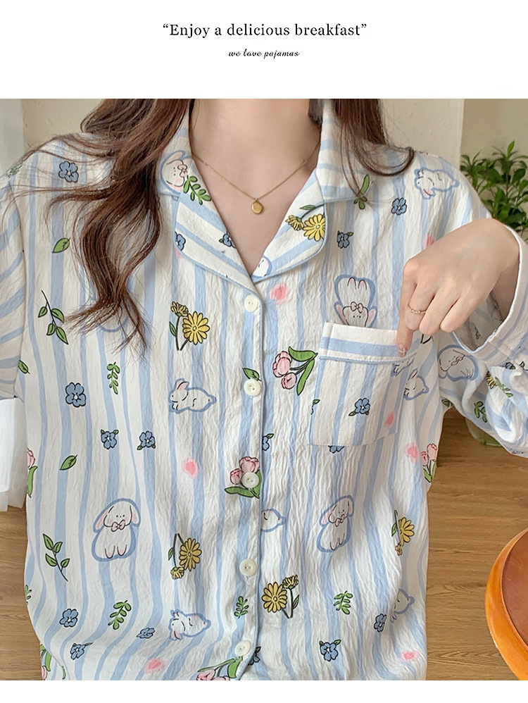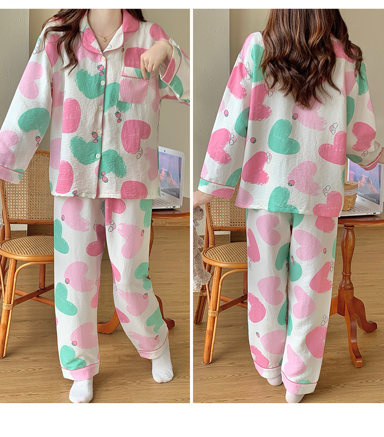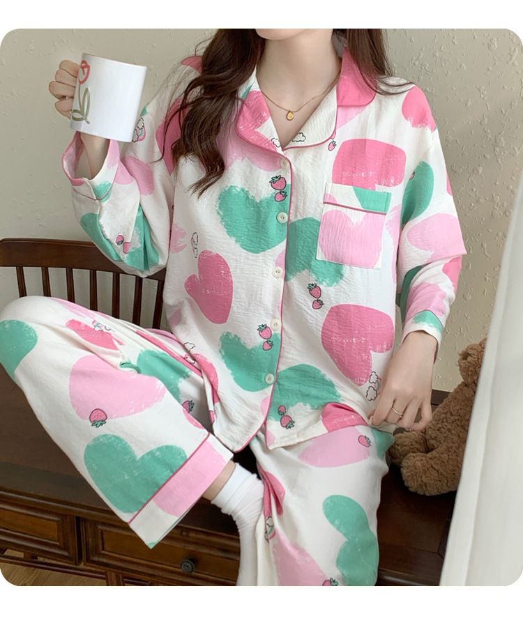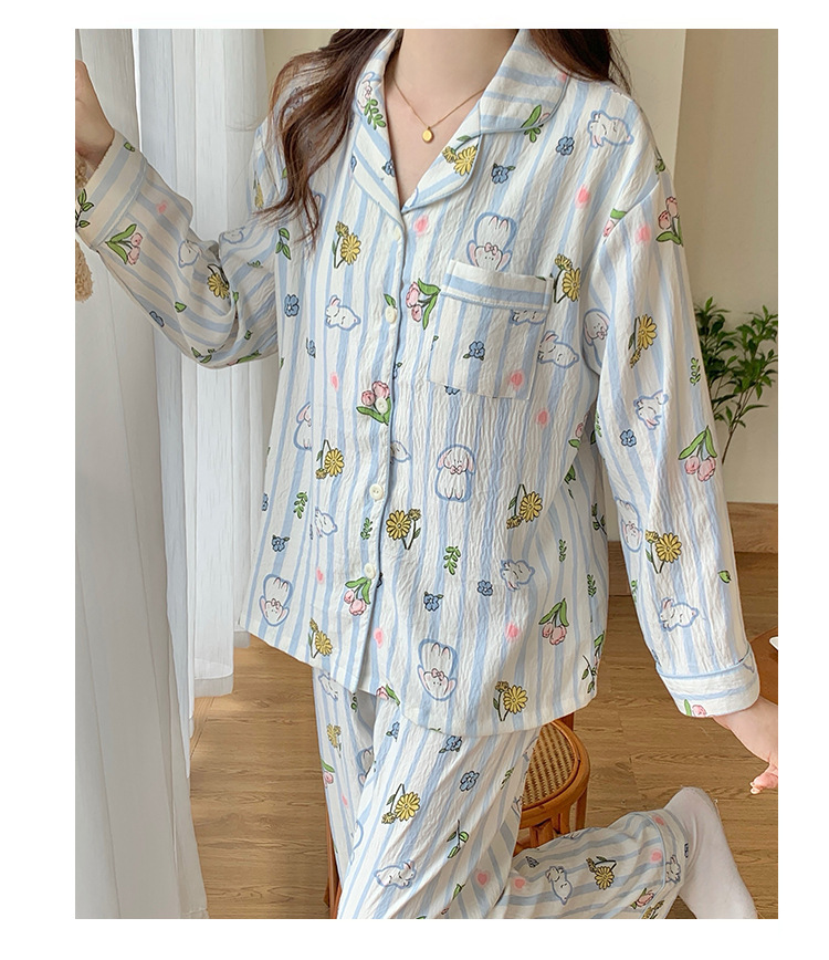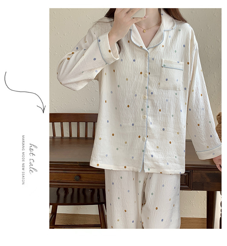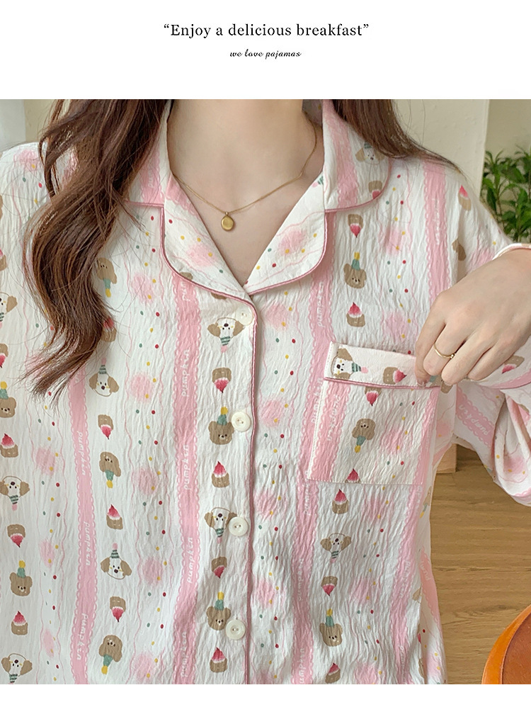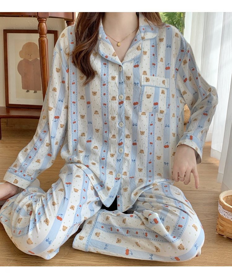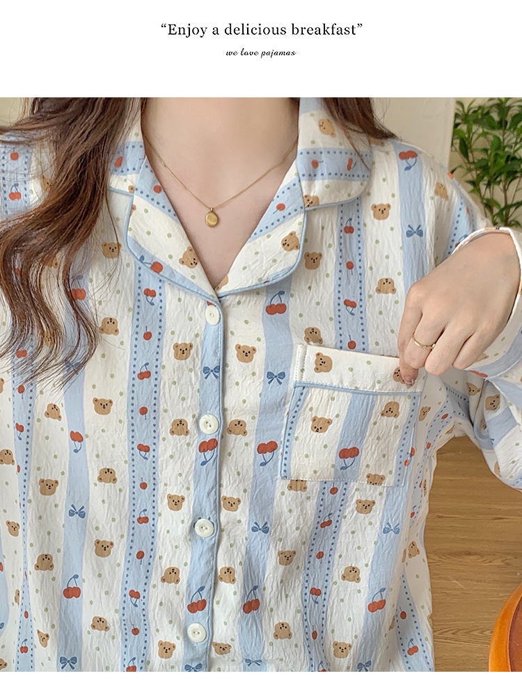 새로운 잠옷 봄과 가을 긴 소매 카디건 가슴 패드 구름 코튼 소녀 귀여운 홈 옷은 도매 크로스-테두리를 착용 할 수 있습니다스토어 가기