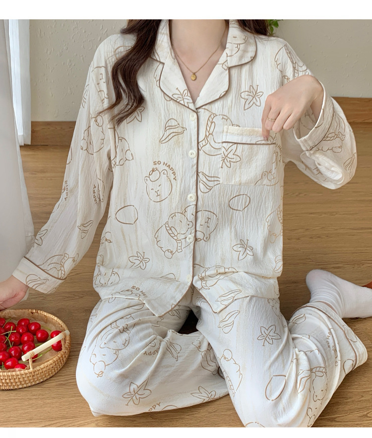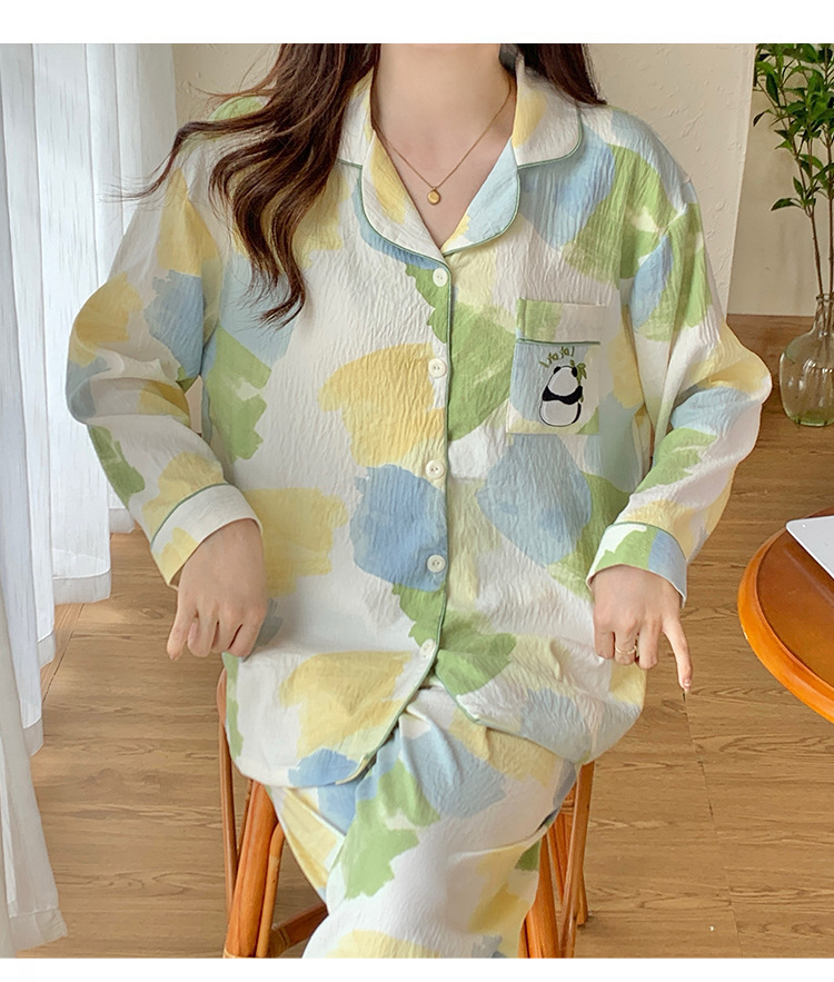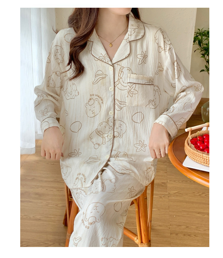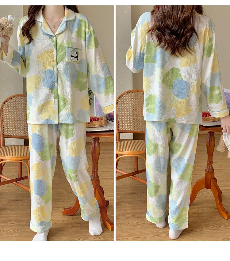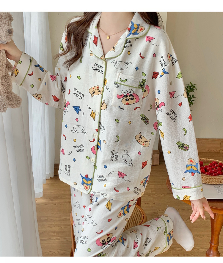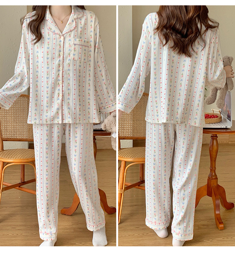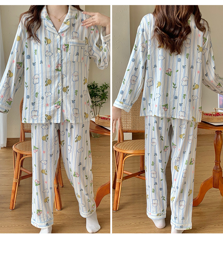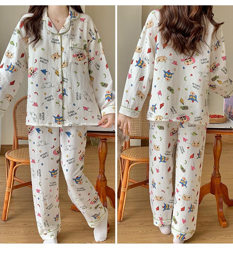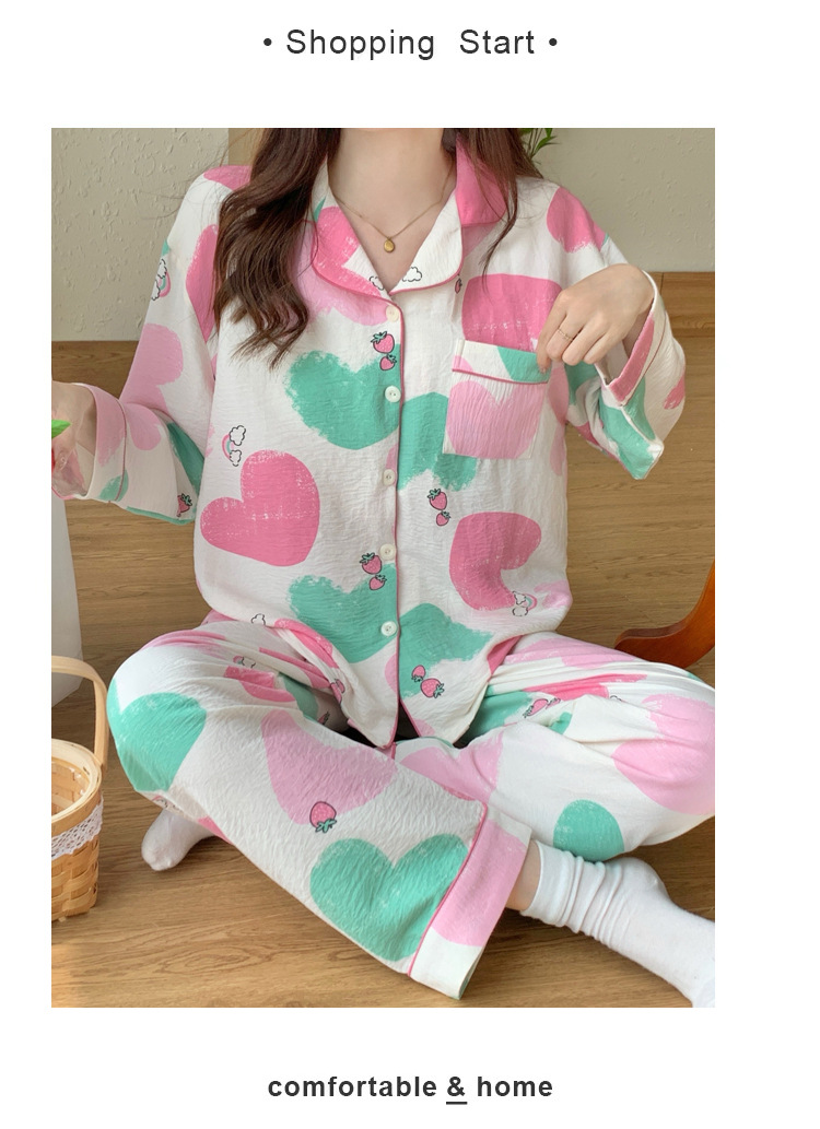 새로운 잠옷 봄과 가을 긴 소매 카디건 가슴 패드 구름 코튼 소녀 귀여운 홈 옷은 도매 크로스-테두리를 착용 할 수 있습니다스토어 가기