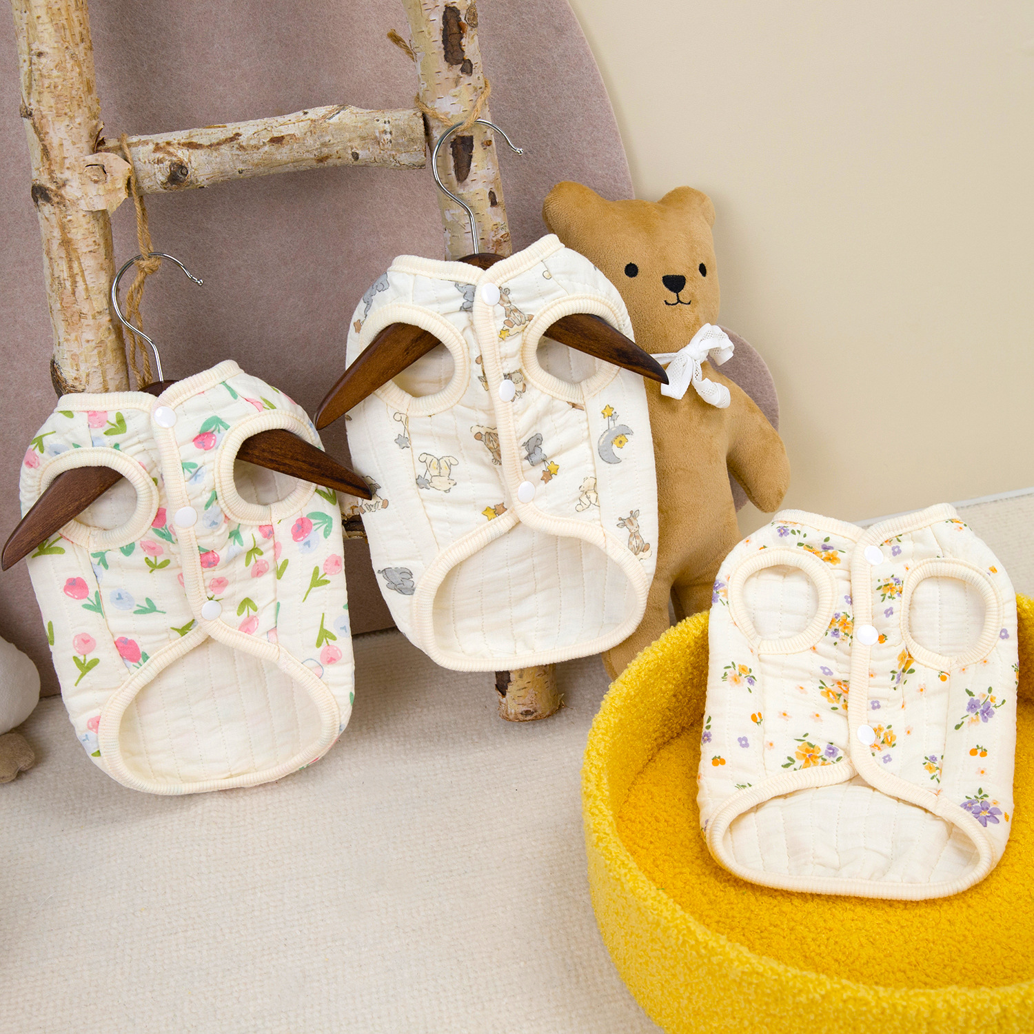 애완 동물 용품 개 옷 고양이 작은 개 제조 업체 도매 편안한 테디 24 더블 거즈 면화 조끼스토어 가기