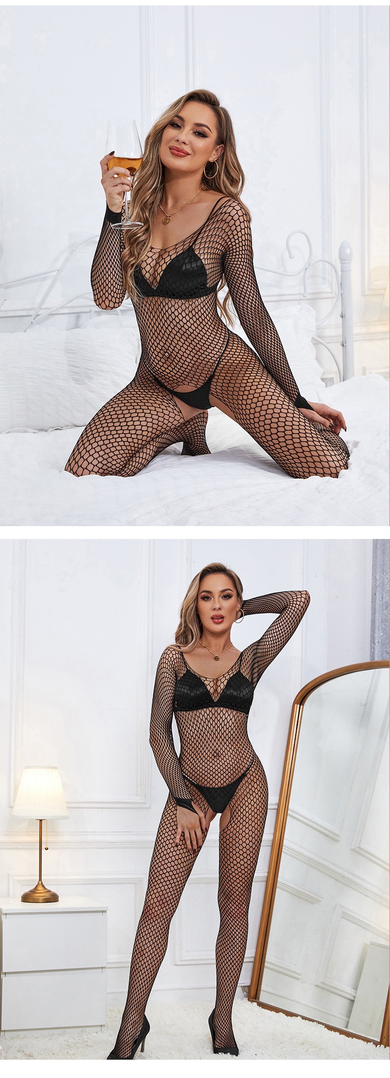 유럽과 미국의 새로운 섹시한 속옷 섹시한 메쉬 점프 수트 오픈 파일 이륙 중공 침대 열정 관점 유혹 양말