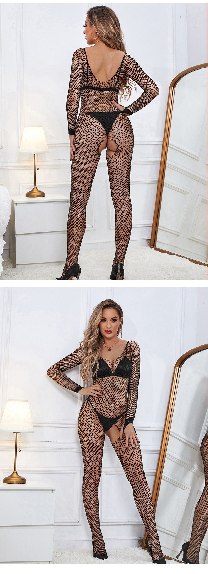 유럽과 미국의 새로운 섹시한 속옷 섹시한 메쉬 점프 수트 오픈 파일 이륙 중공 침대 열정 관점 유혹 양말스토어 가기