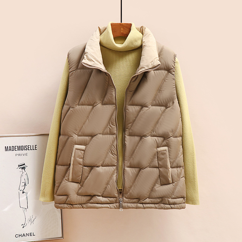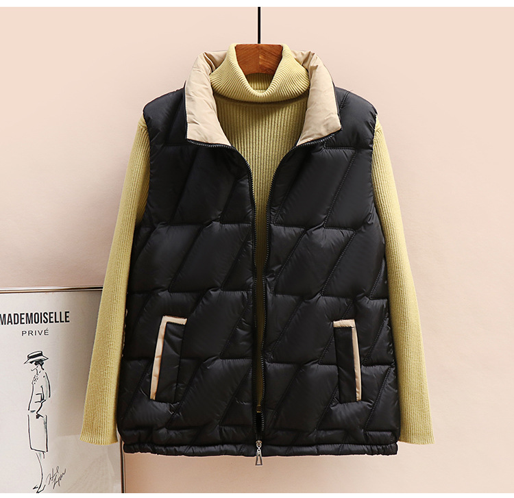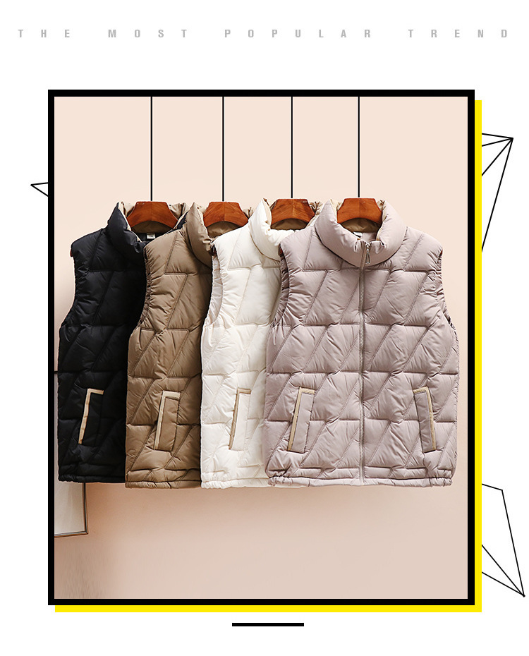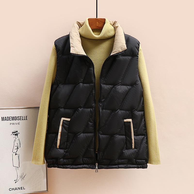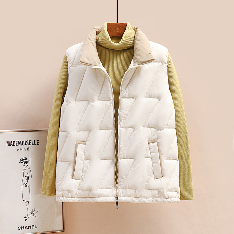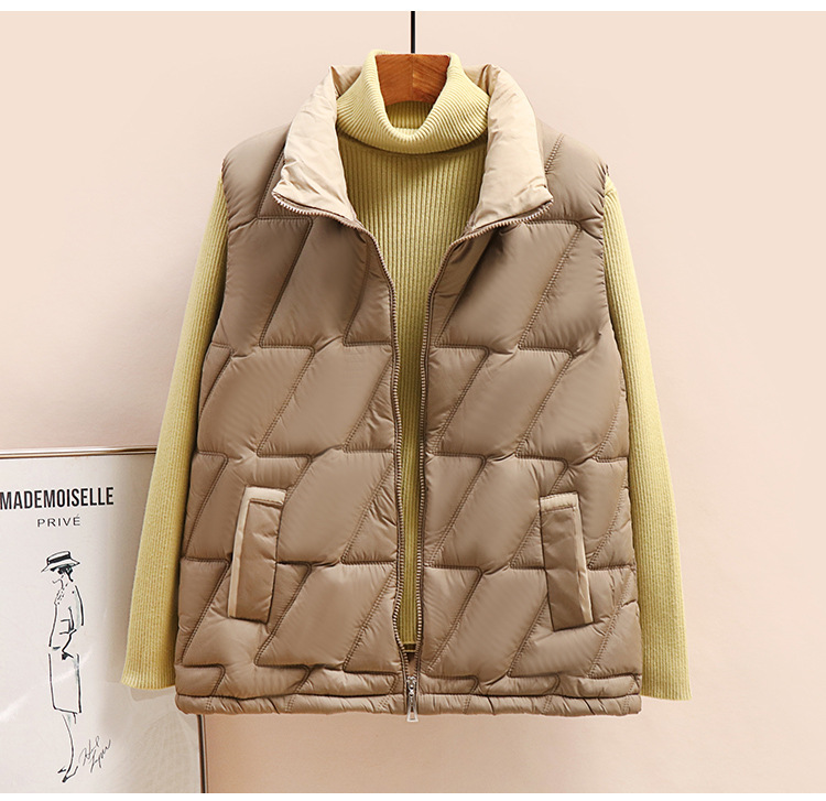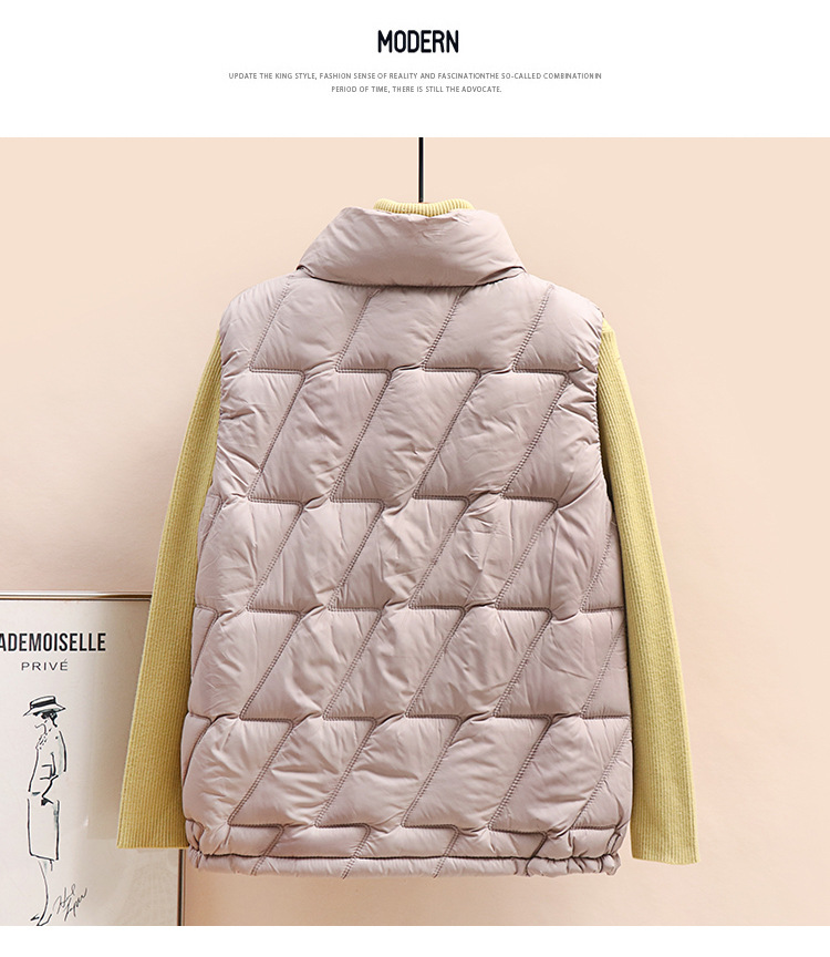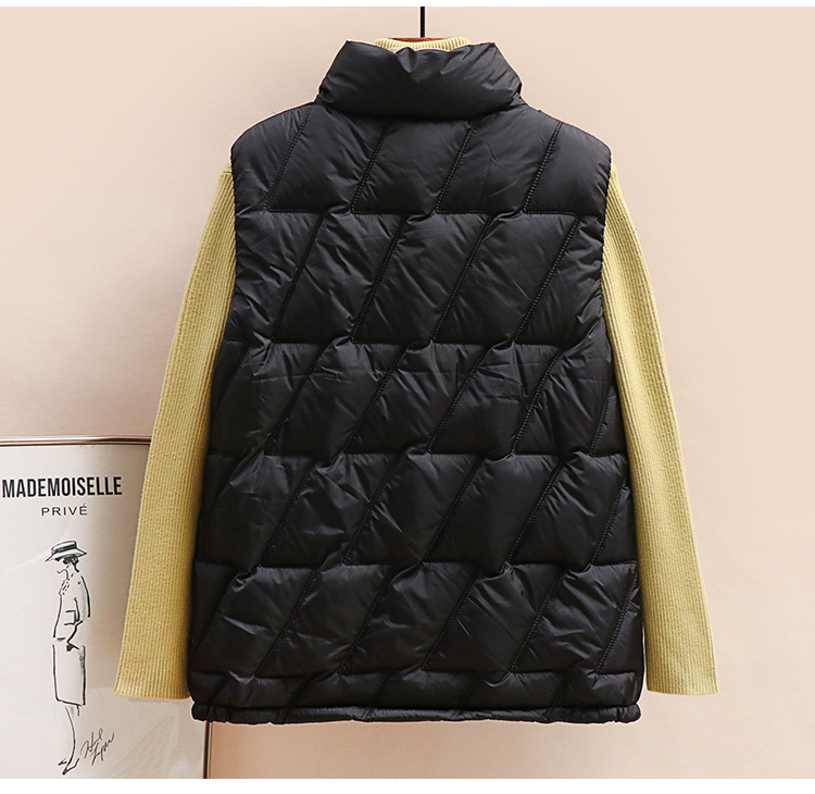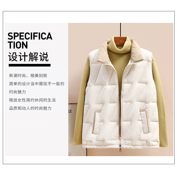 2024 가을과 겨울 새로운 짧은 따뜻한 스탠드 칼라 외국 스타일 조커 다운 코튼 조끼 여성용 플러스 사이즈 양복 조끼