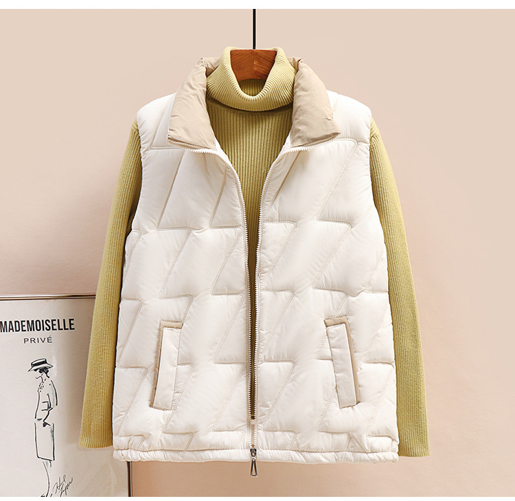 2024 가을과 겨울 새로운 짧은 따뜻한 스탠드 칼라 외국 스타일 조커 다운 코튼 조끼 여성용 플러스 사이즈 양복 조끼스토어 가기