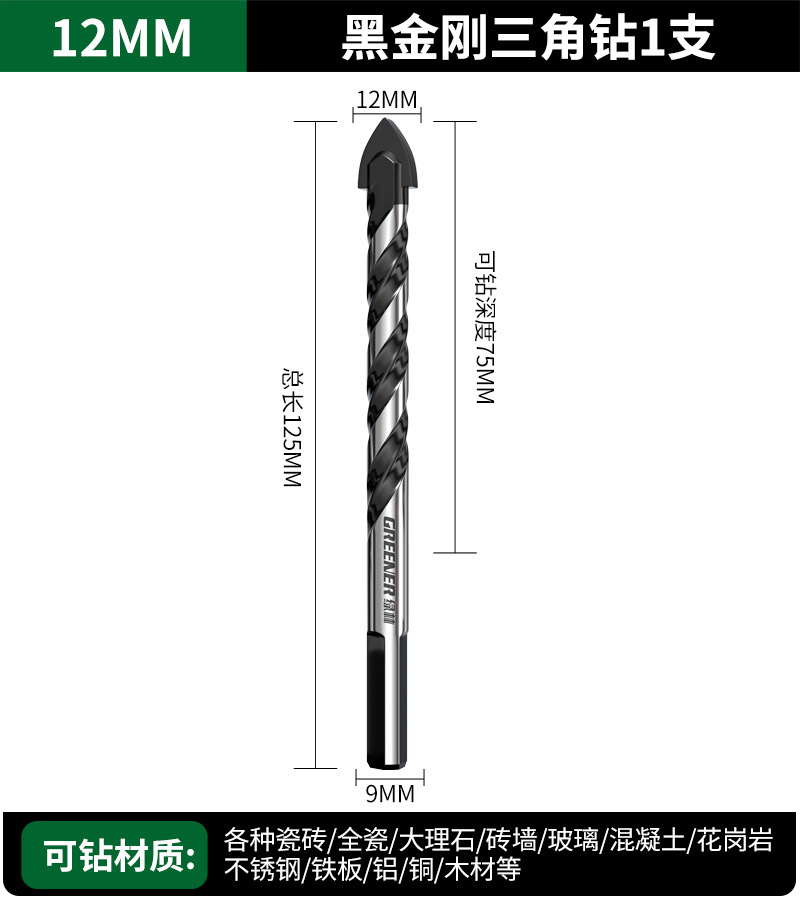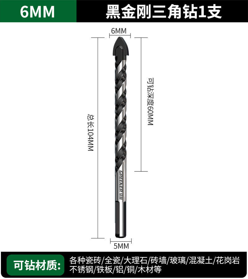 녹색 숲 타일 드릴 콘크리트 드릴링 구멍 오버로드 합금 삼각형 6mm 유리 시멘트 Daquan 손 전기 드릴스토어 가기