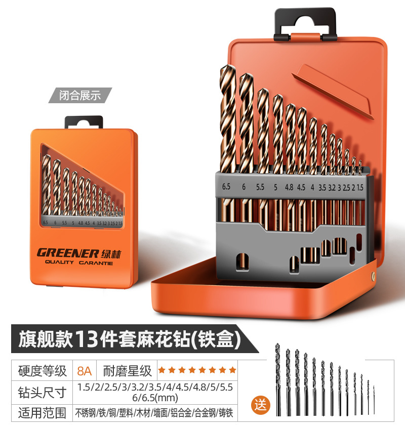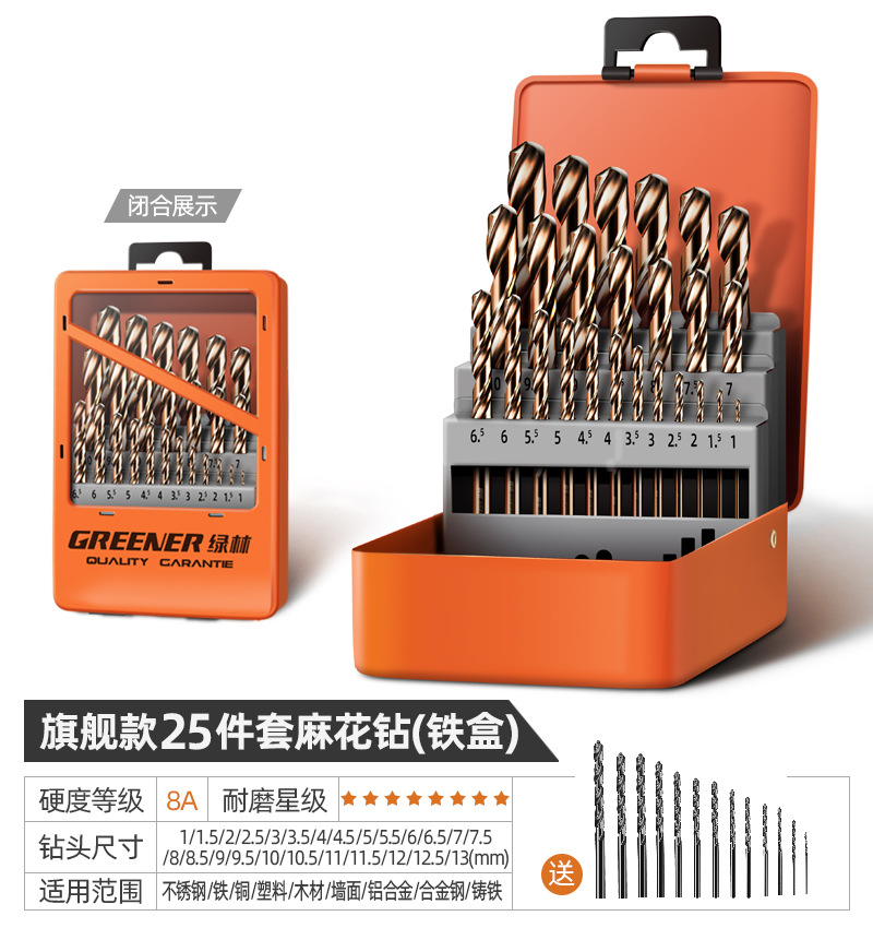 녹색 숲 트위스트 드릴 세트 스테인레스 스틸 합금 강철 높은 경도 코발트 핸드 전기 드릴스토어 가기