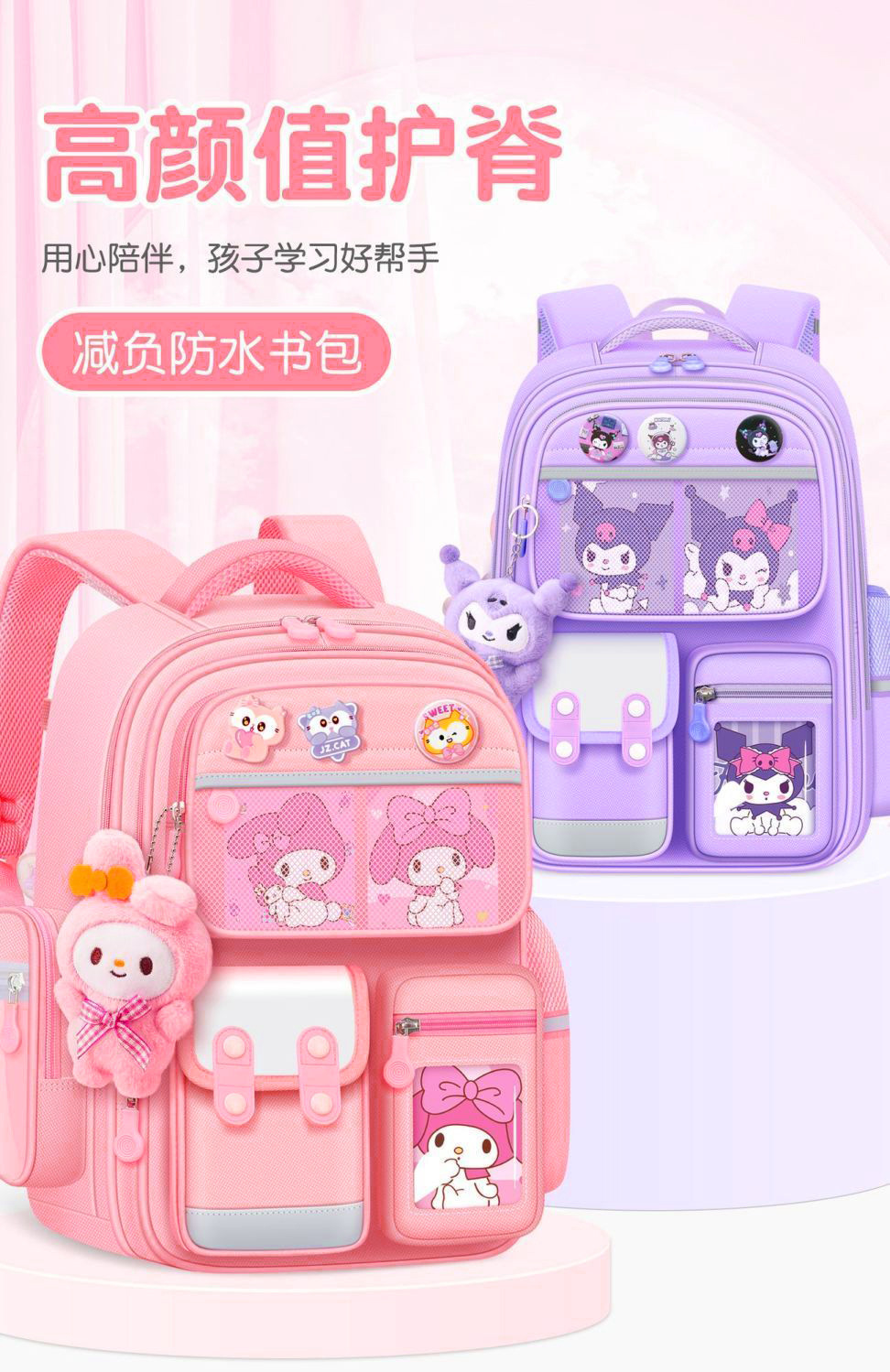 초등학생 책가방 멜로디 척추 보호 어린이 1 학년 3 ~ 5 학년 6 경량 소녀 숄더백 쿨로 미