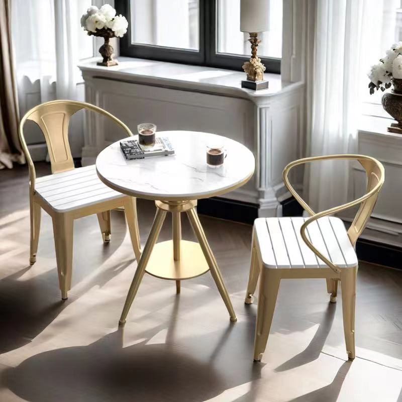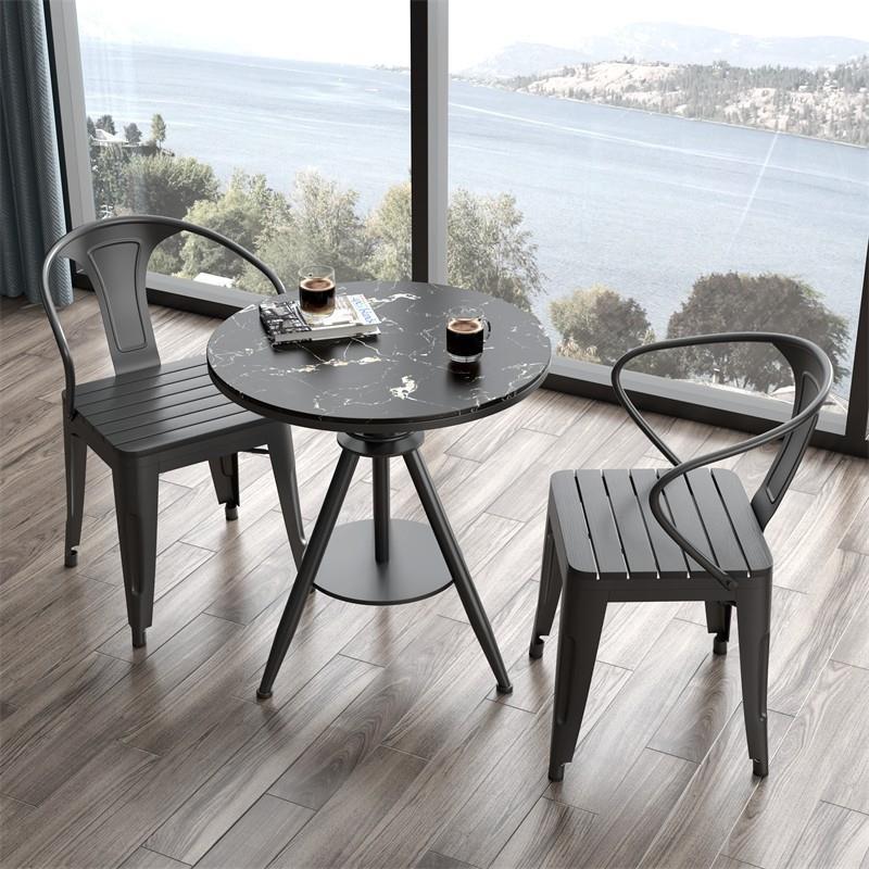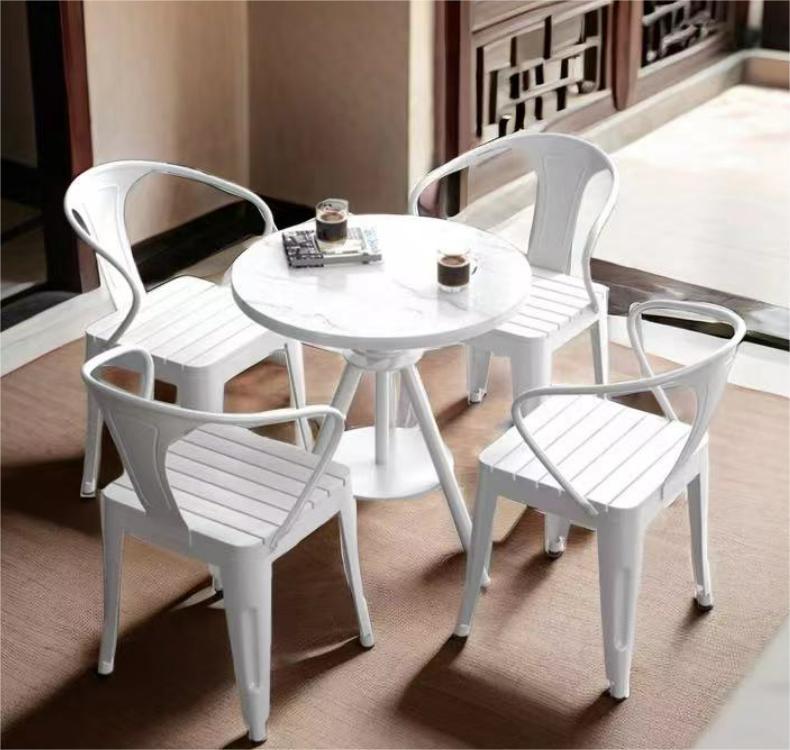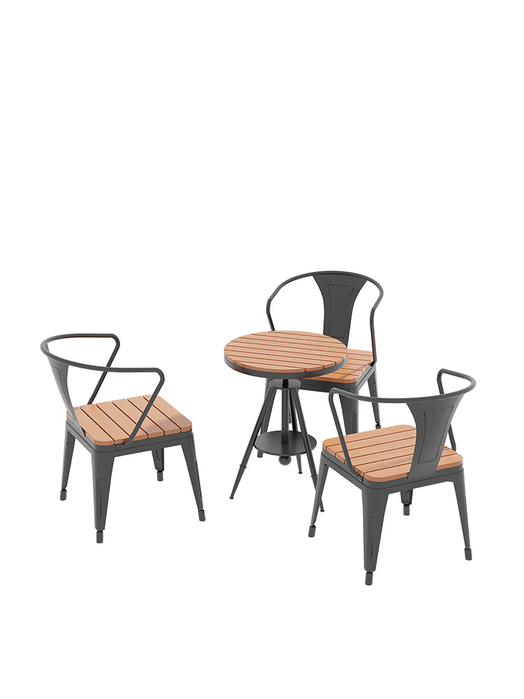 야외 플라스틱 나무 테이블과 의자 안뜰 야외 레저 테이블 정원 우유 차 가게 야외 발코니 카페 테이블과 의자 조합스토어 가기