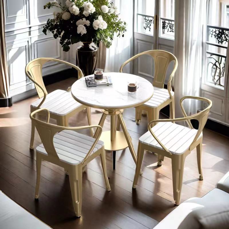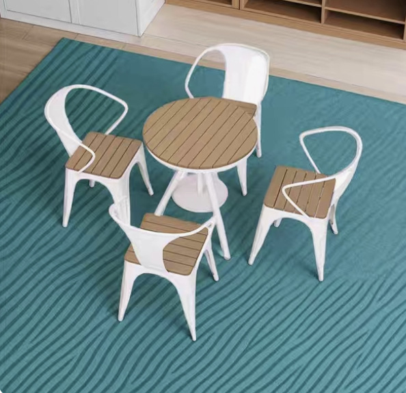 야외 플라스틱 나무 테이블과 의자 안뜰 야외 레저 테이블 정원 우유 차 가게 야외 발코니 카페 테이블과 의자 조합