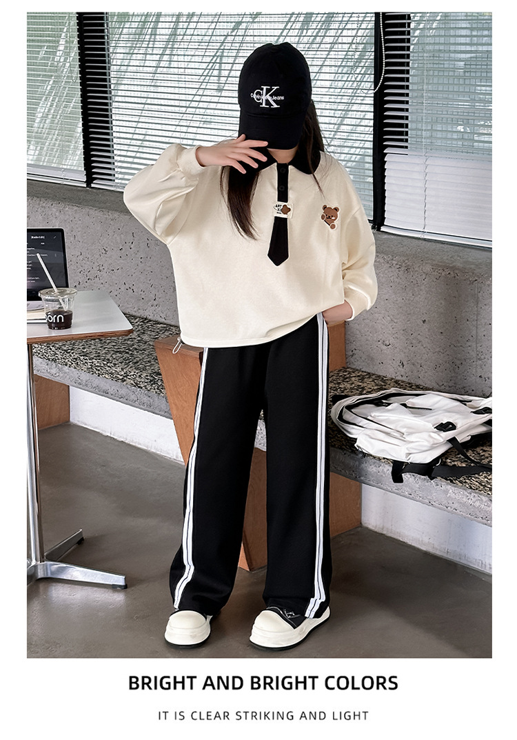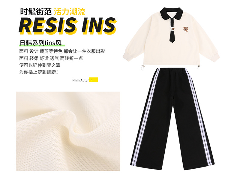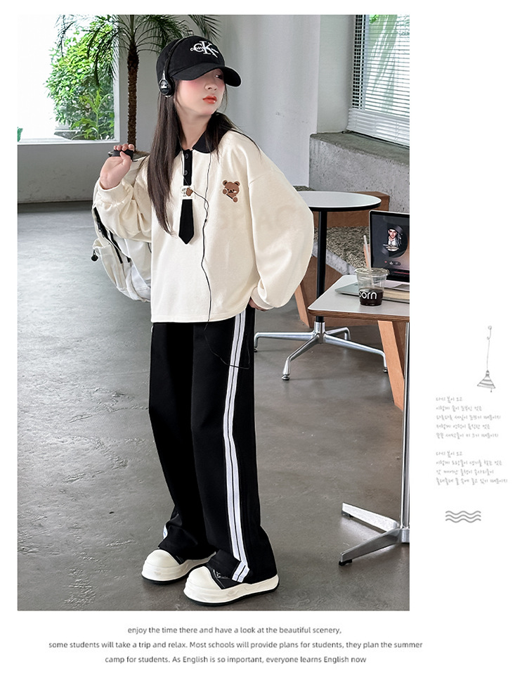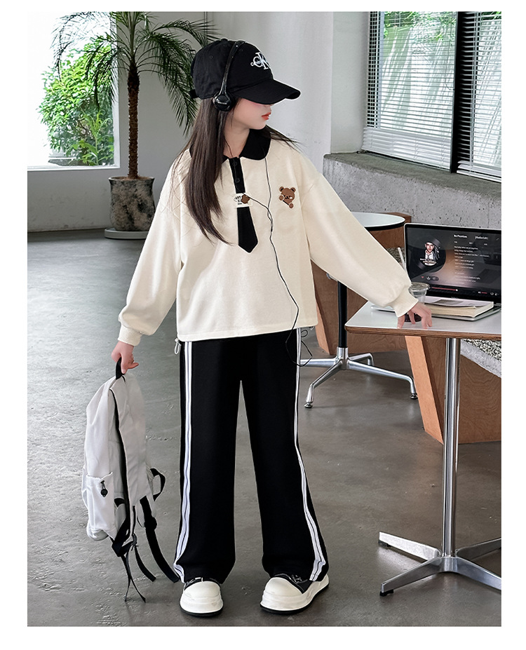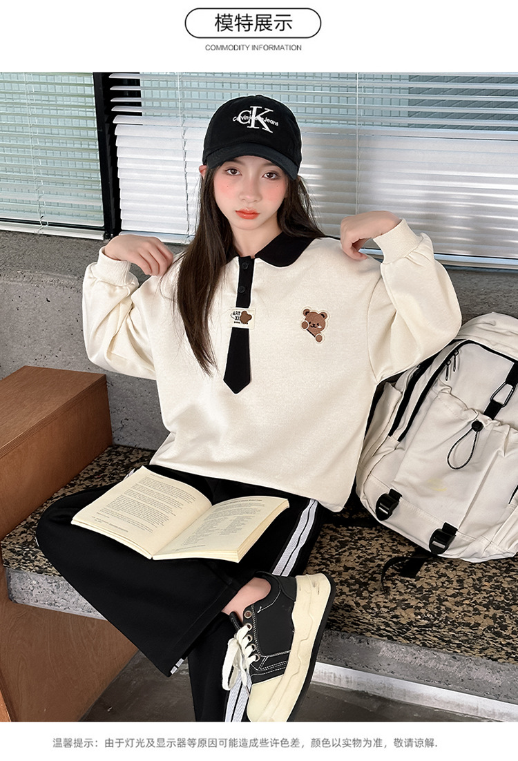 어린이 의류 2024 여자 곰 폴로 세트 가을 새로운 한국 스타일 만화 투피스 대외 무역 도매 조수