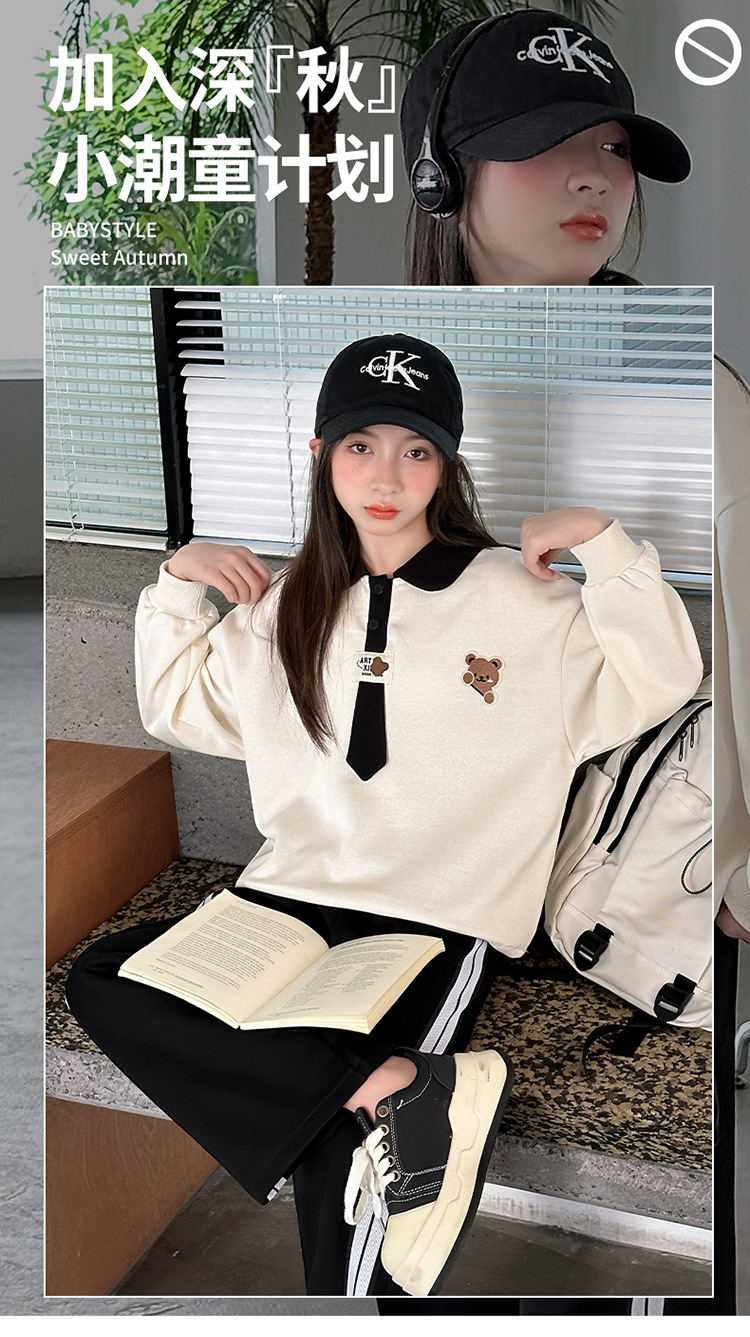 어린이 의류 2024 여자 곰 폴로 세트 가을 새로운 한국 스타일 만화 투피스 대외 무역 도매 조수스토어 가기