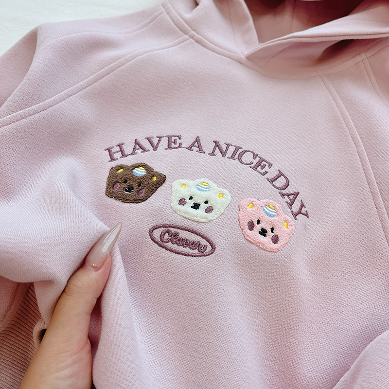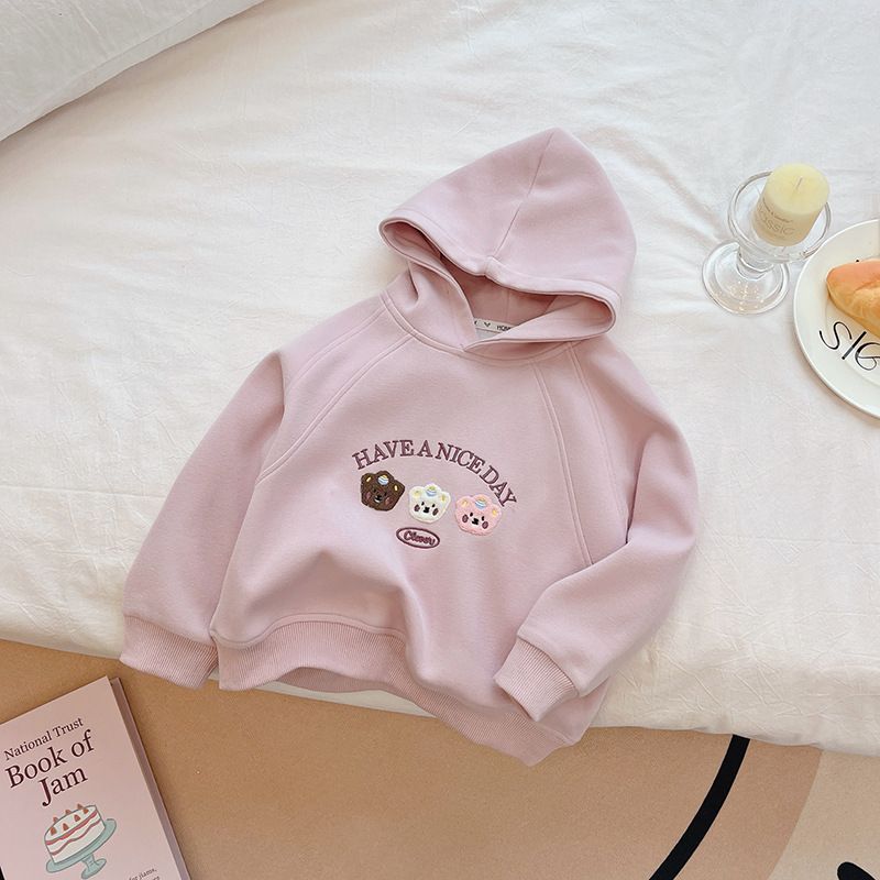 소녀 가을 새로운 후드 스웨트 셔츠 패션 보라색 외부 착용베이스 2024 긴 소매 만화 여성의 보물 스웨트 셔츠 아기