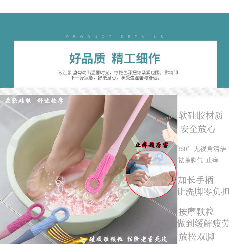 발 세척 브러쉬 발가락 바느질 부드러운 접착제 브러시 클리너 긴 손잡이 부드러운 브러시 각질 제거 피부 커팅 브러시 발 문지르는 보드 발 부드러운 머리카락스토어 가기