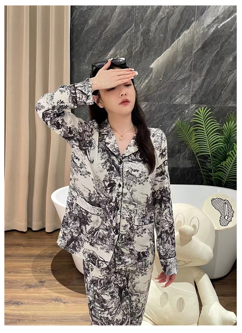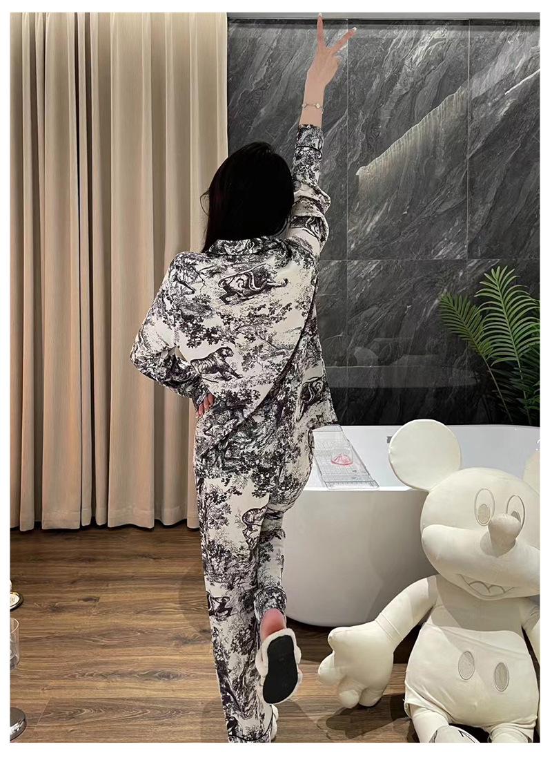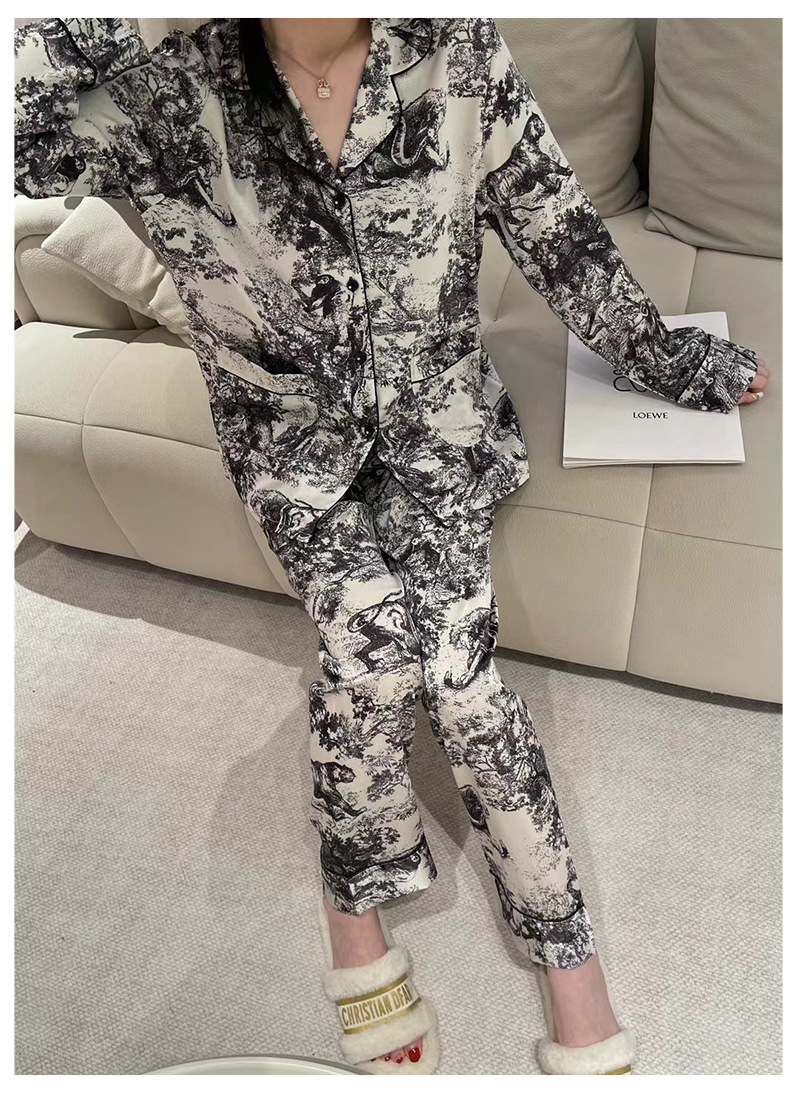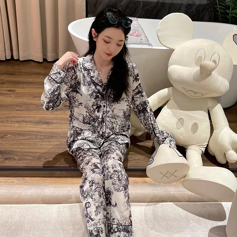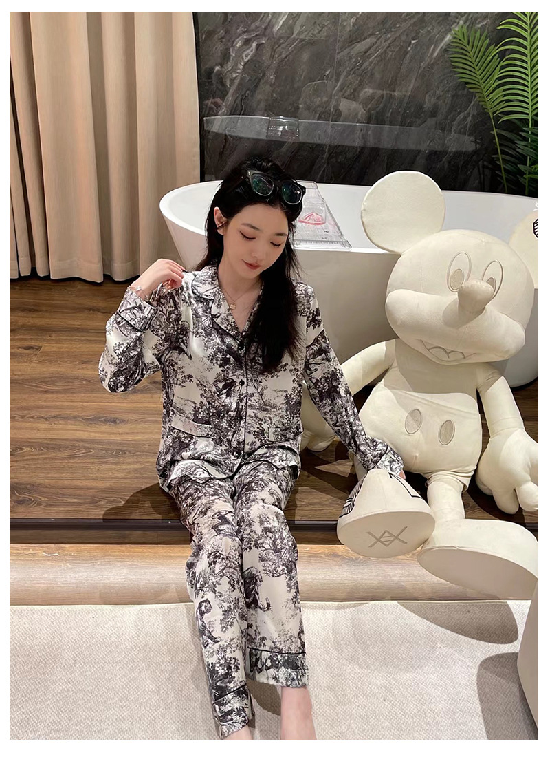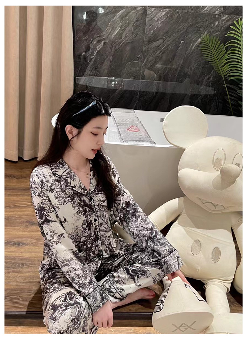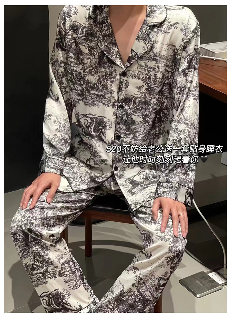 D 가족 높은 럭셔리 커플 잠옷 여성 팬 같은 스타일 흑백 잉크 남성 아이스 실크 홈 의류 세트 착용스토어 가기