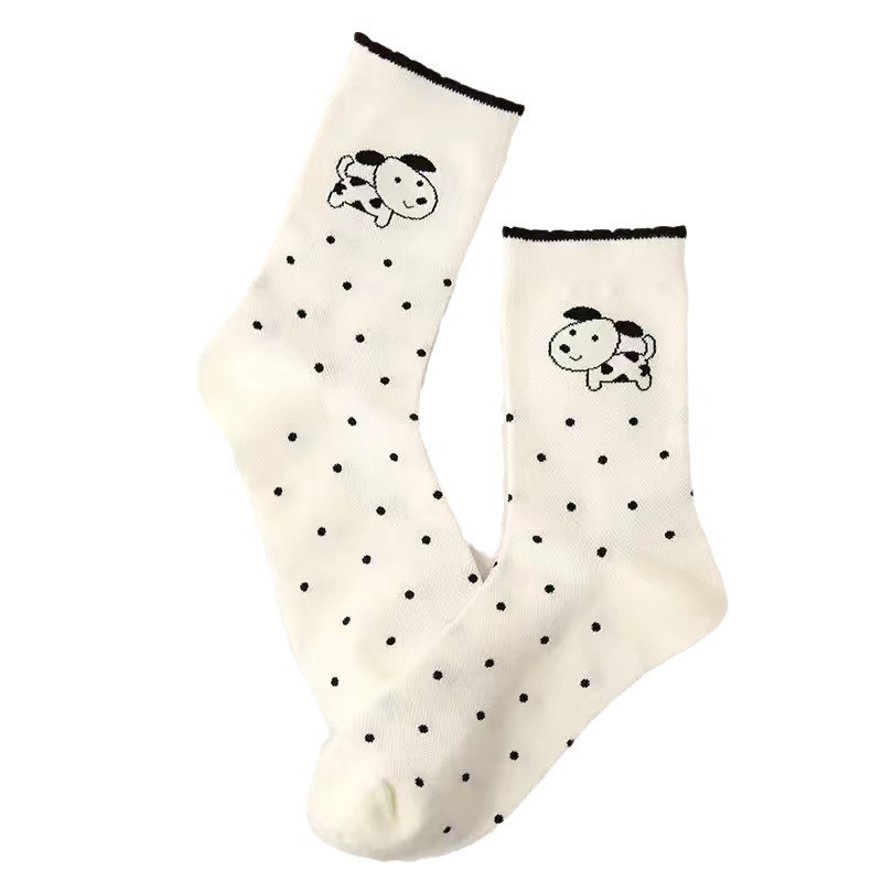 화이트 강아지 양말 여성의 봄과 여름 귀여운 일본 스타일 중간 길이 양말 메쉬 통기성 만화 스타킹 여름 얇은 여성