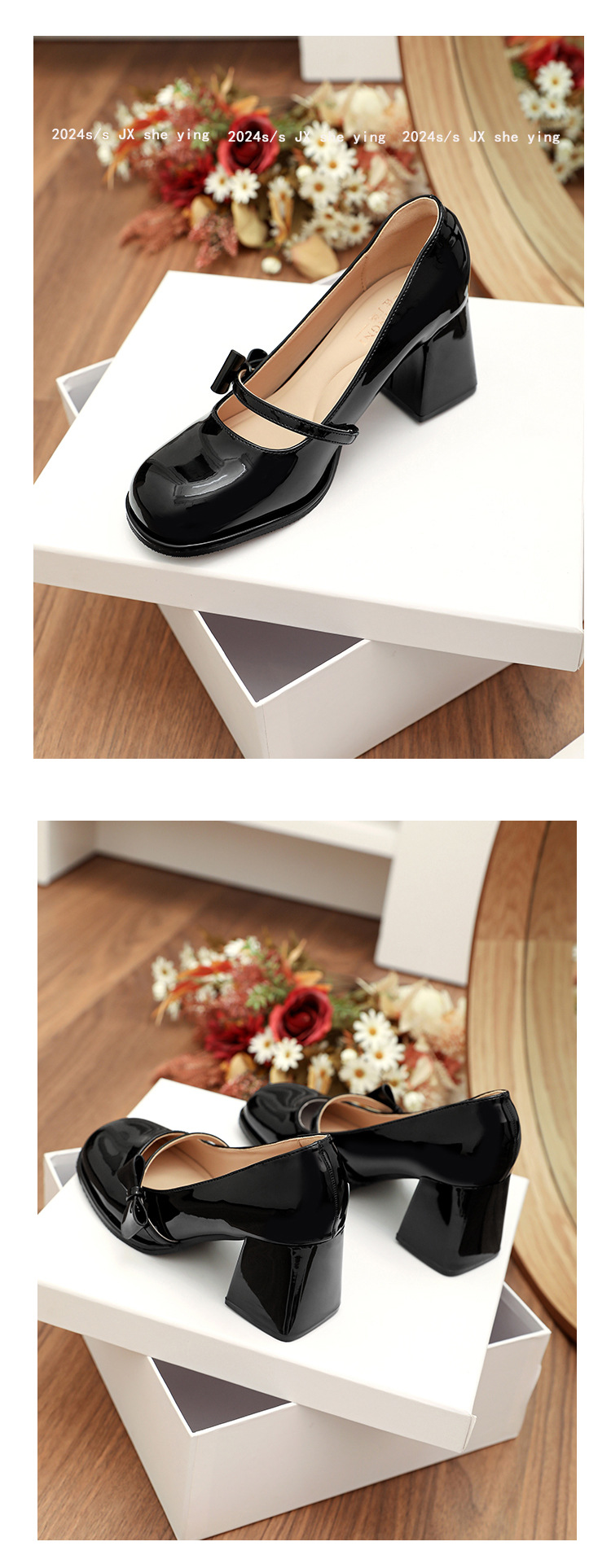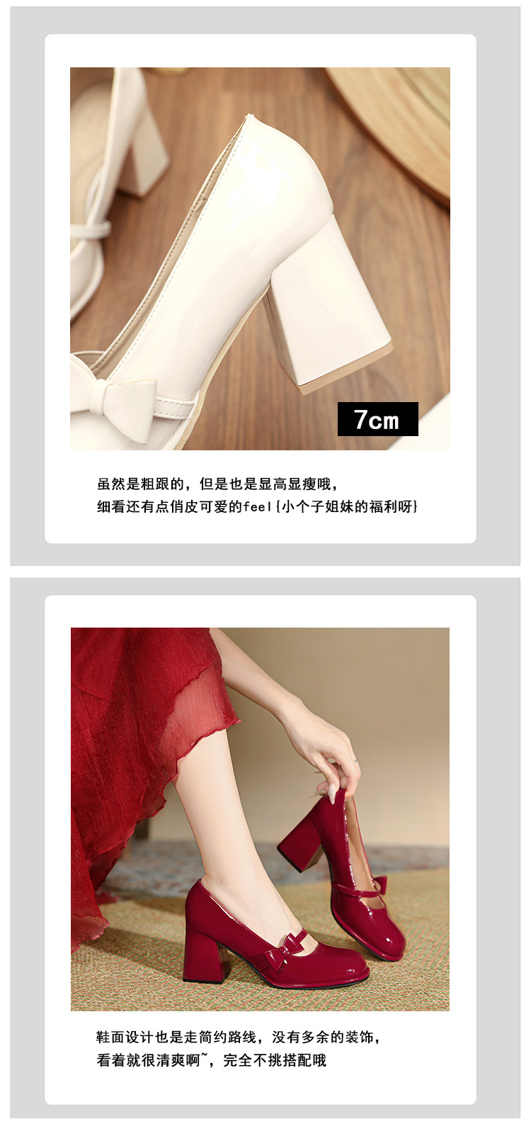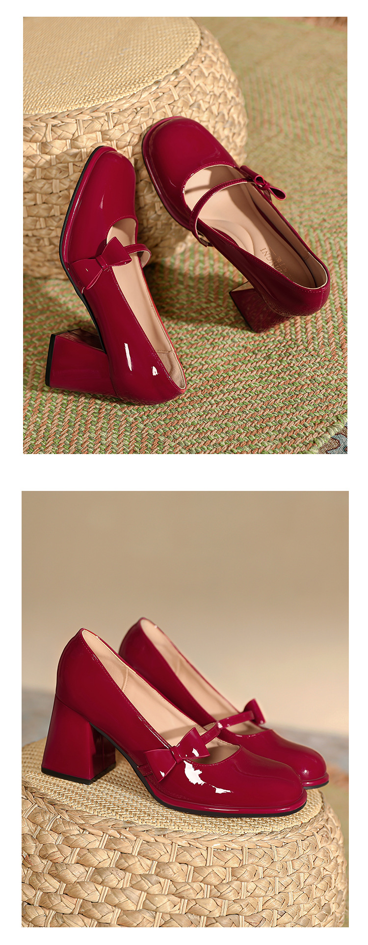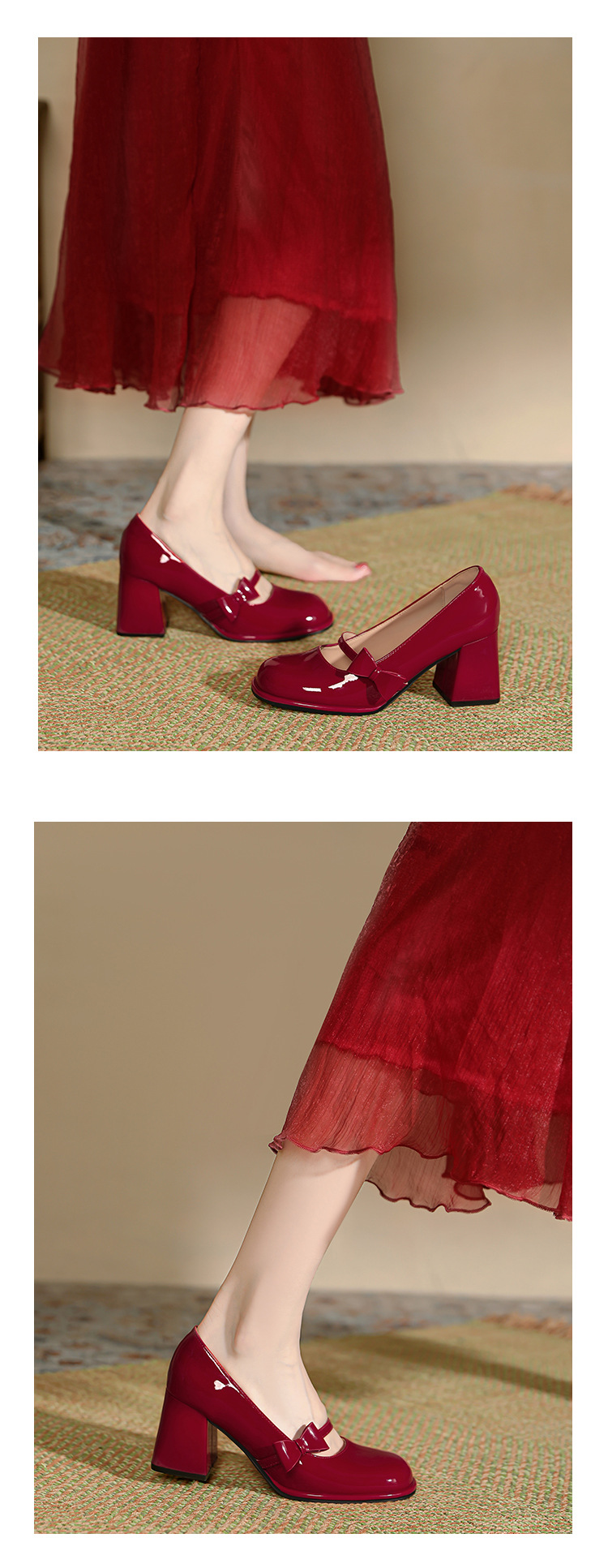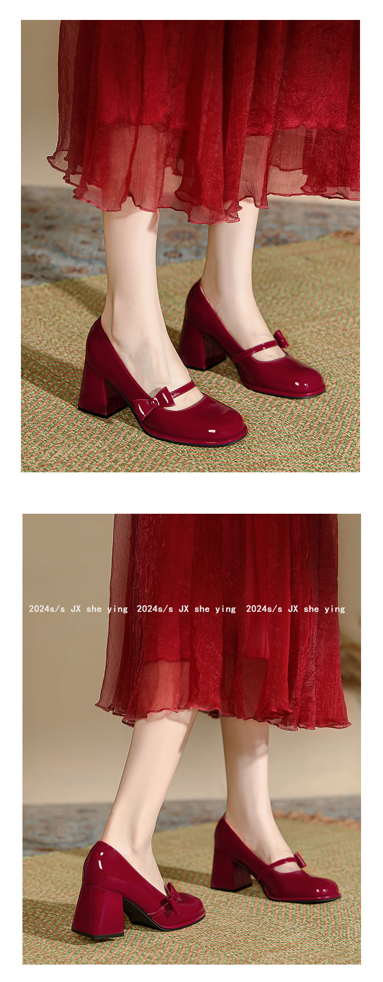 MZ-9 레드 메리 제인 신발 여성 스몰 사이즈 두꺼운 발 뒤꿈치 둥근 머리 결혼식 신발 기질 플러스 사이즈 뚱뚱한 발 폭 41 43 4스토어 가기