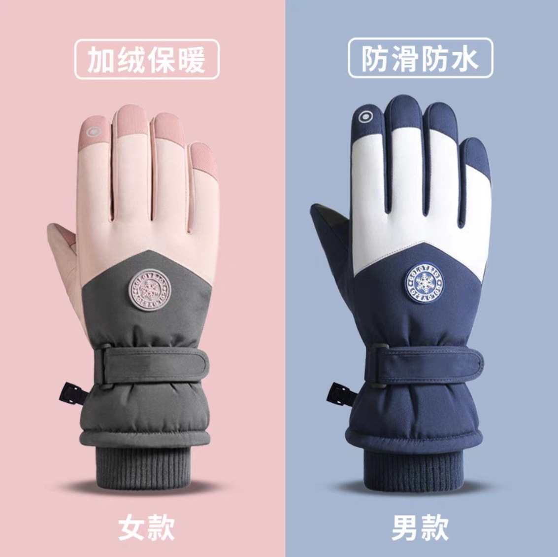 남성과 여성을위한 전문 스키 장갑 가을과 겨울 야외 사이클링 스키 따뜻한 기모 두꺼운 방수 터치 스크린 스포츠 장갑