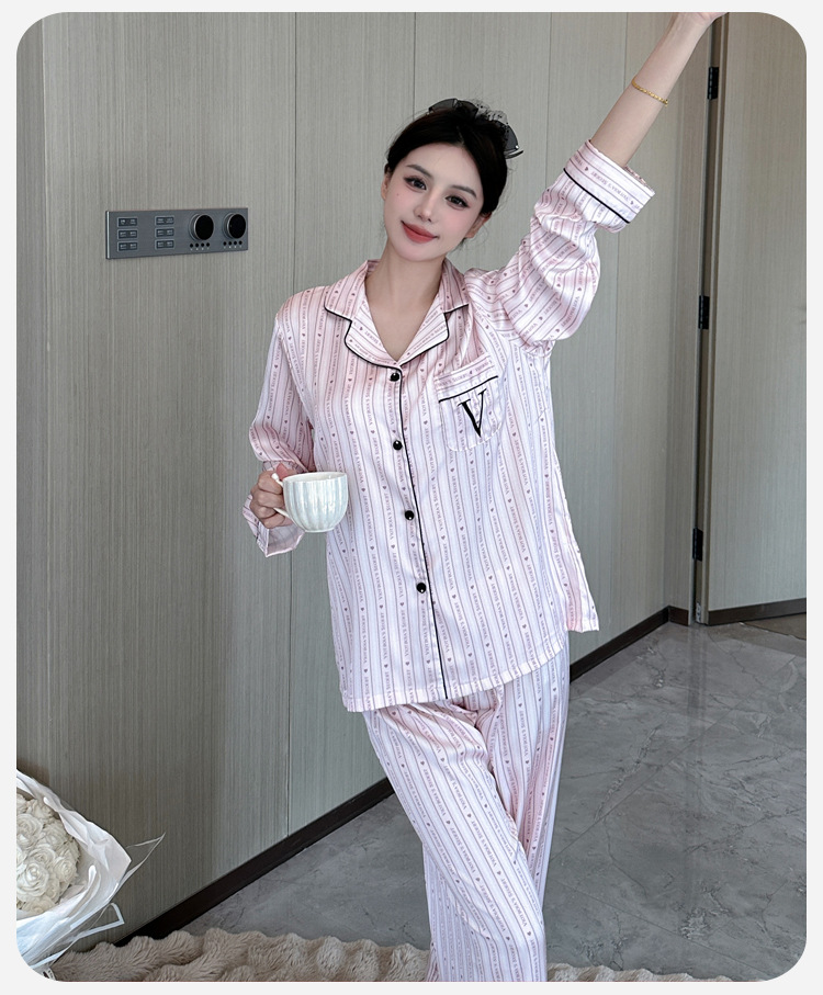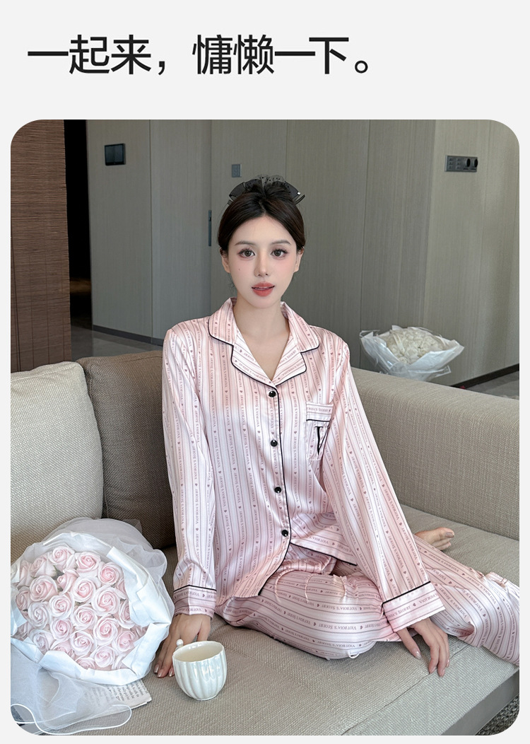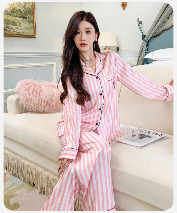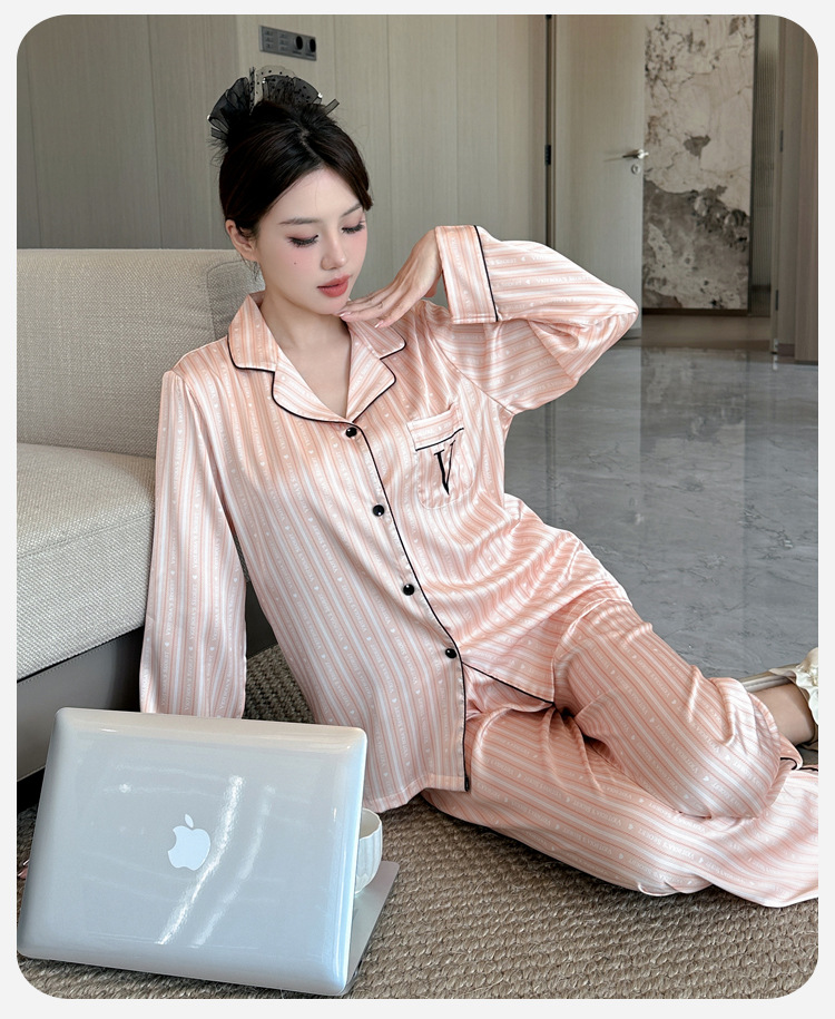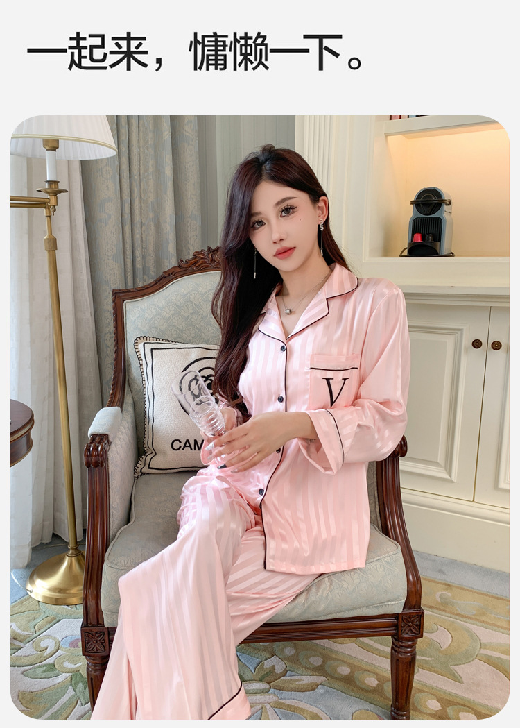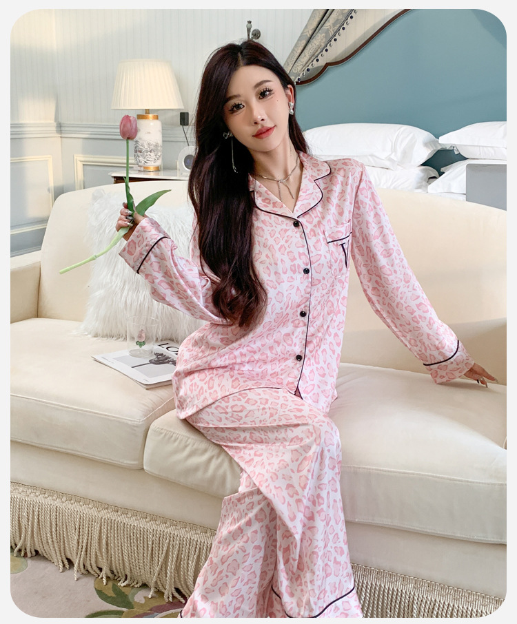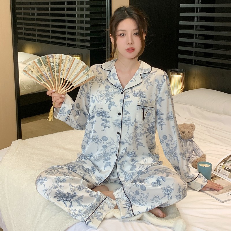 봄과 가을 새로운 여성의 얼음 실크 얇은 잠옷 긴팔 양복 물광택 실크 가정 의류 Пижама스토어 가기