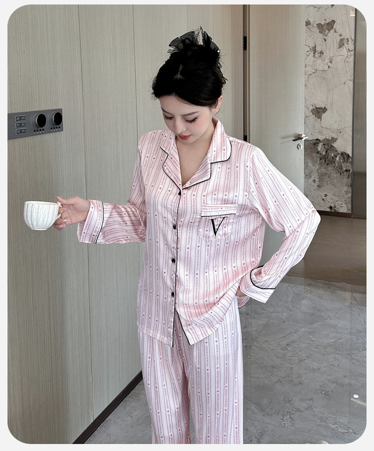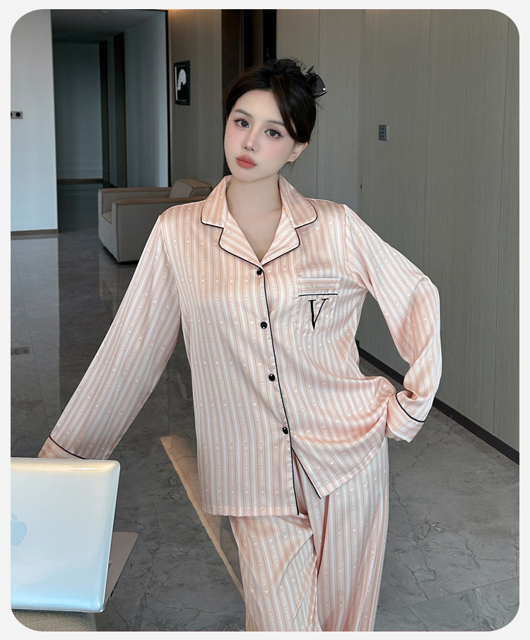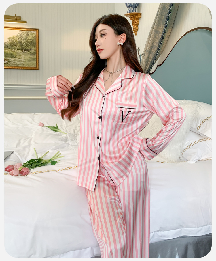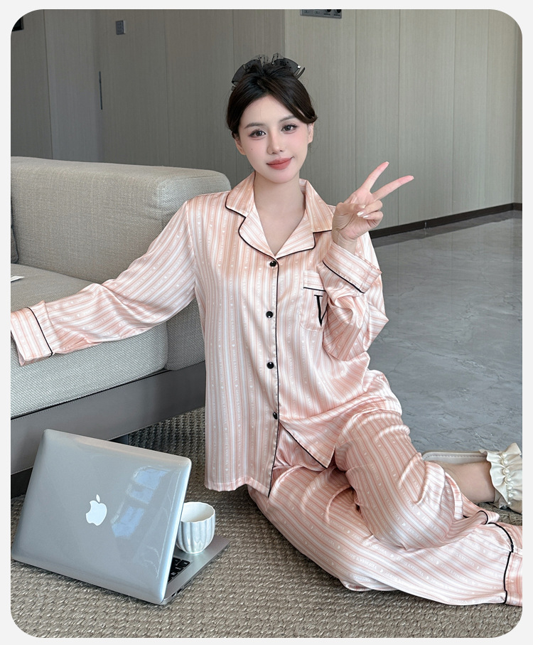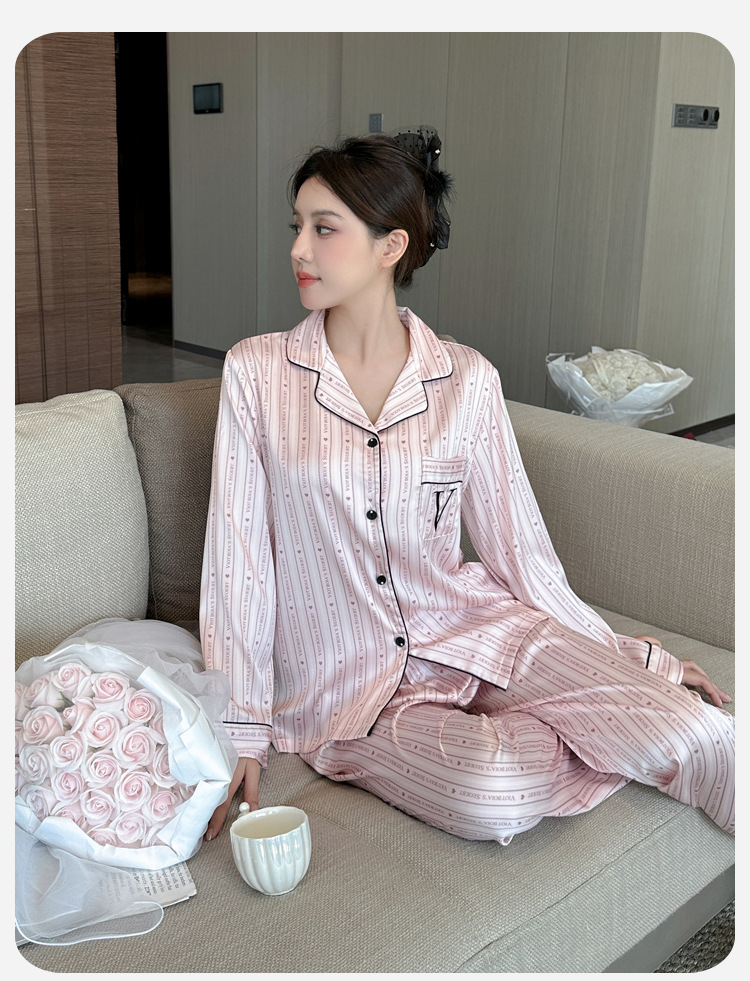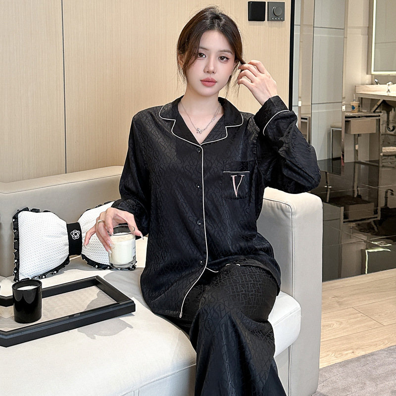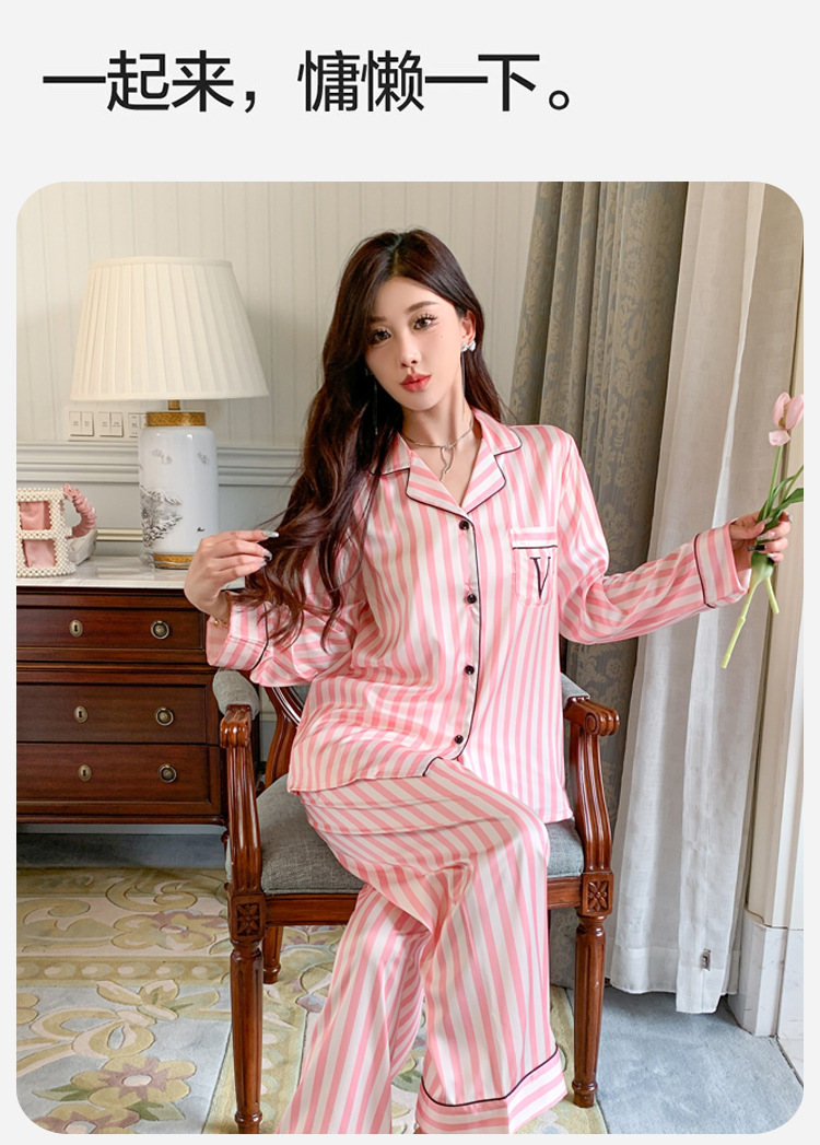 봄과 가을 새로운 여성의 얼음 실크 얇은 잠옷 긴팔 양복 물광택 실크 가정 의류 Пижама스토어 가기